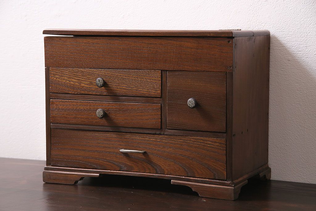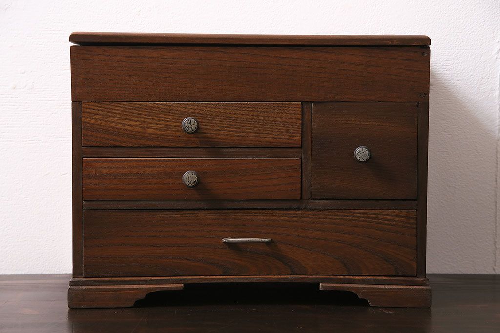 小物収納・トランク > アンティーク雑貨 昭和初期 ケヤキ材 ノスタルジックな雰囲気が魅力の裁縫箱(ソーイングボックス、小引き出し、小物収納、針箱)(R-046882)