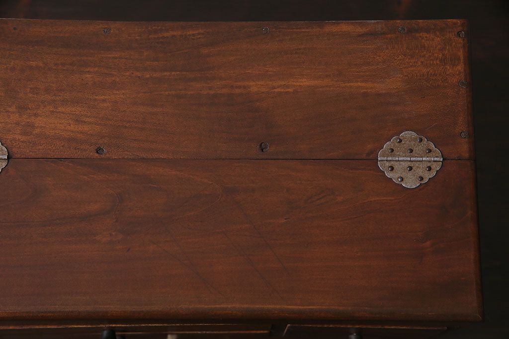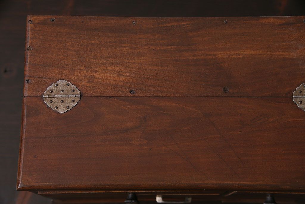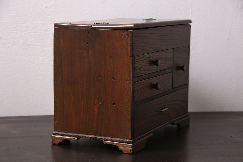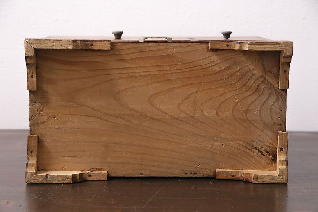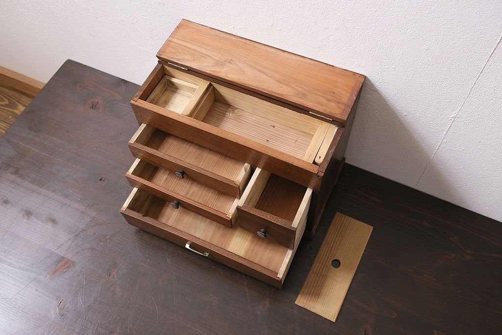 小物収納・トランク> 小引き出し > アンティーク雑貨 昭和初期 ケヤキ材 ノスタルジックな雰囲気が魅力の裁縫箱(ソーイングボックス、小引き出し、小物収納、針箱)(R-046882)