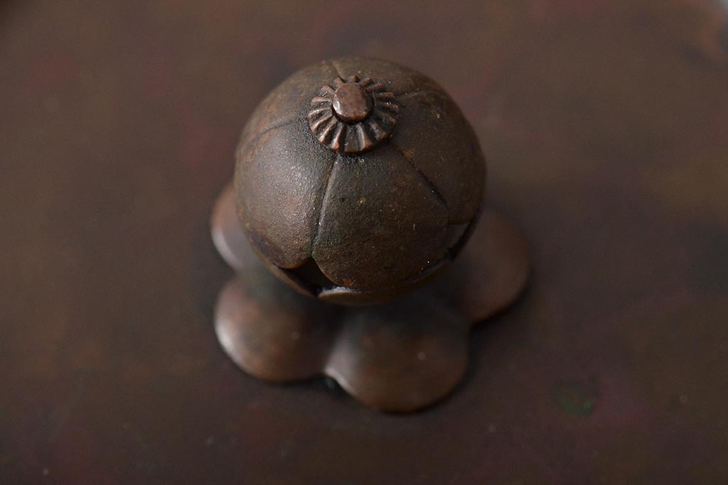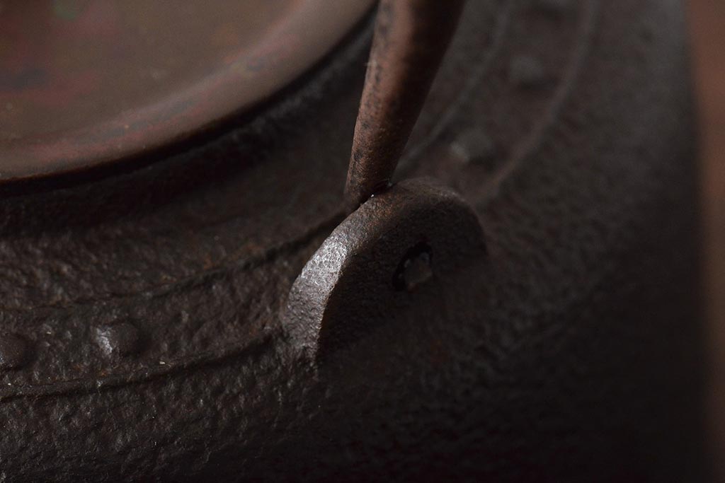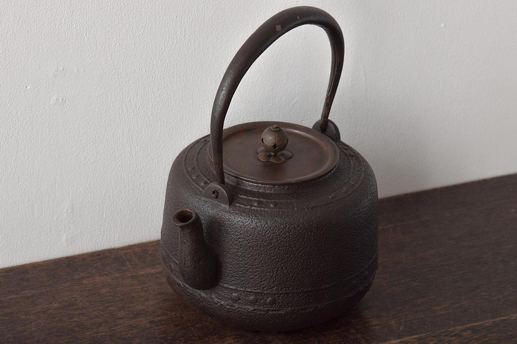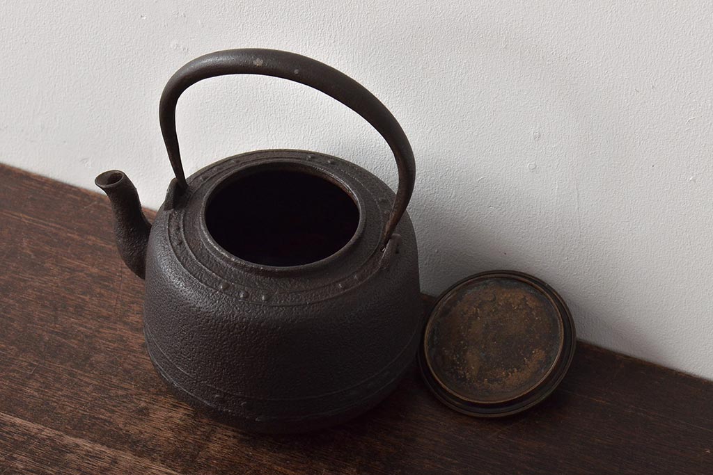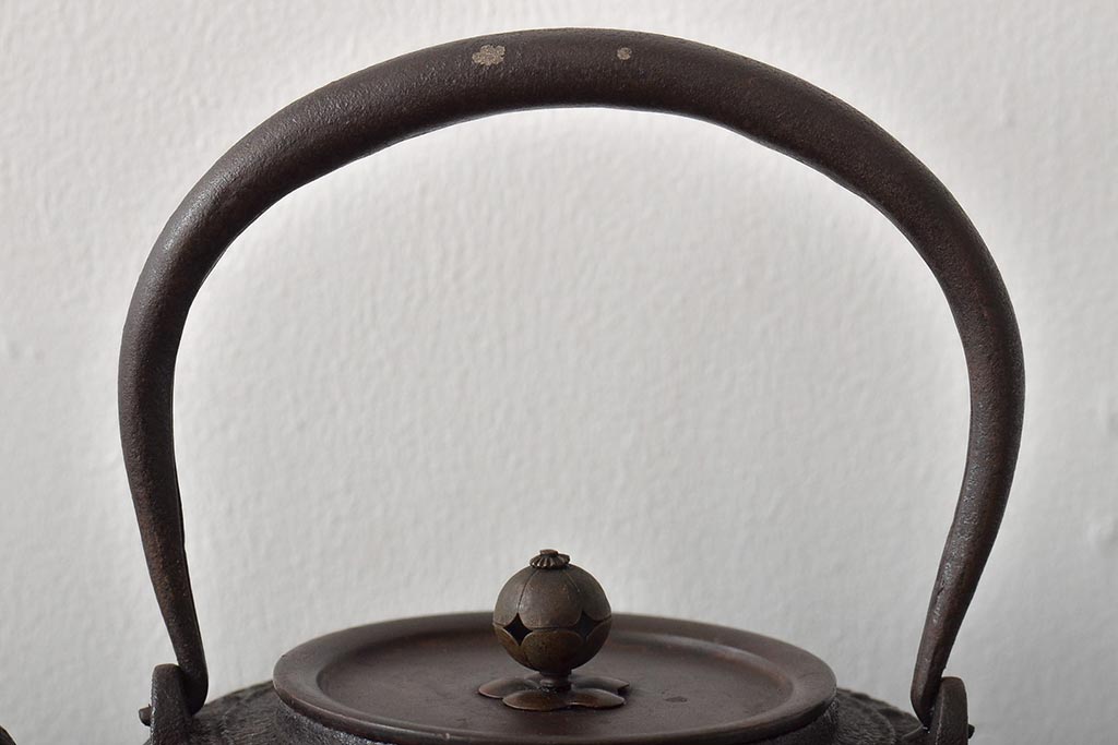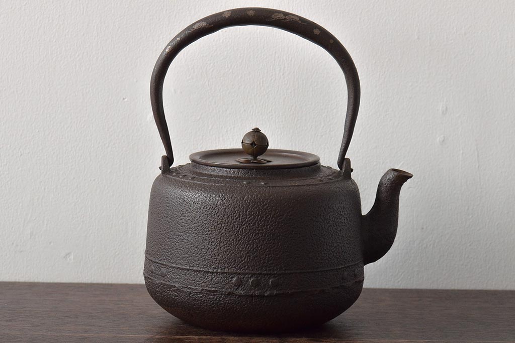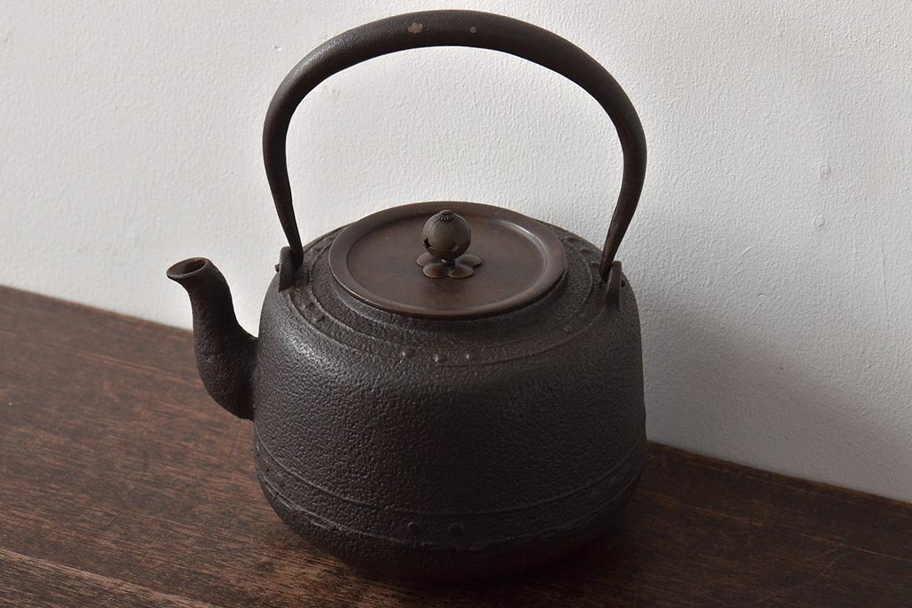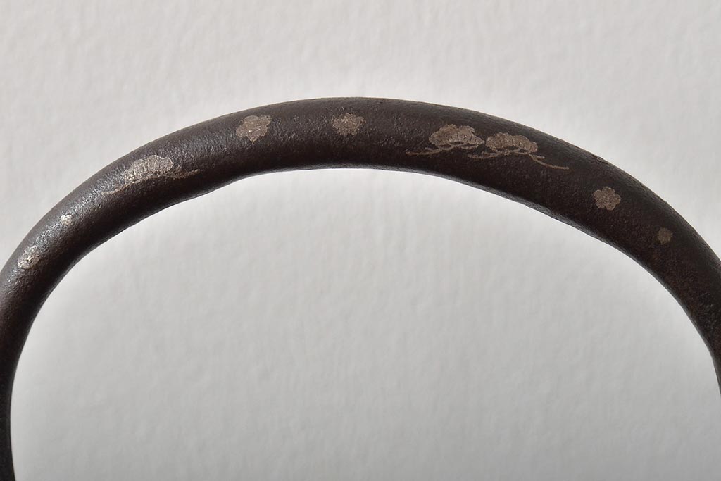 古い鉄瓶 銅蓋 銀象嵌取っ手 松と梅(茶道具)(R-046870)
