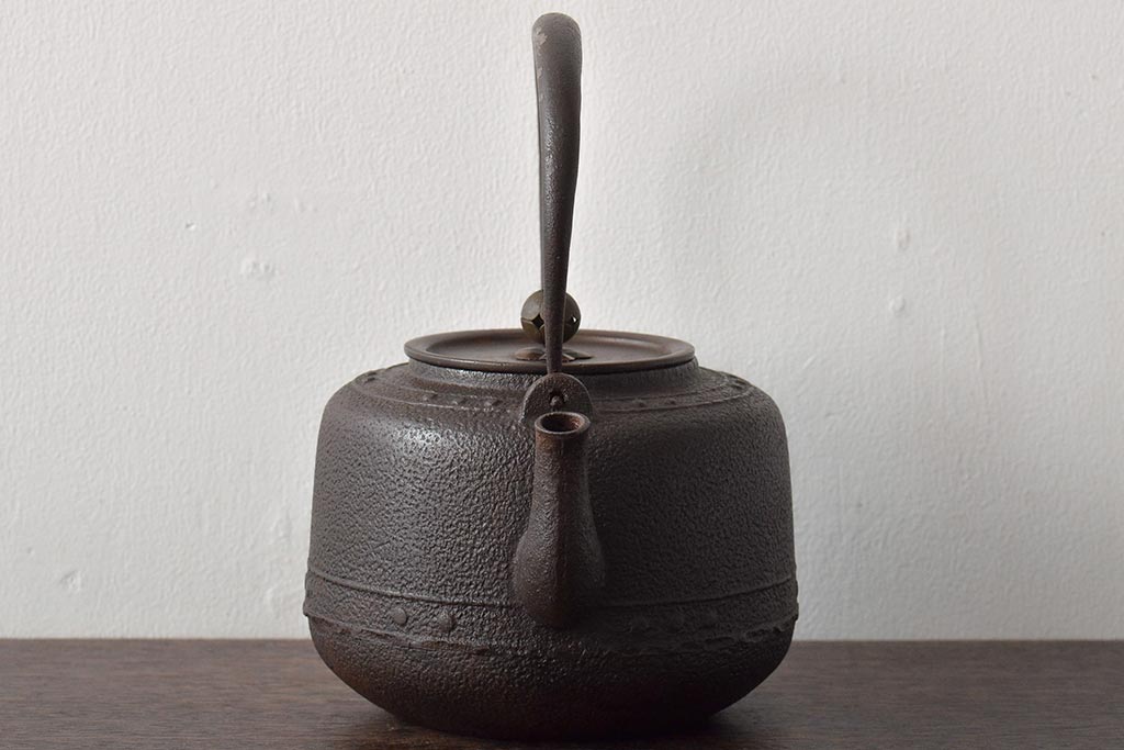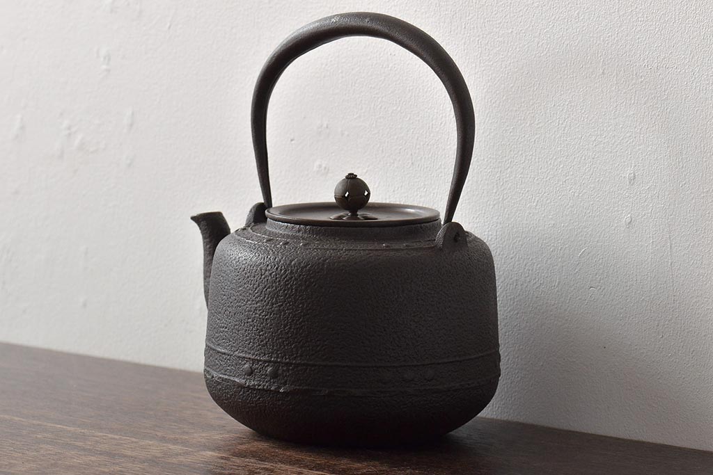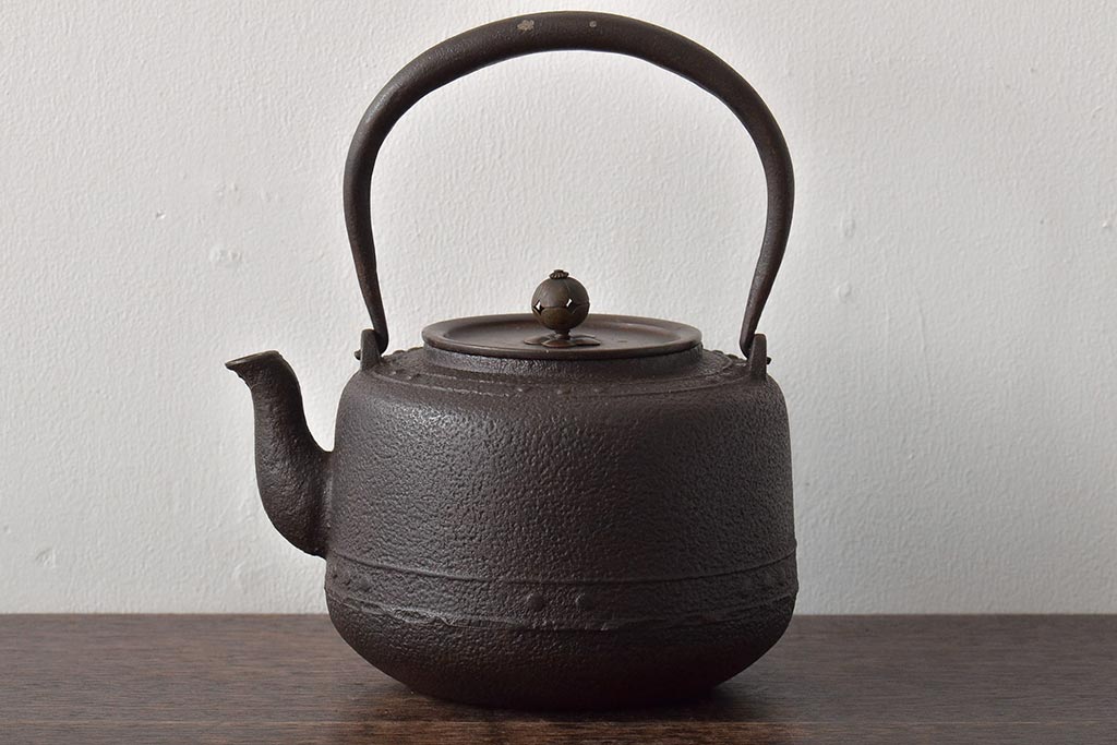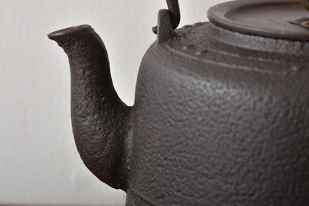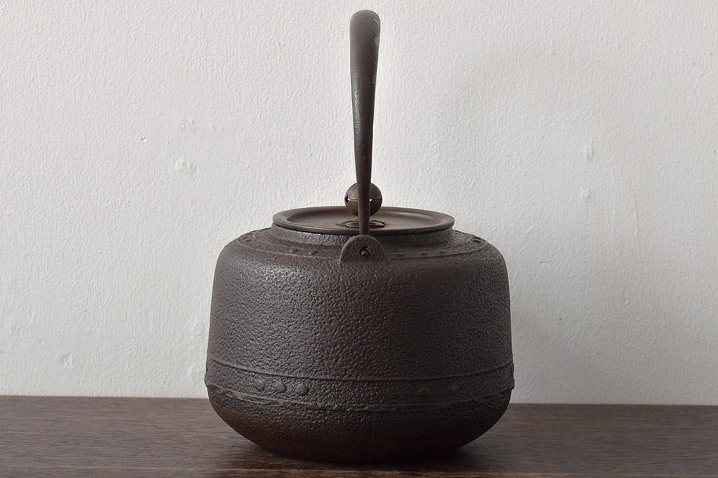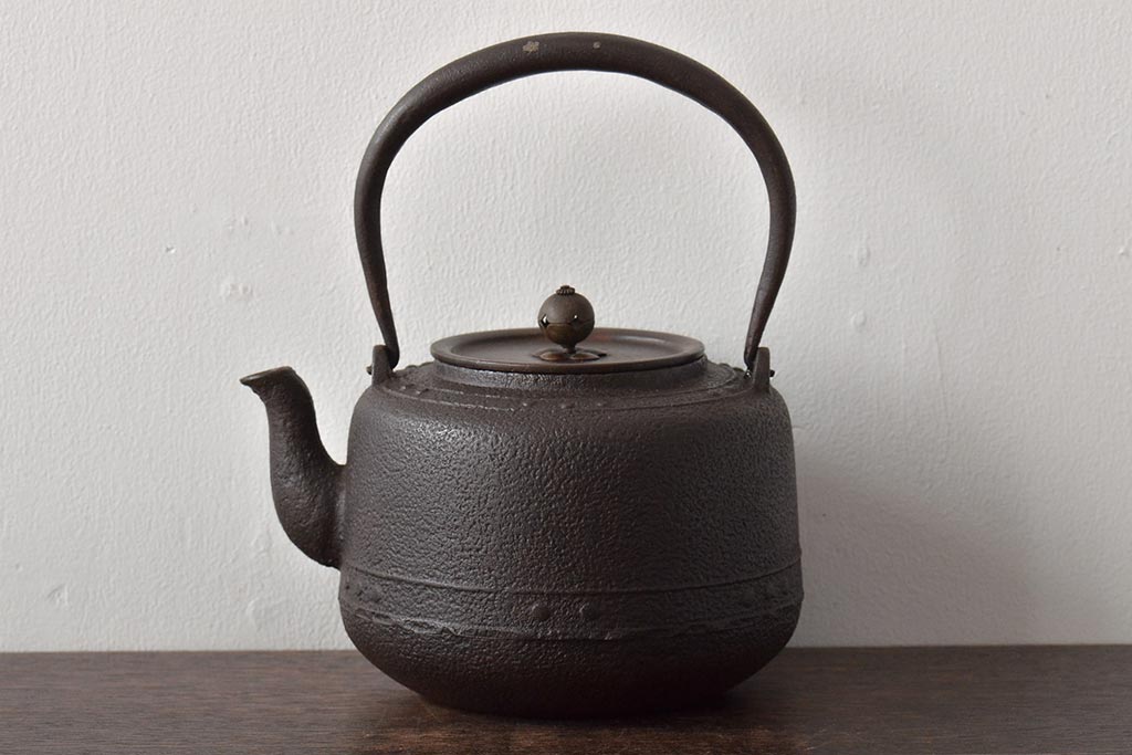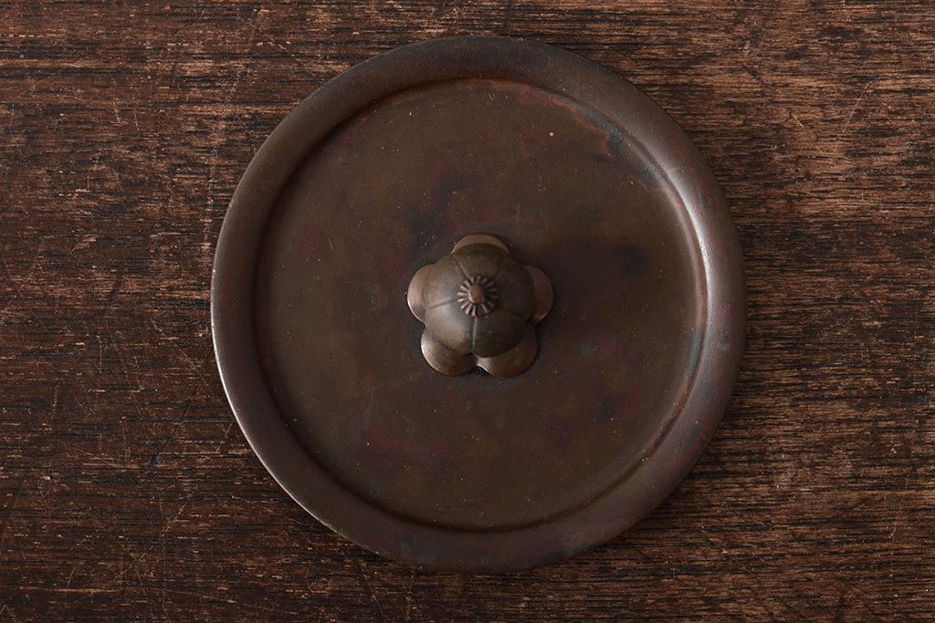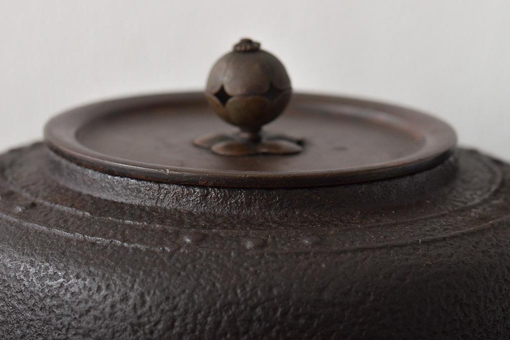 古い鉄瓶 銅蓋 銀象嵌取っ手 松と梅(茶道具)(R-046870)