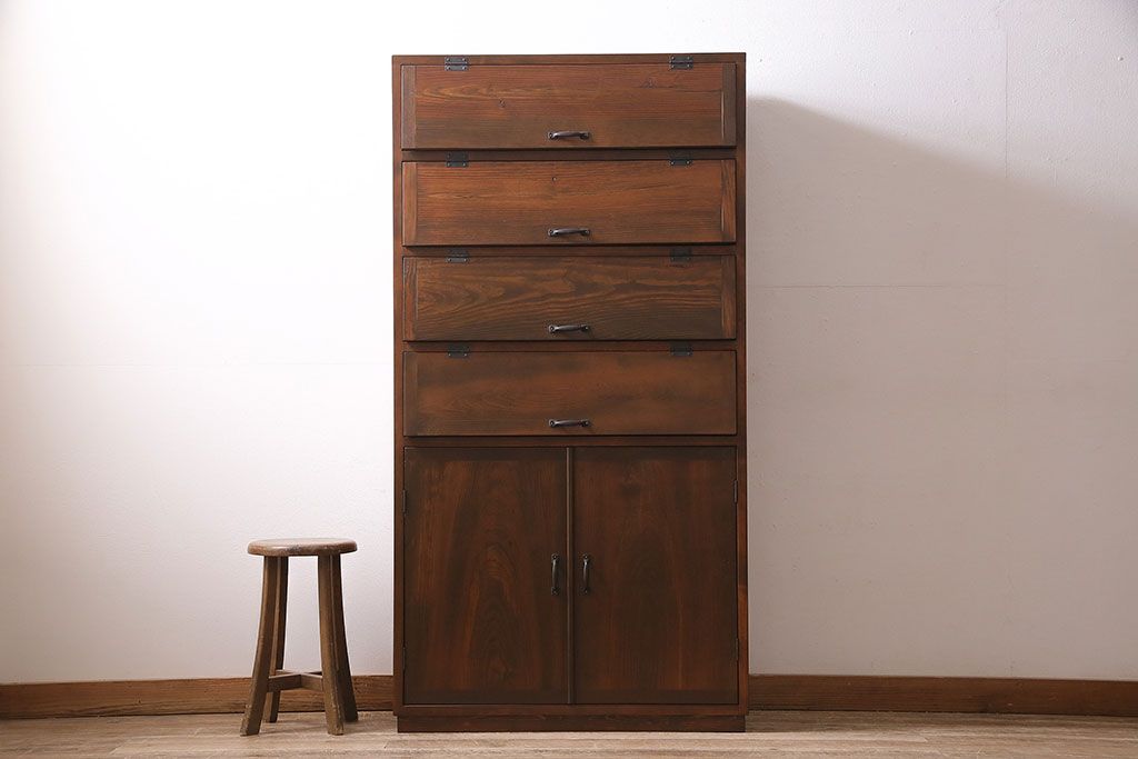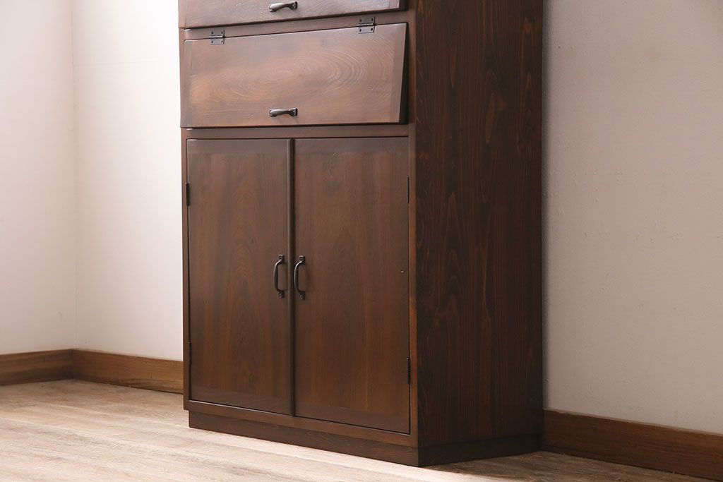 ◆全体デザイン:上にパタパタ扉の棚4段と下に両開きタイプの扉が付いた棚