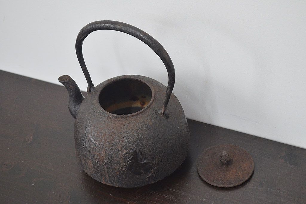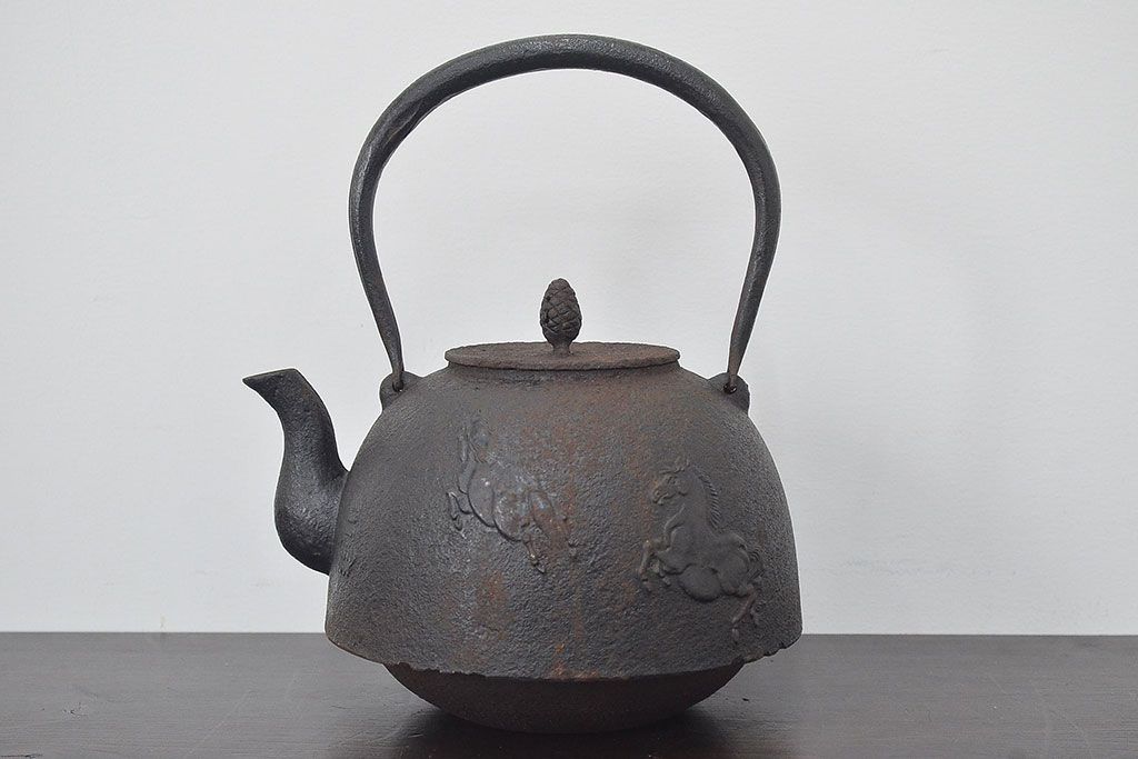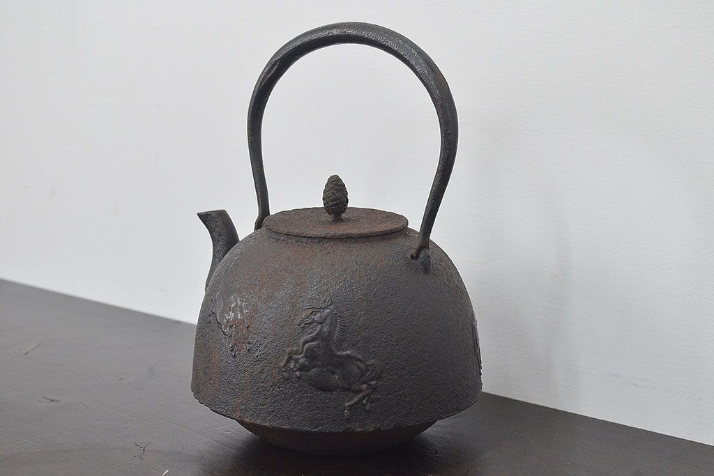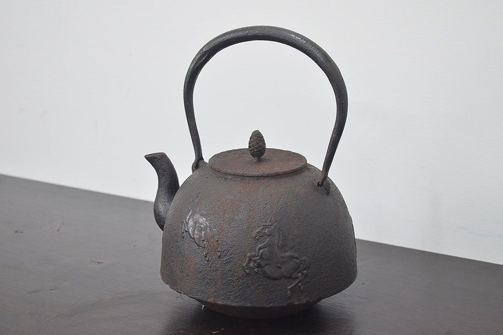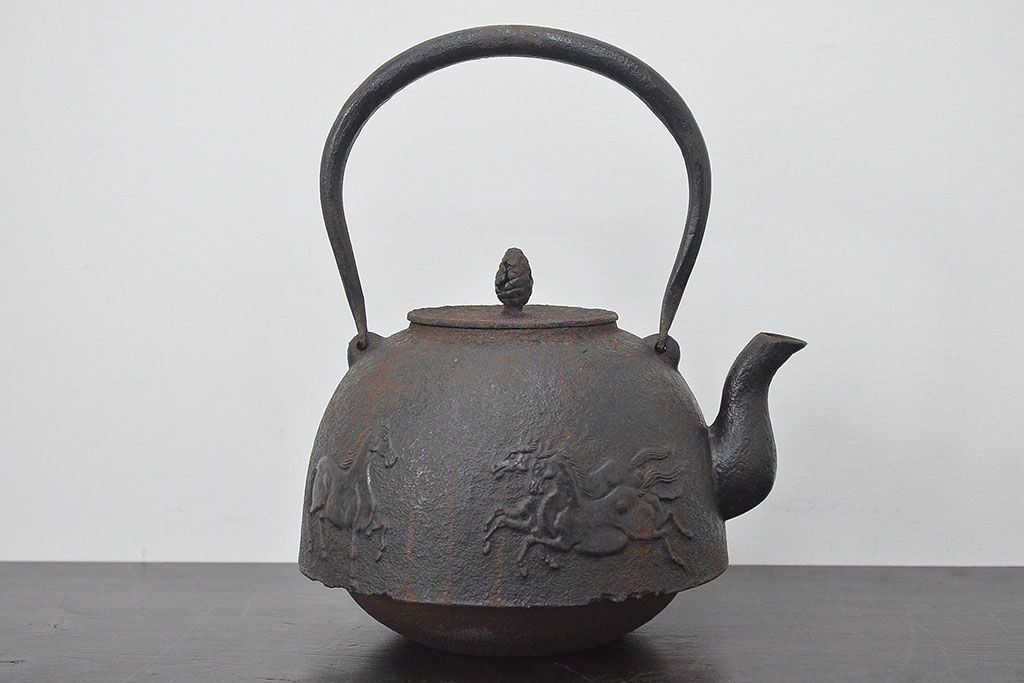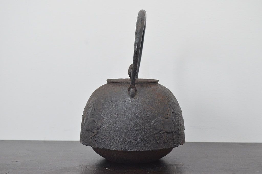 南部盛岡 利祥銘 鉄瓶(馬の図、茶道具)(R-046789)