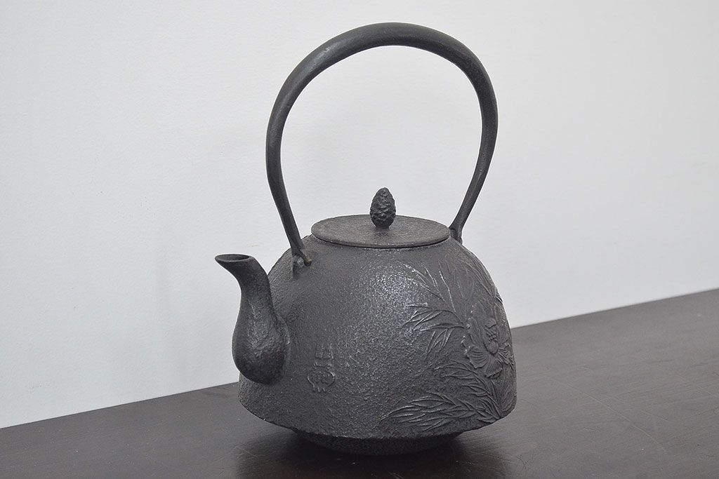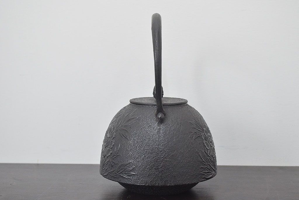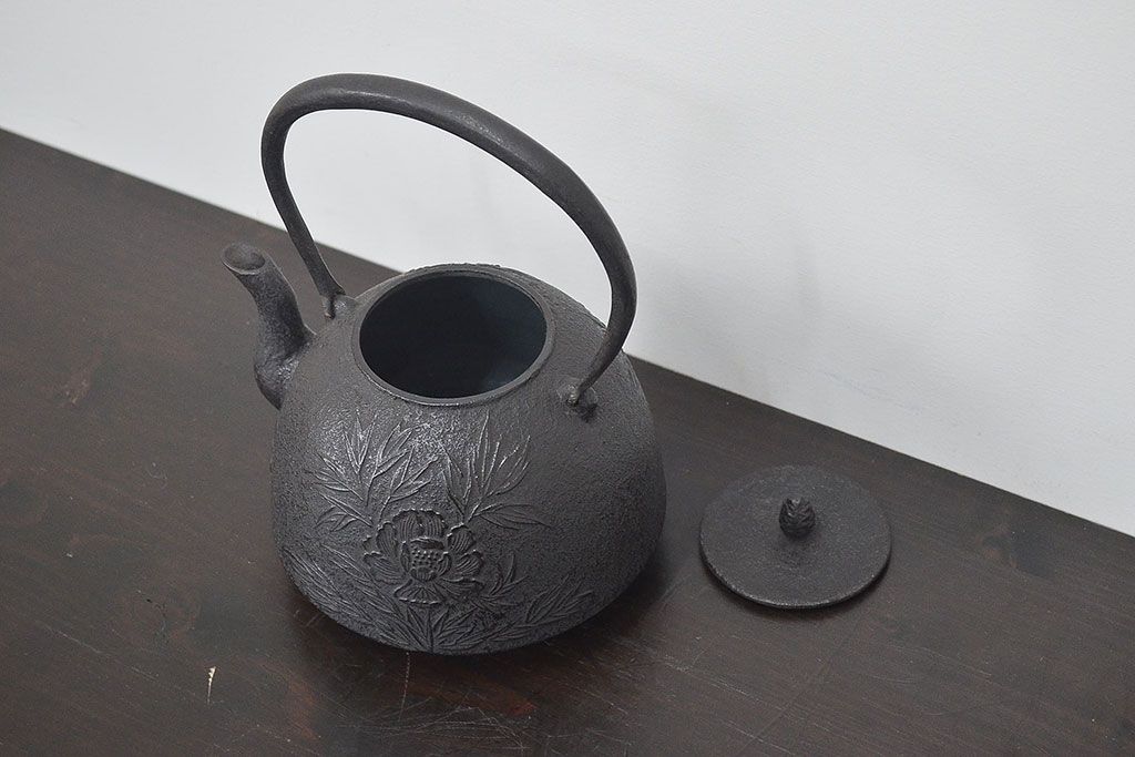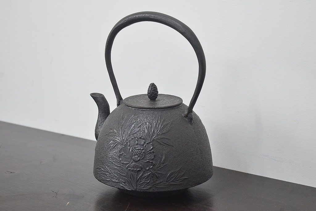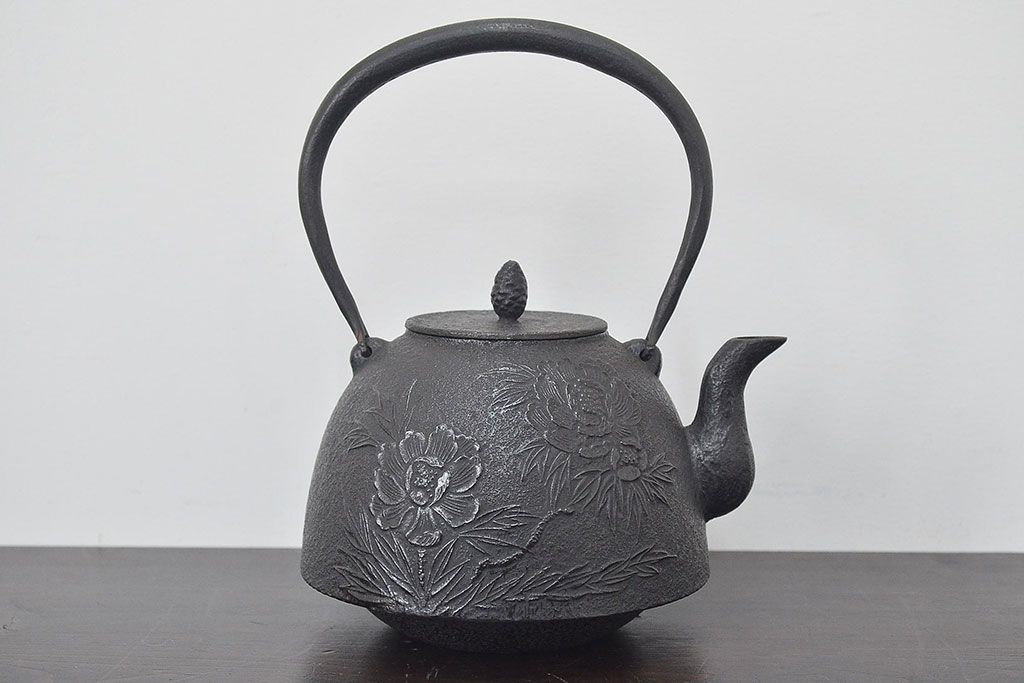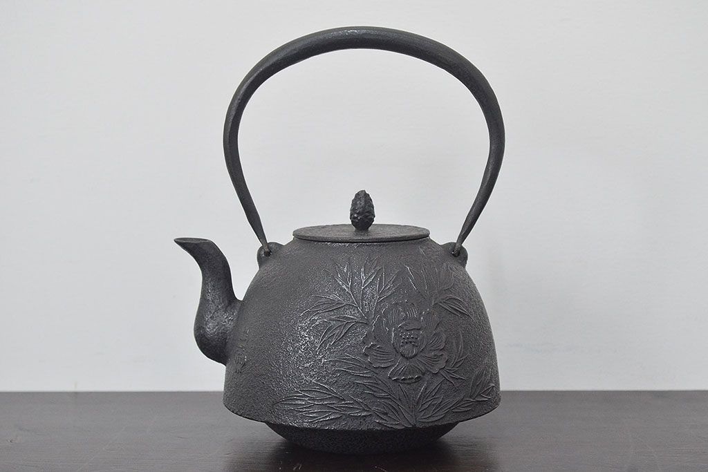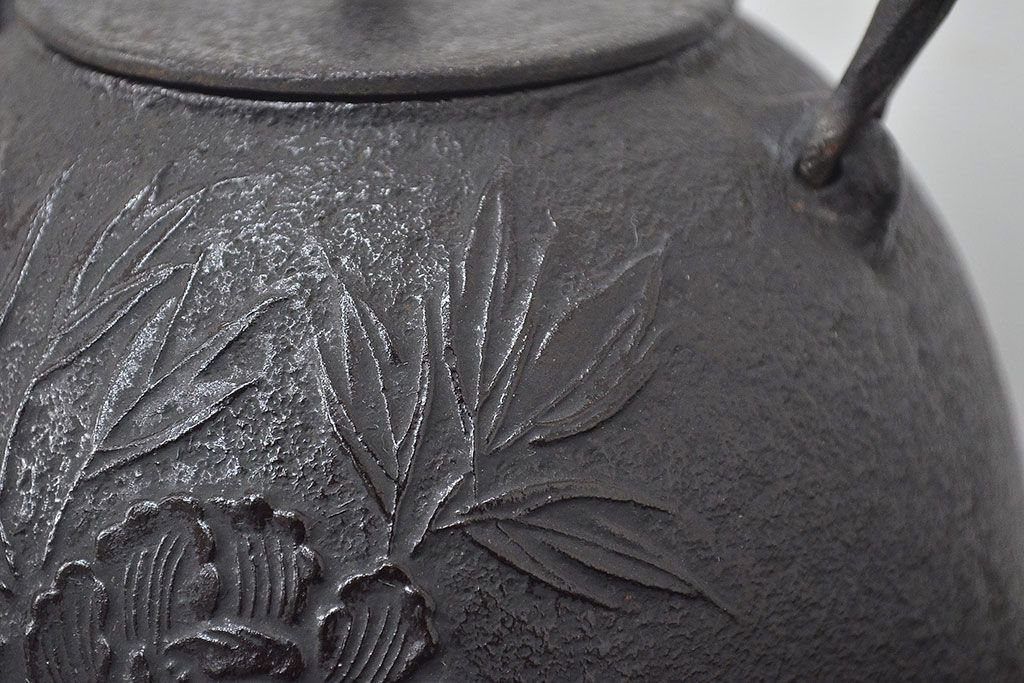 南部盛岡 利祥銘 鉄瓶(牡丹、草花文、茶道具)(R-046790)
