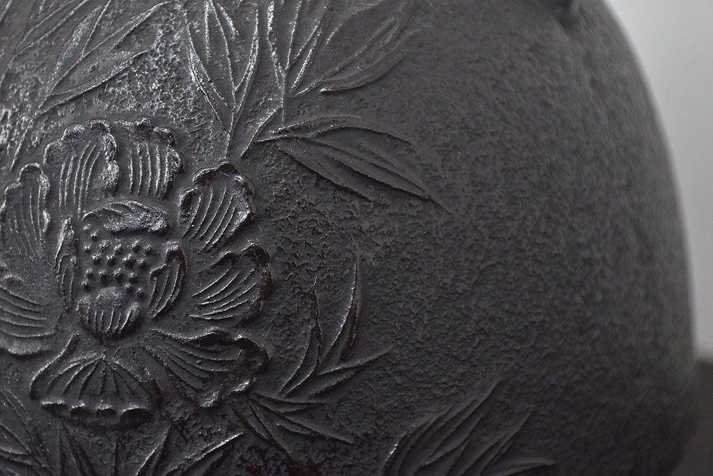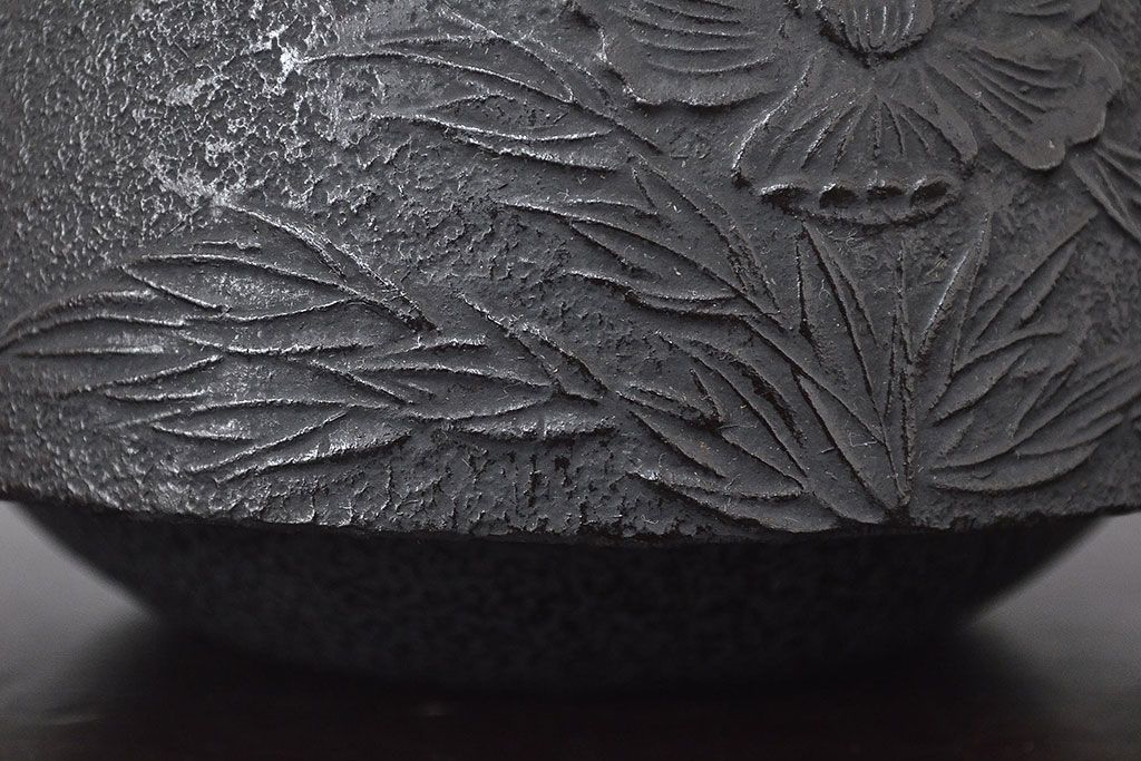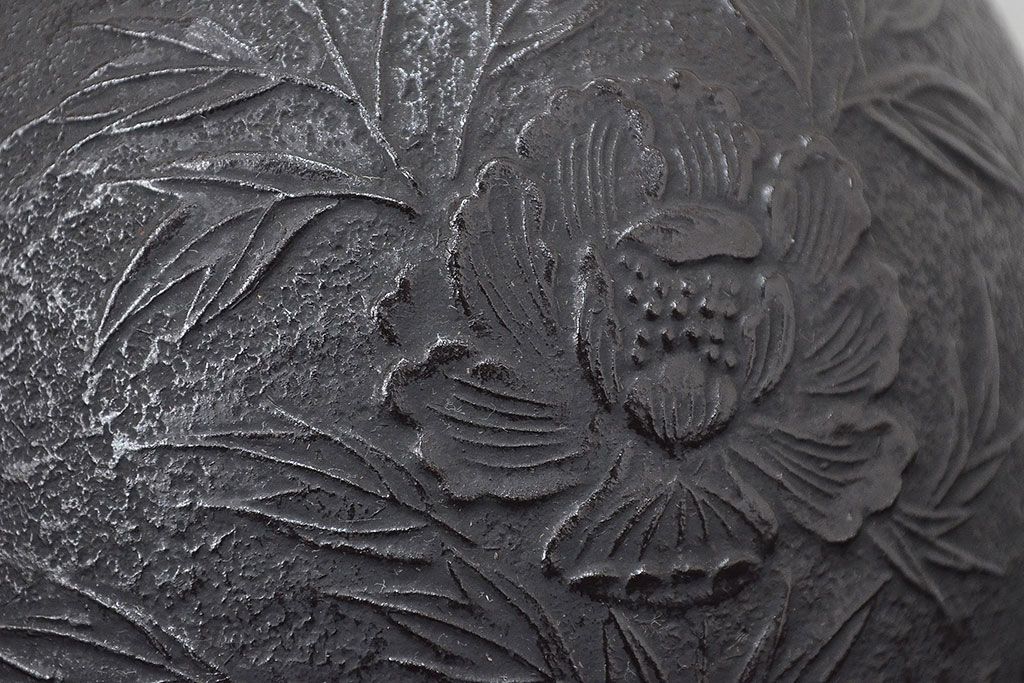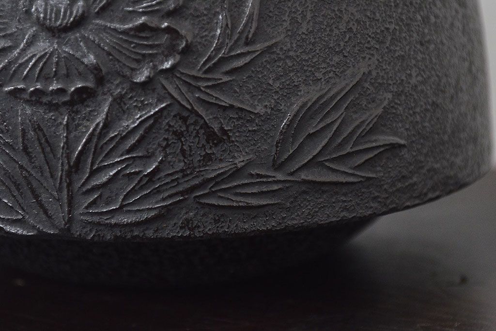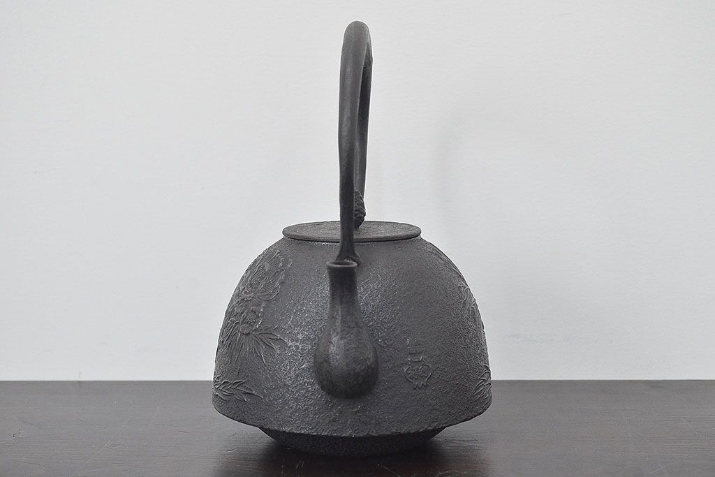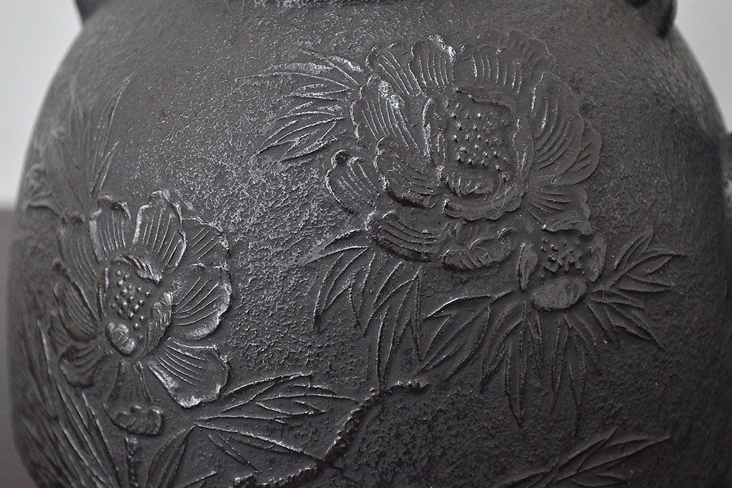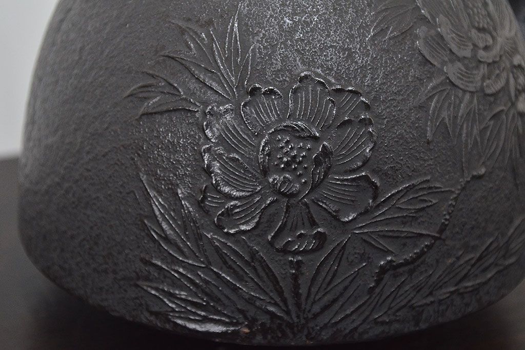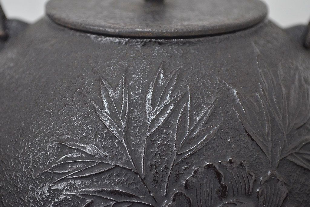 南部盛岡 利祥銘 鉄瓶(牡丹、草花文、茶道具)(R-046790)