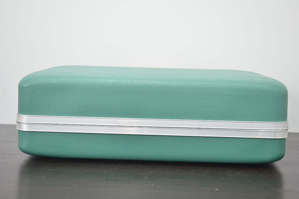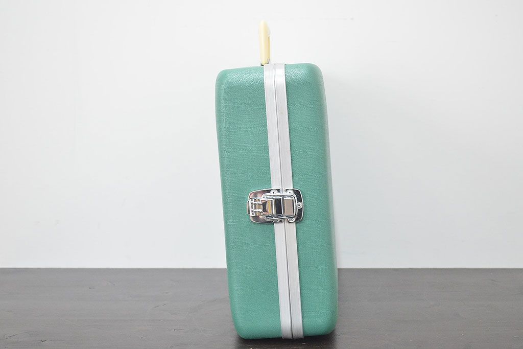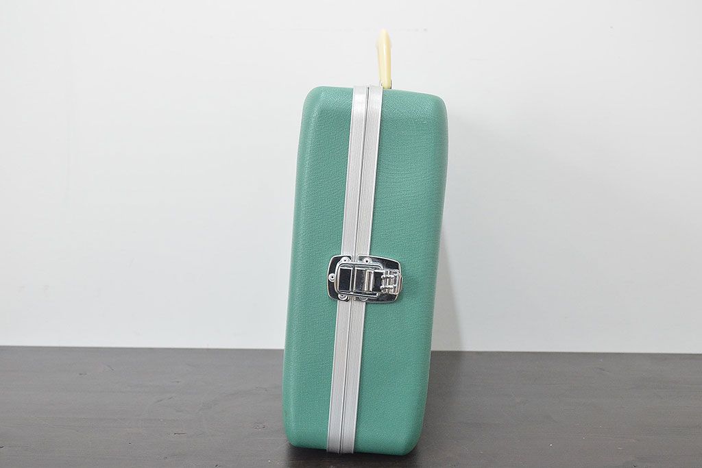 ビンテージ エメラルドグリーン トランク(昭和レトロ、鞄、カバン、収納、ディスプレイ)(R-046795)
