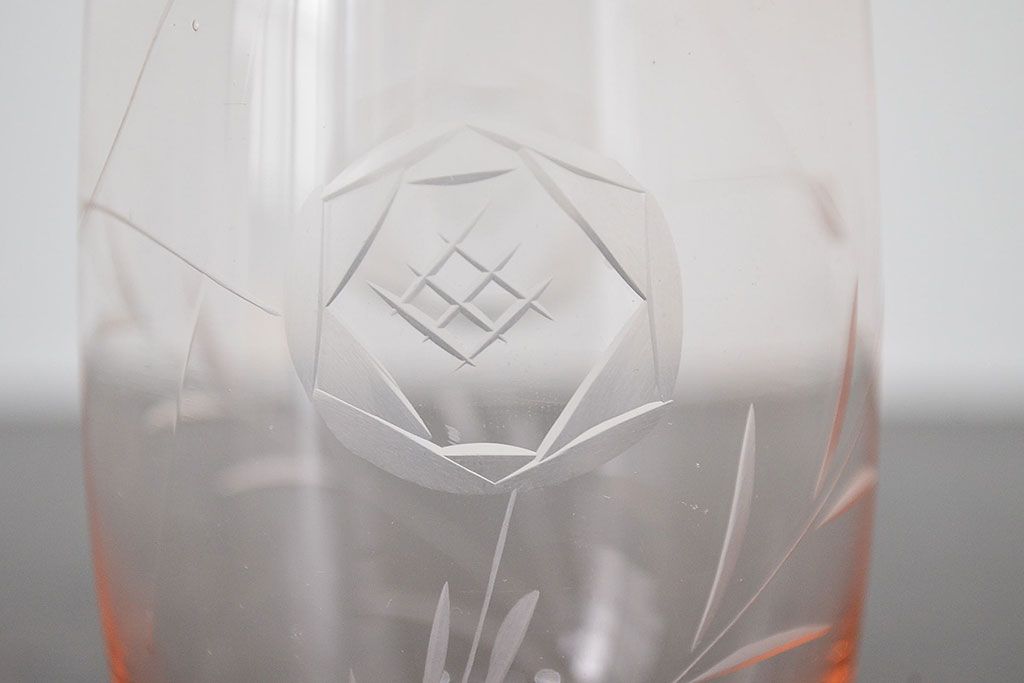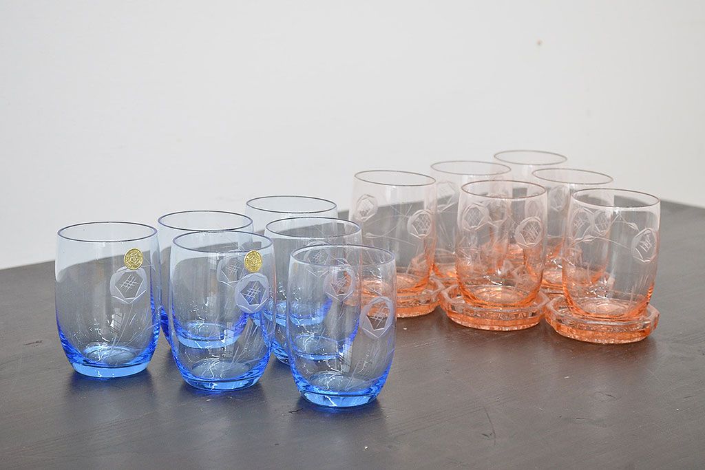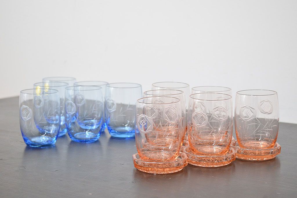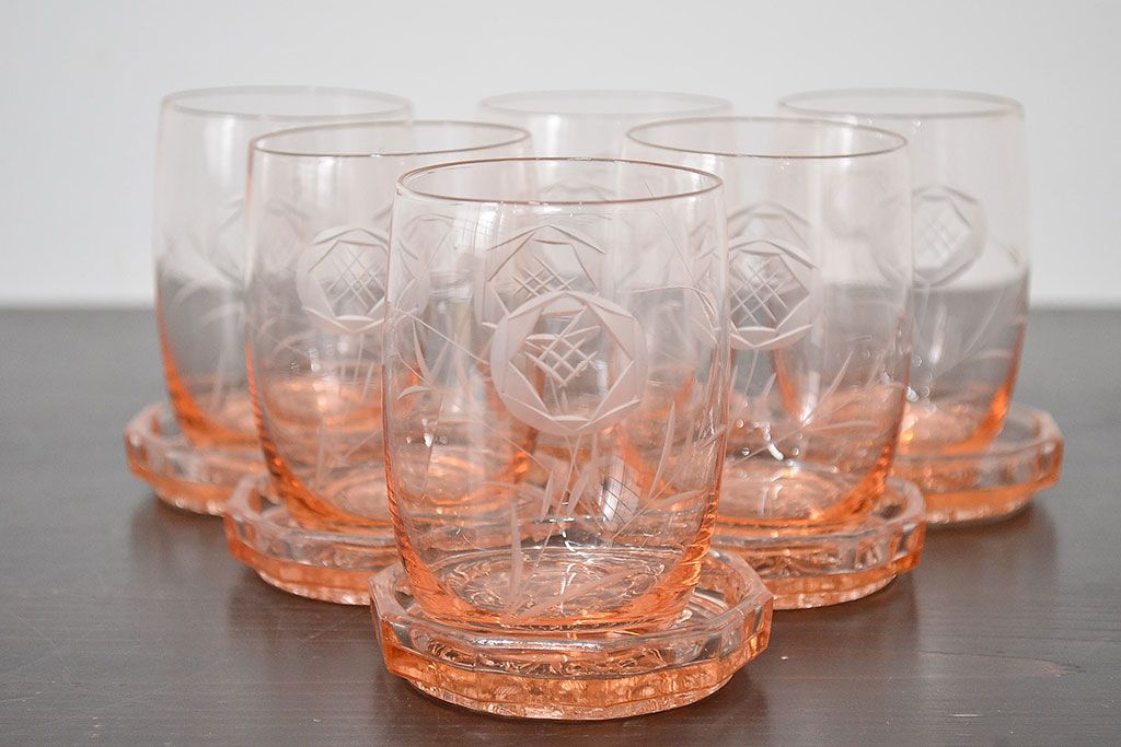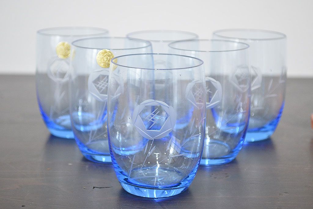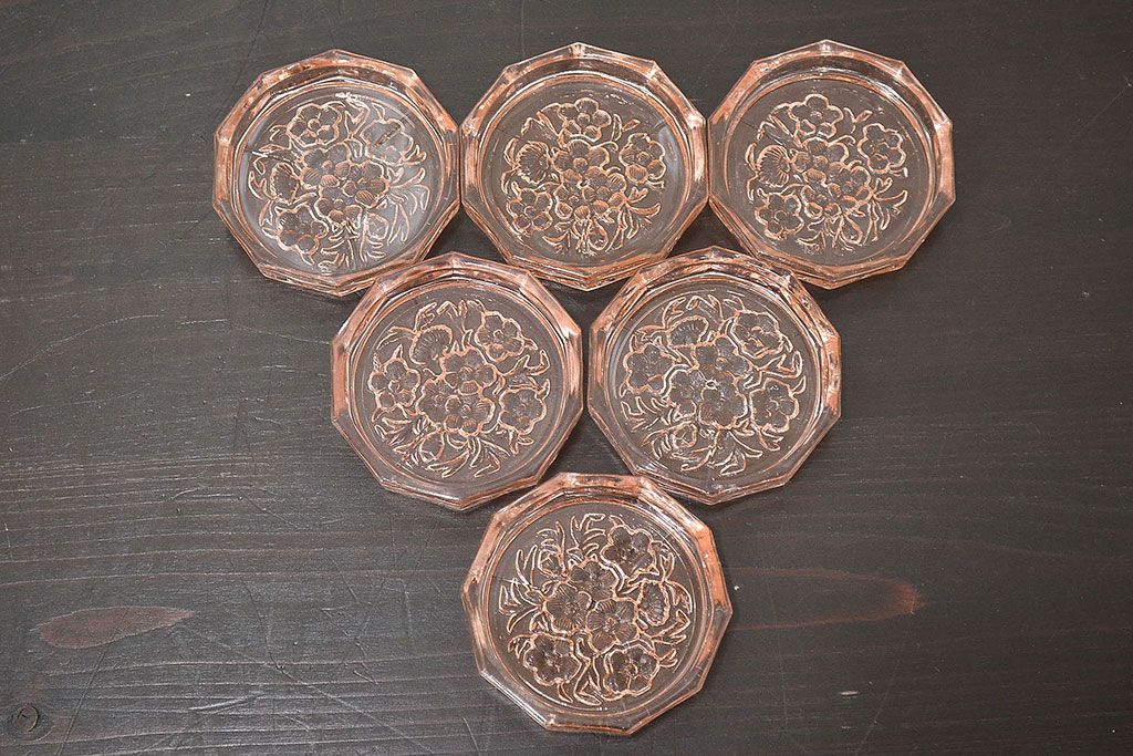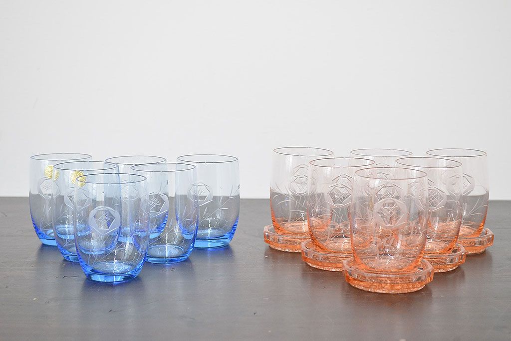 ラフジュ工房> 和食器・茶道具 > 昭和レトロ 花柄 切子グラス12個 コースター6個(ガラスコップ、硝子)(R-046798)