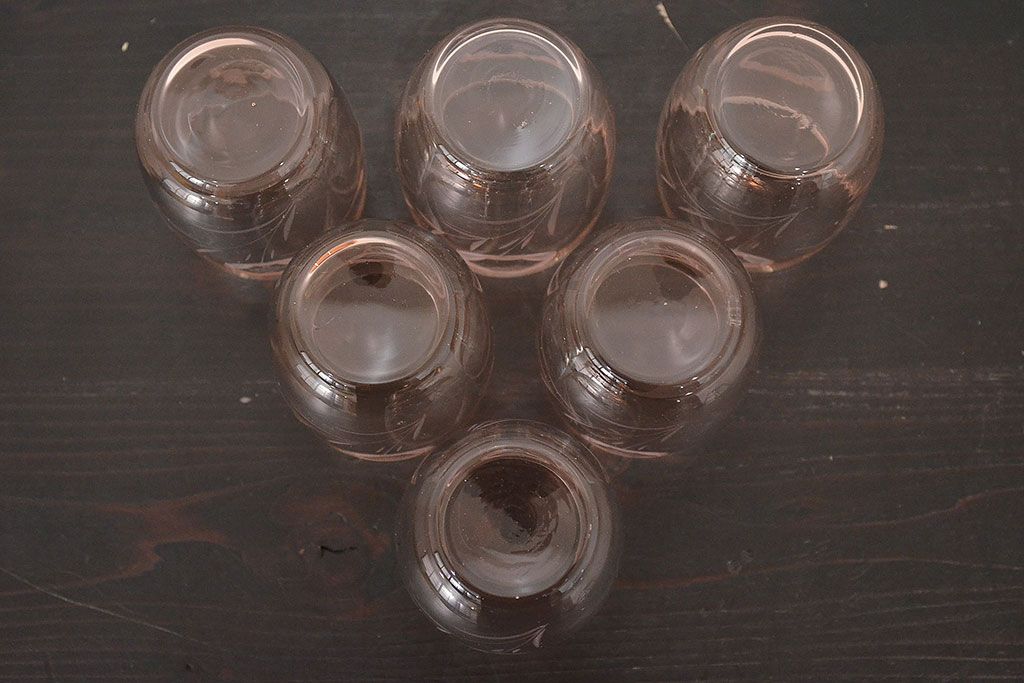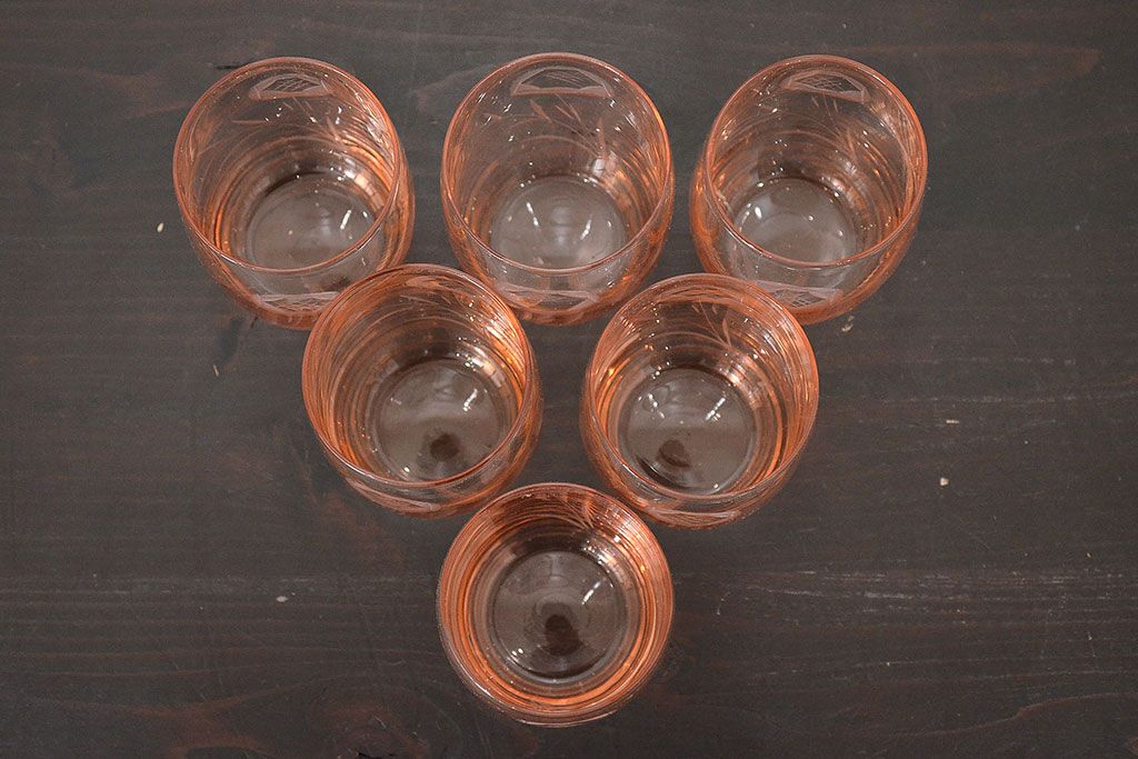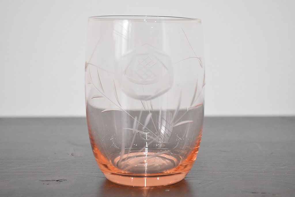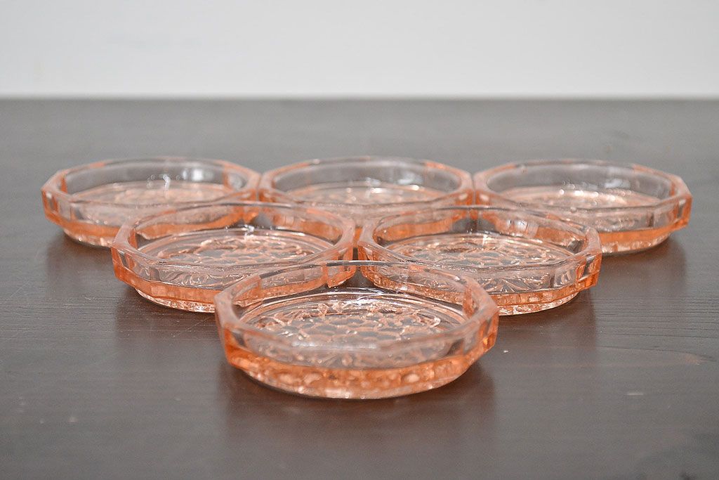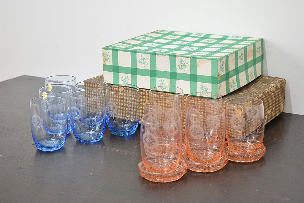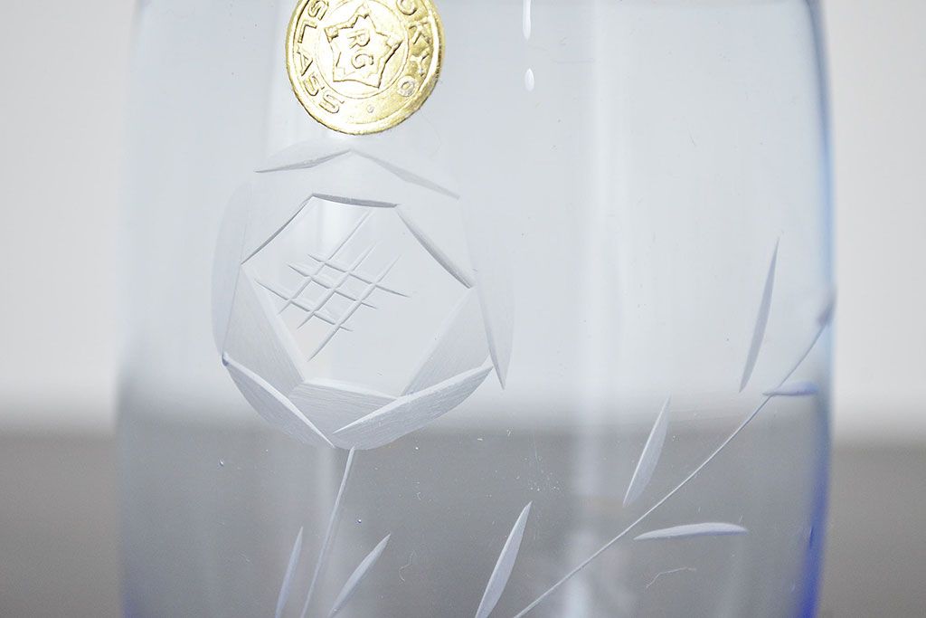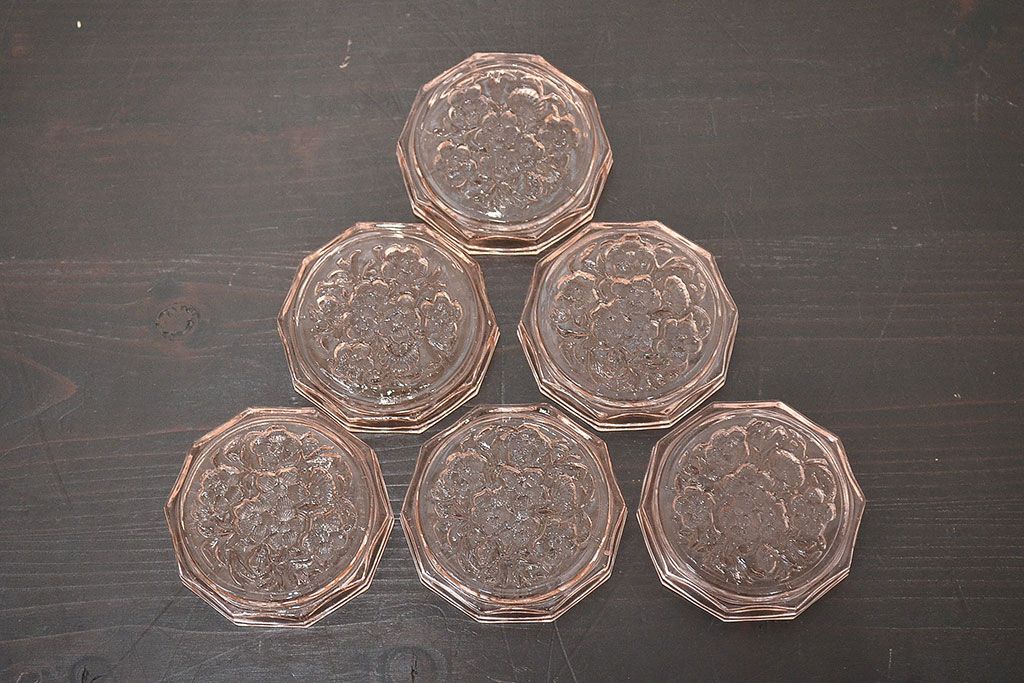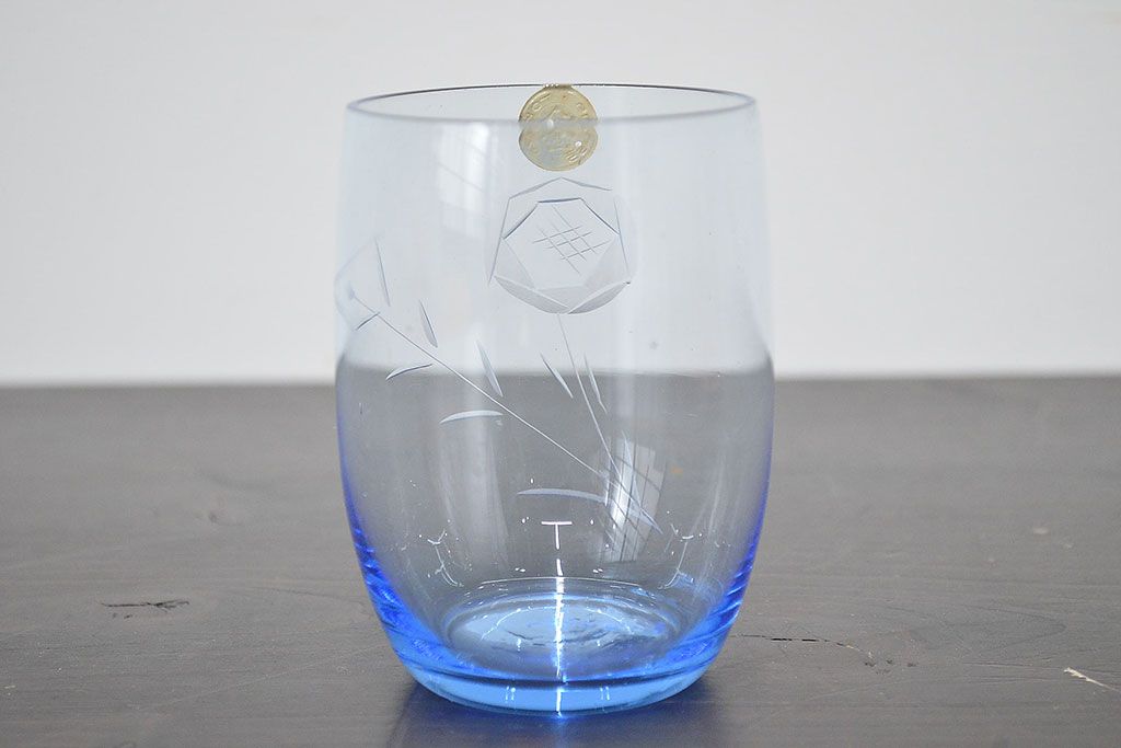 ラフジュ工房> 和食器・茶道具 > 昭和レトロ 花柄 切子グラス12個 コースター6個(ガラスコップ、硝子)(R-046798)