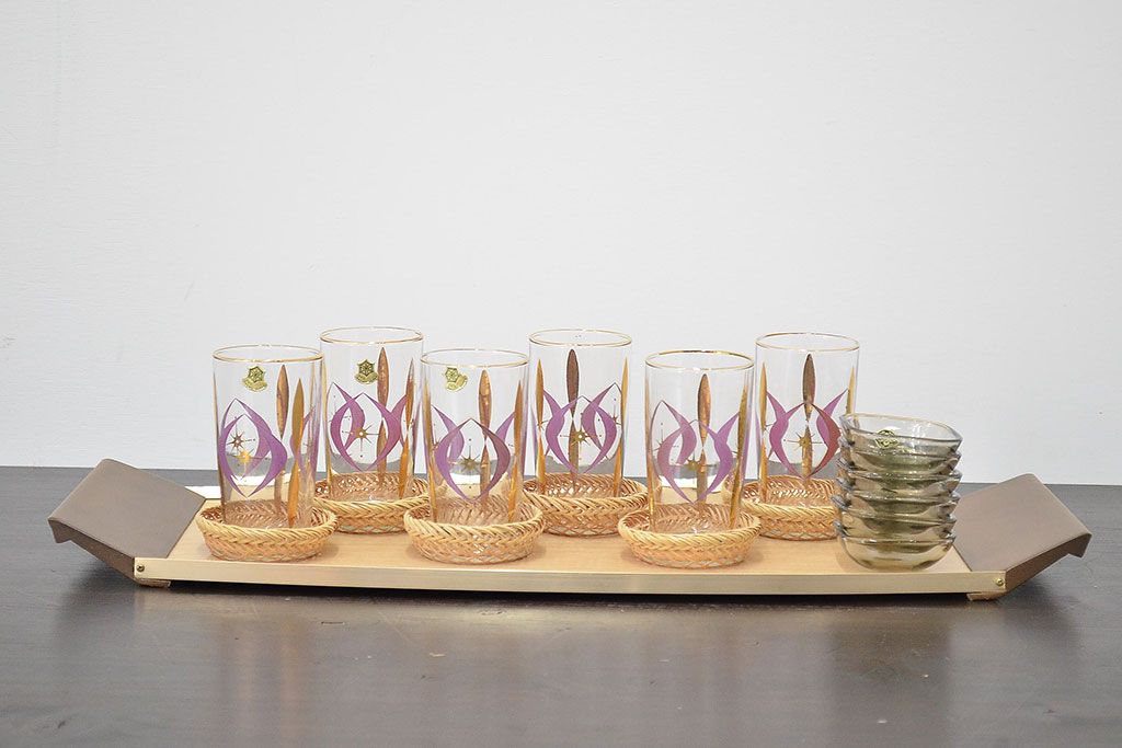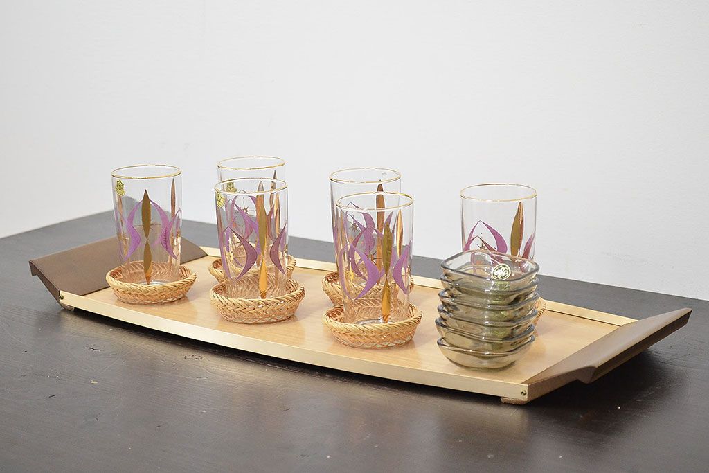 ラフジュ工房> 和食器・茶道具 > 昭和レトロ 佐々木ガラス グラス・コースター・小皿・お盆セット(HOYA、コップ)(R-046800)