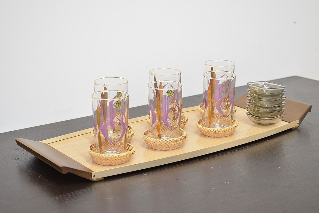 ラフジュ工房> 和食器・茶道具> お盆・お膳・お重 > 昭和レトロ 佐々木ガラス グラス・コースター・小皿・お盆セット(HOYA、コップ)(R-046800)