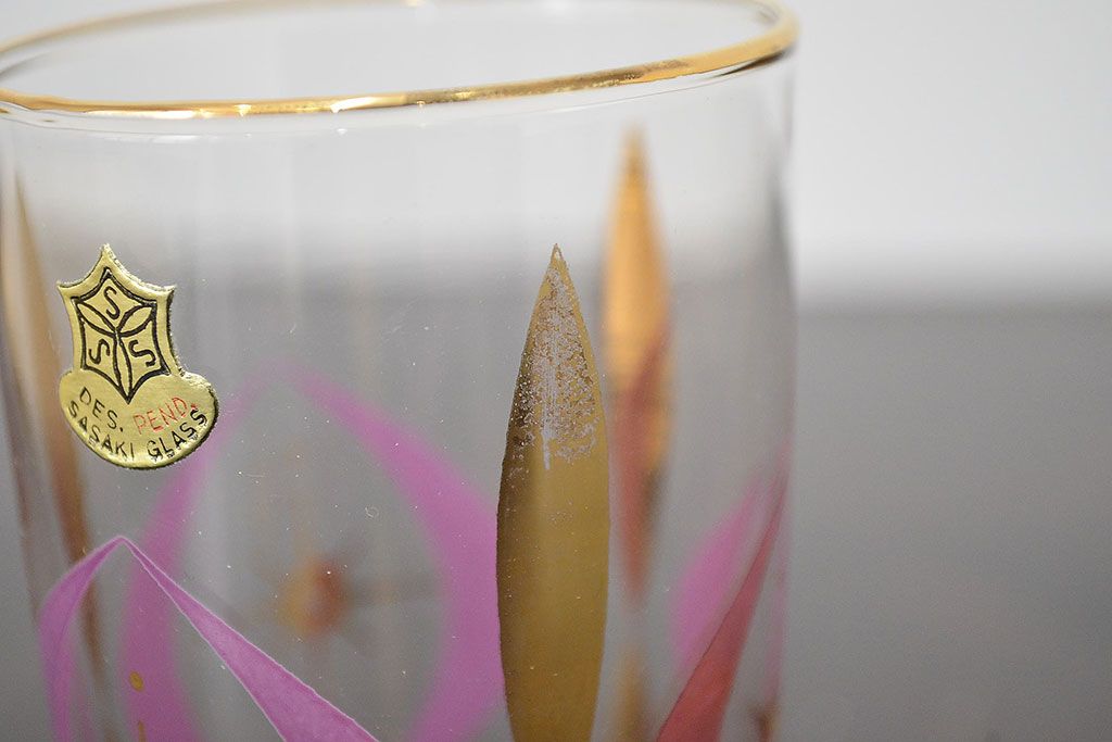 ラフジュ工房> 骨董・美術品> 骨董-ガラス食器 > 昭和レトロ 佐々木ガラス グラス・コースター・小皿・お盆セット(HOYA、コップ)(R-046800)