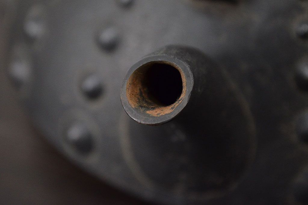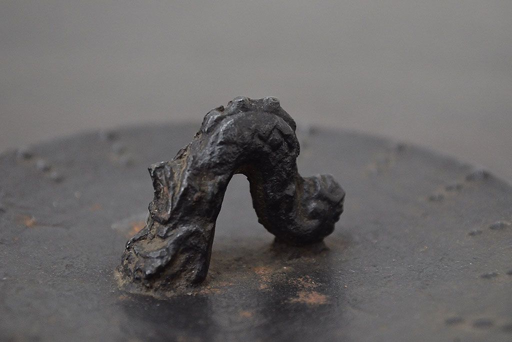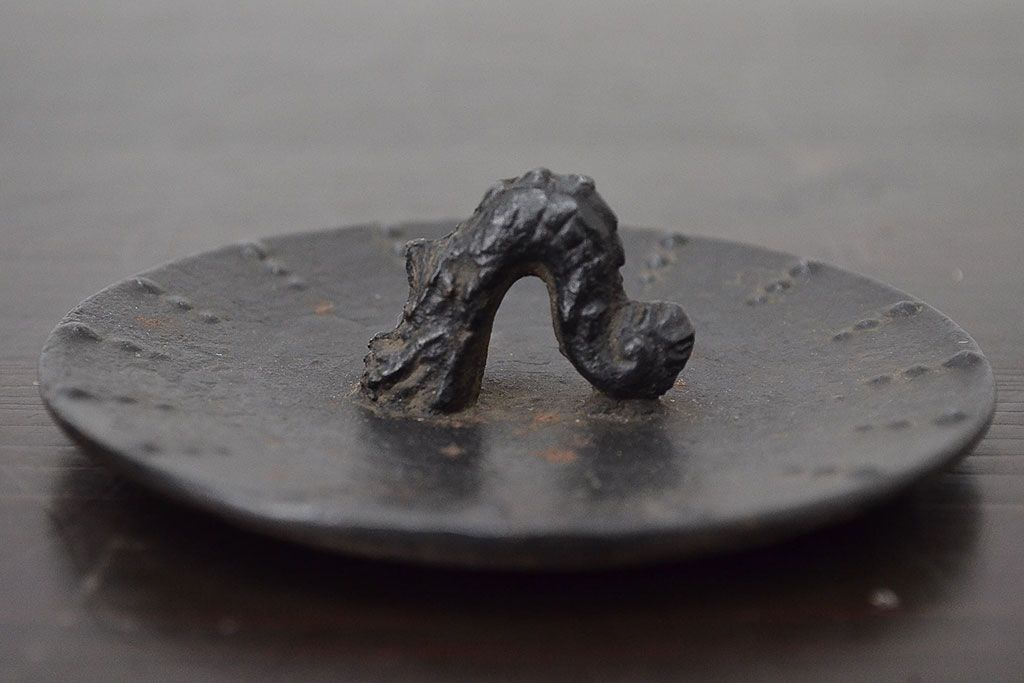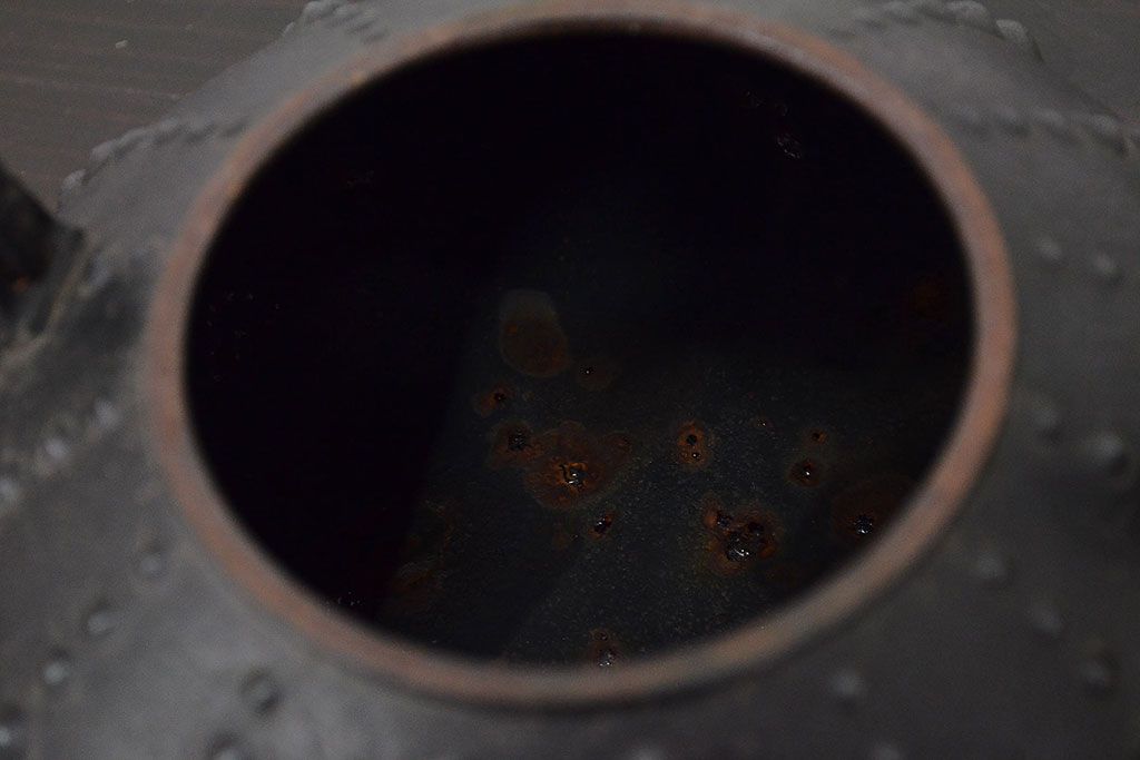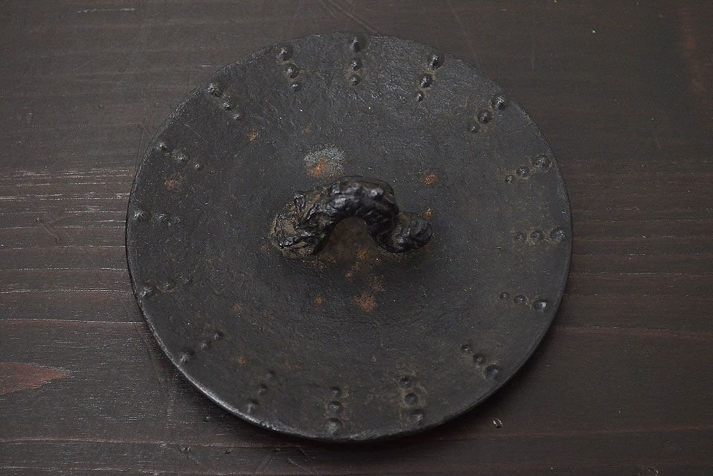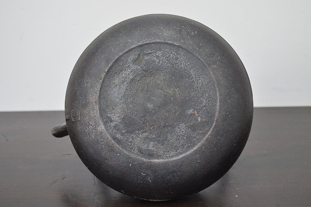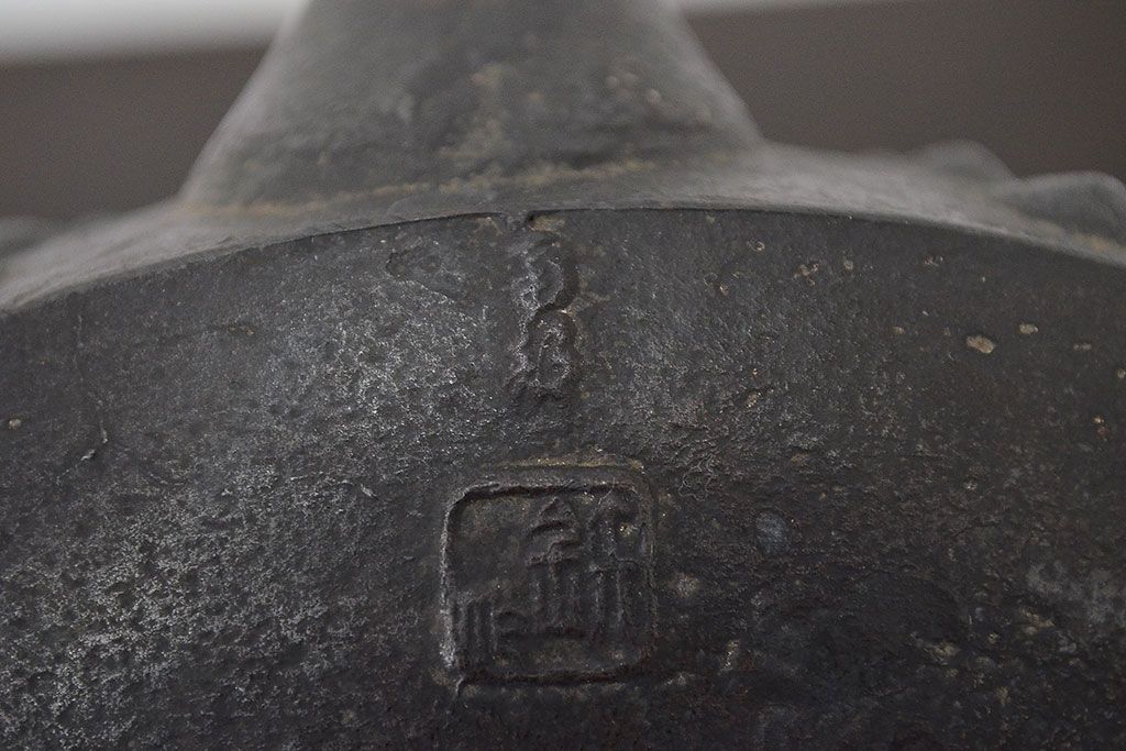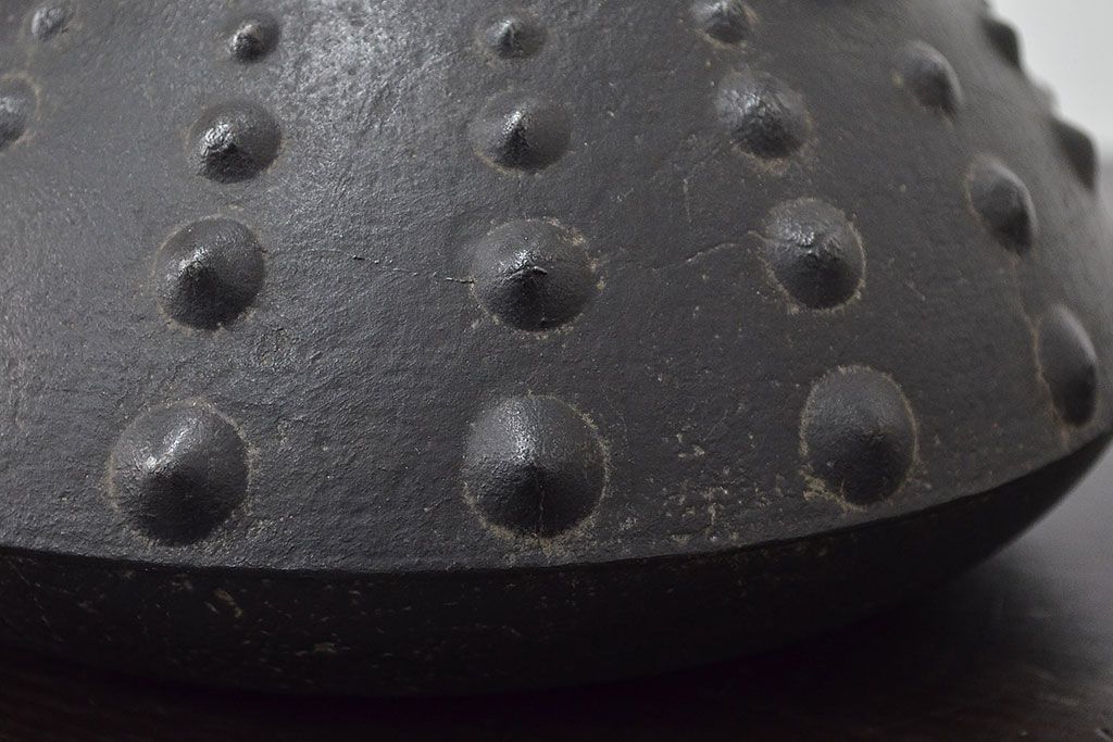 岩手南部 鉄作 兜形源氏霰鉄瓶 共箱(茶道具)(R-046803)