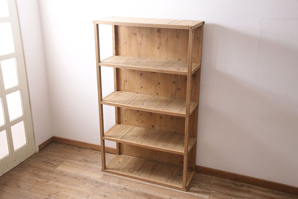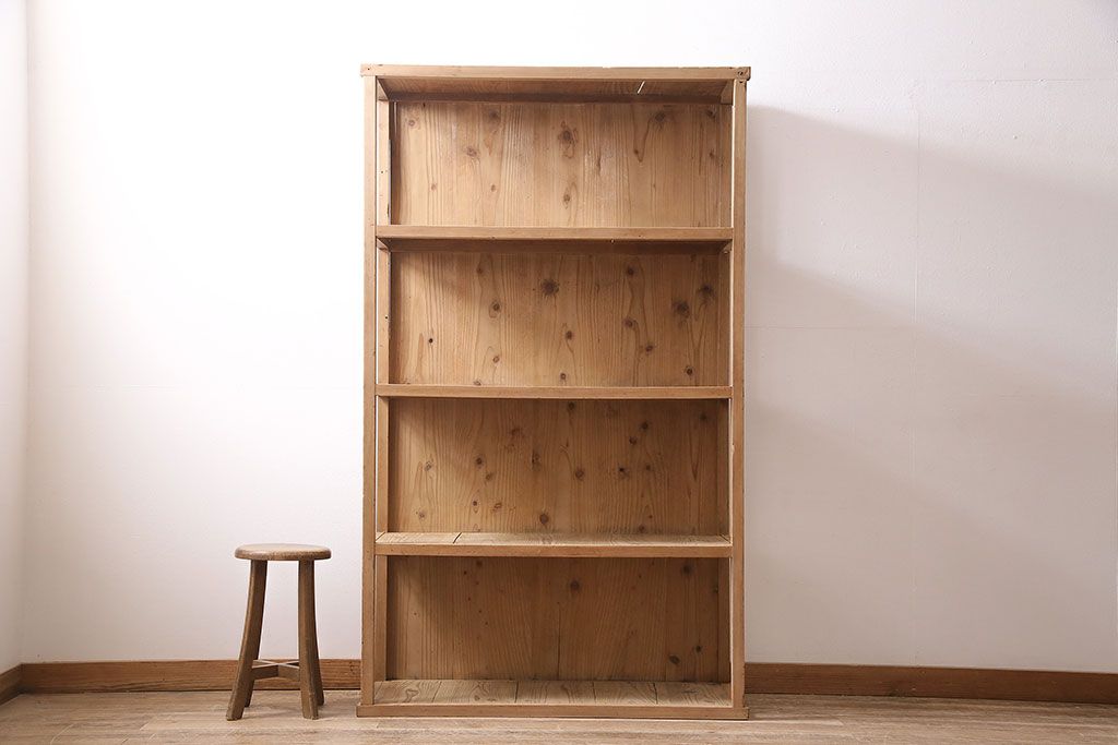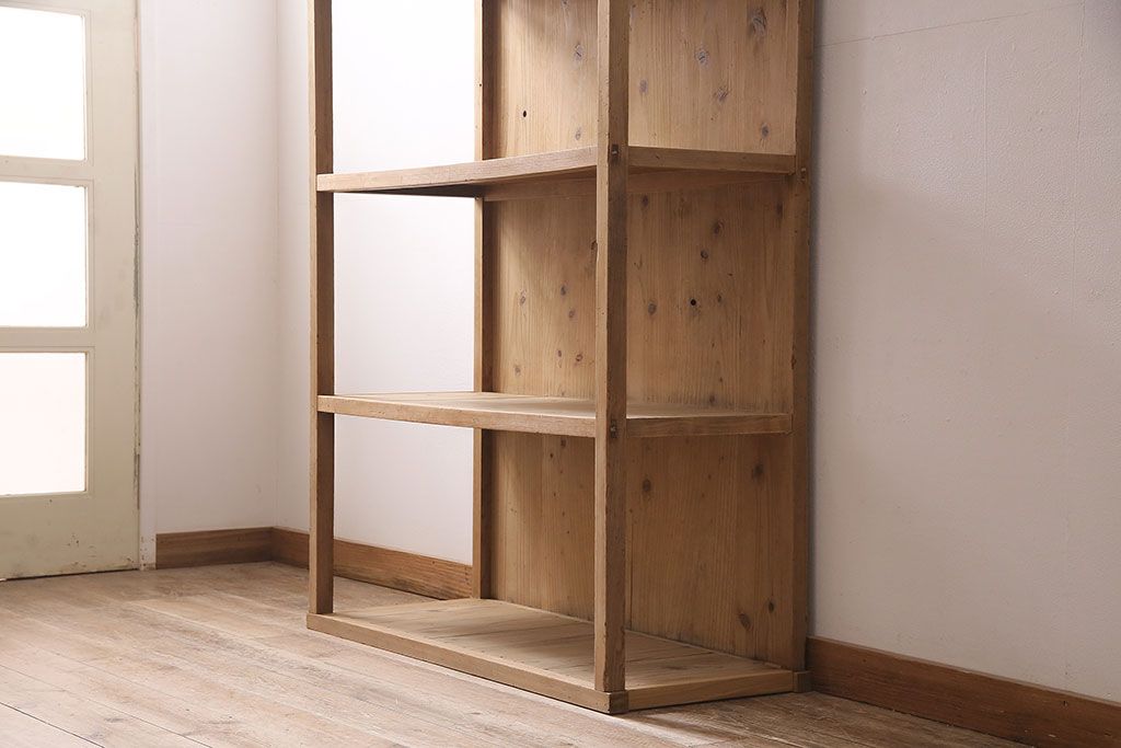 店舗什器 > アンティーク家具 明治大正期 ストリップド(剥離) スギ材 木の風合いが楽しめるシンプルなオープンラック(収納棚、棚)(R-046895)