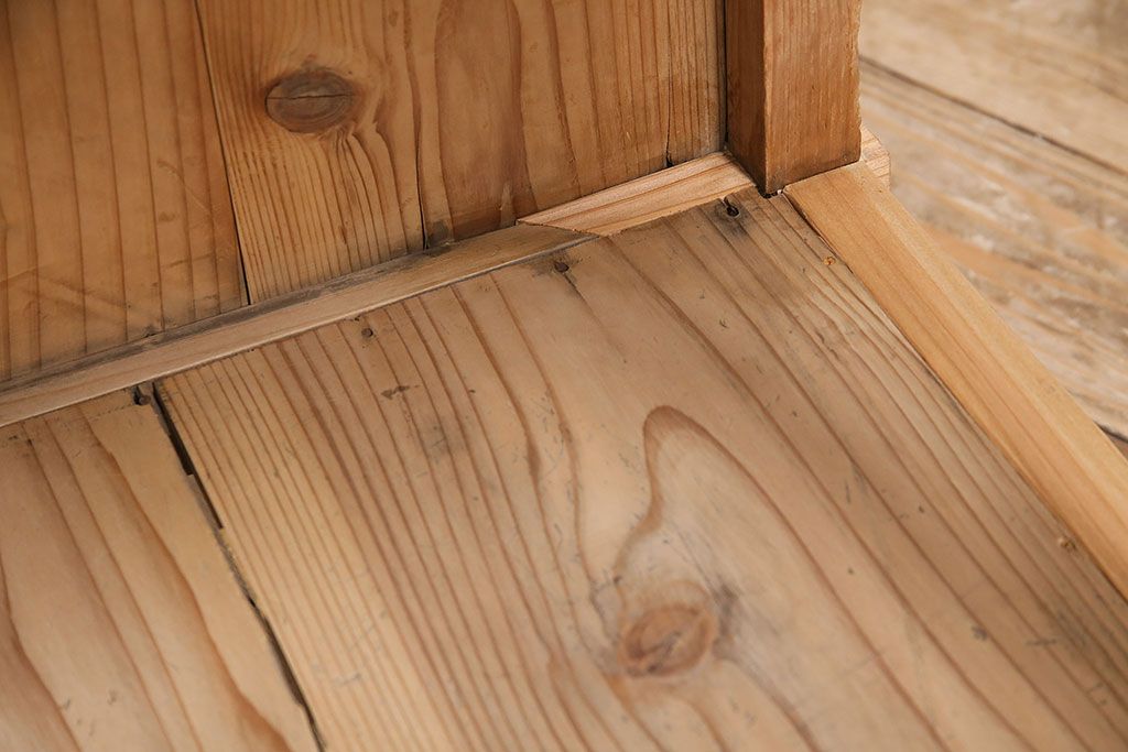 こちらは塗装を剥がしたストリップド(剥離)商品です。多少の隙間や荒れ、傷はあえて残し、木味として楽しめるよう仕上げております。