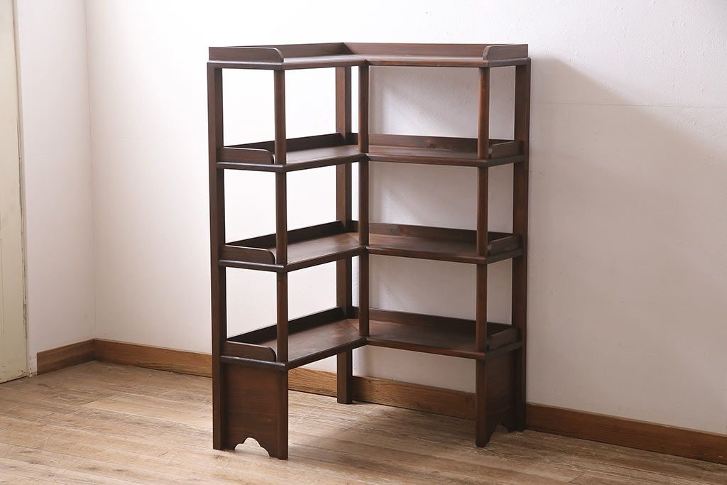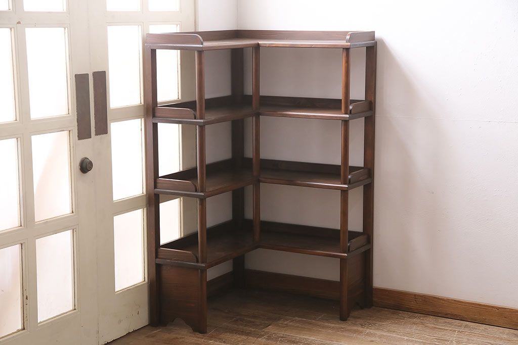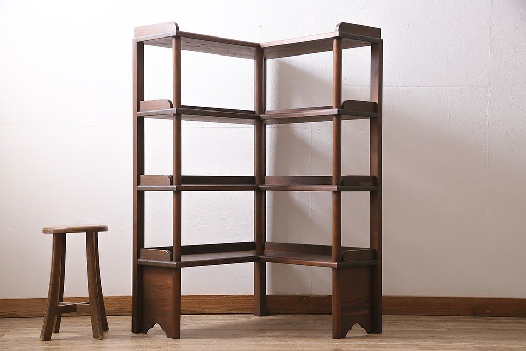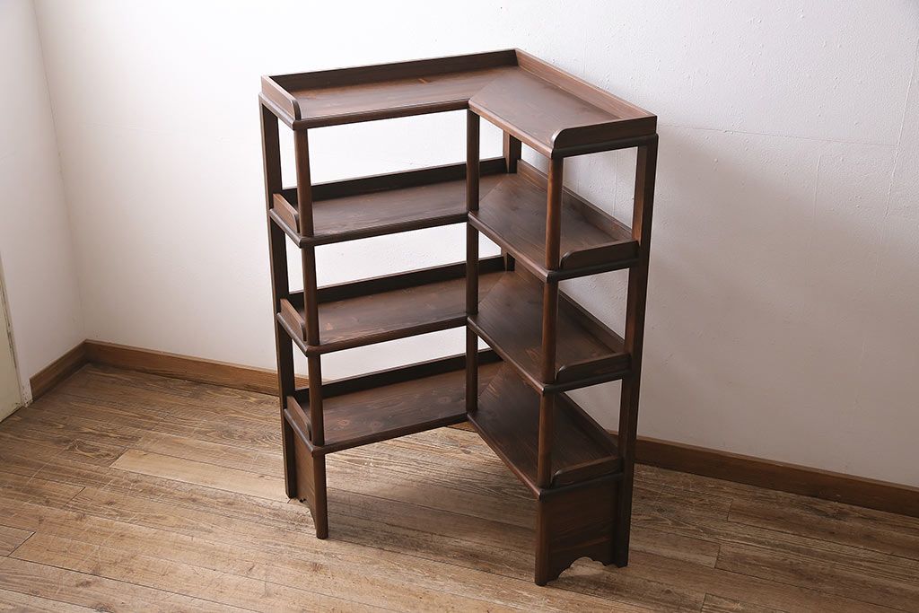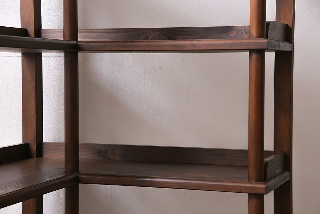 オープンラック・シェルフ> コーナーラック > L字型飾り棚を新規製作!他店商品を参考にデザイン。タモ材、ヒノキ材、ヒバ材を使用。お手持ちの家具に近しい色味に着色し仕上げ。(コーナーラック、オープンラック)