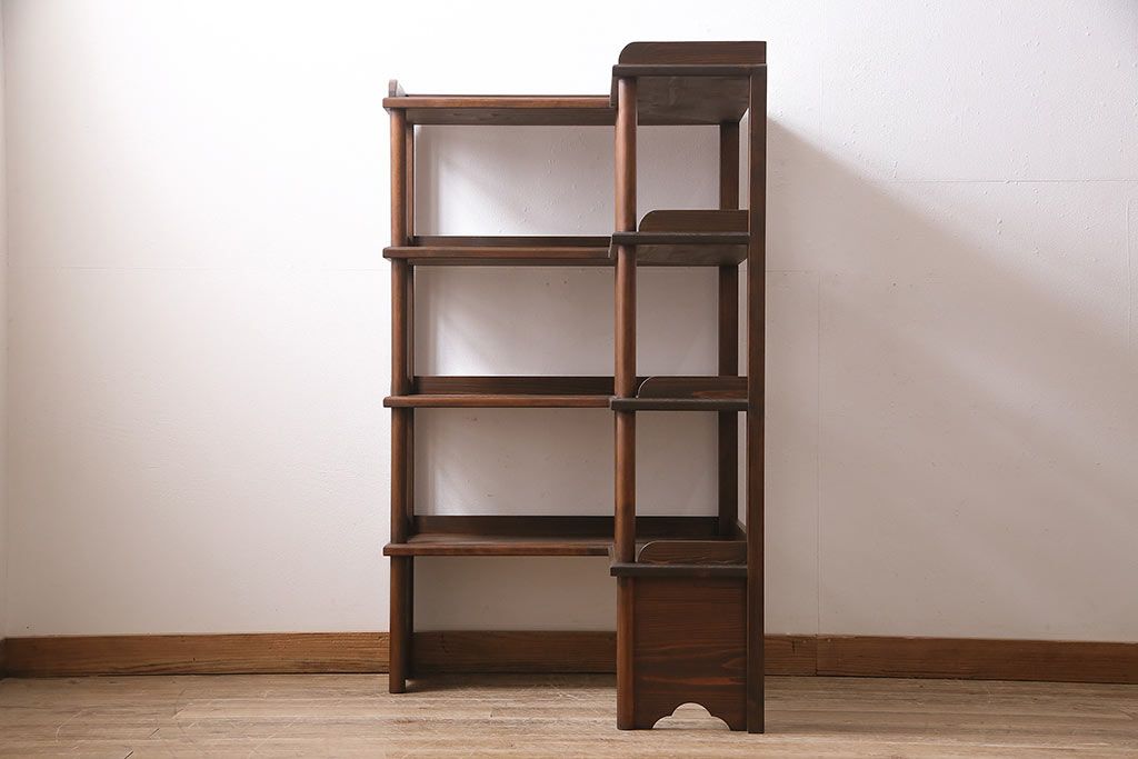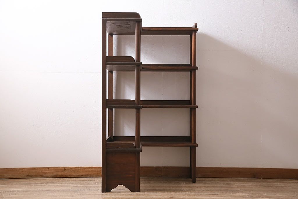 オープンラック・シェルフ> ディスプレイラック > L字型飾り棚を新規製作!他店商品を参考にデザイン。タモ材、ヒノキ材、ヒバ材を使用。お手持ちの家具に近しい色味に着色し仕上げ。(コーナーラック、オープンラック)