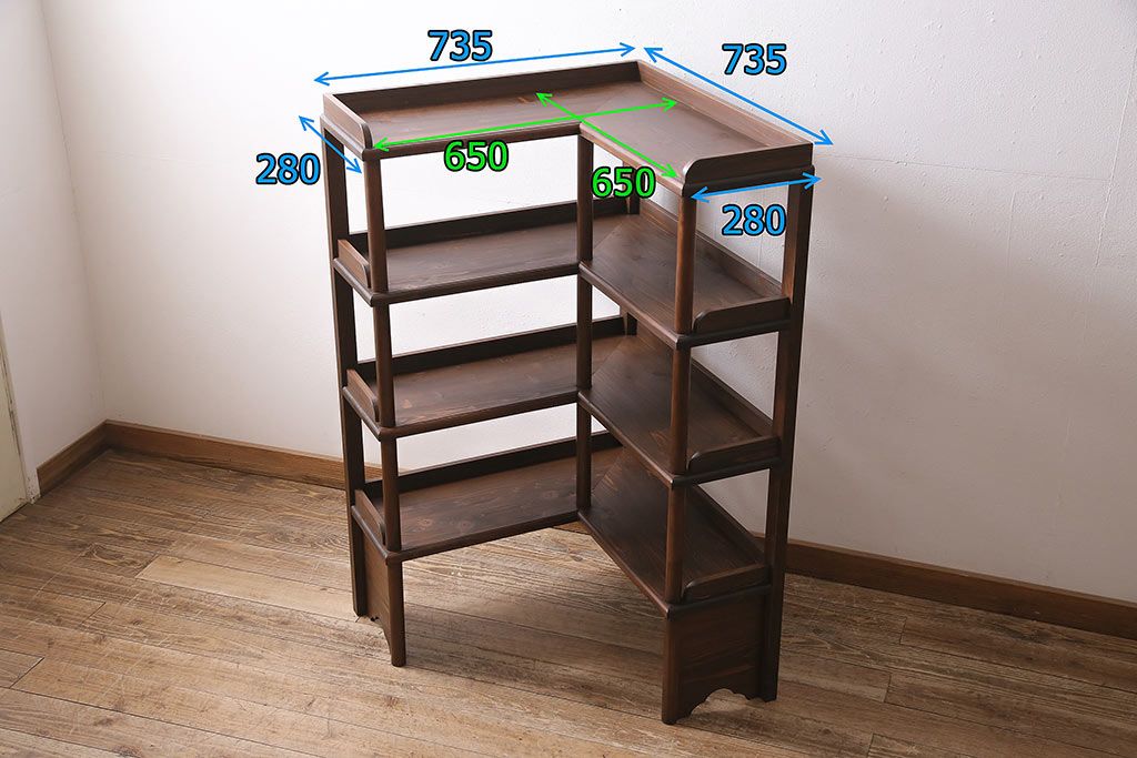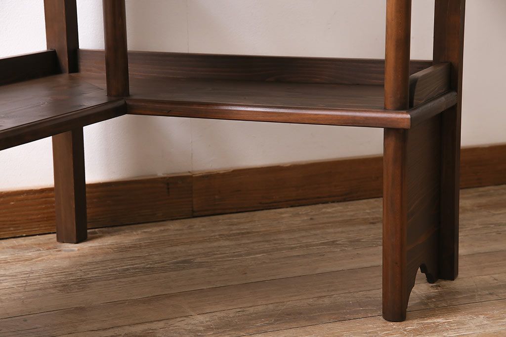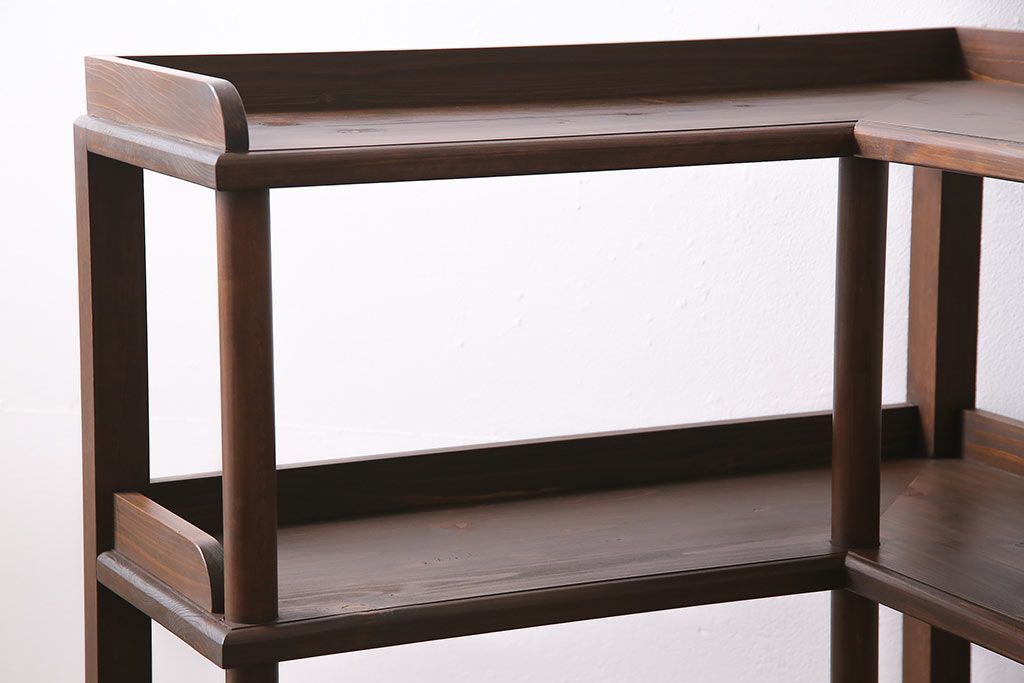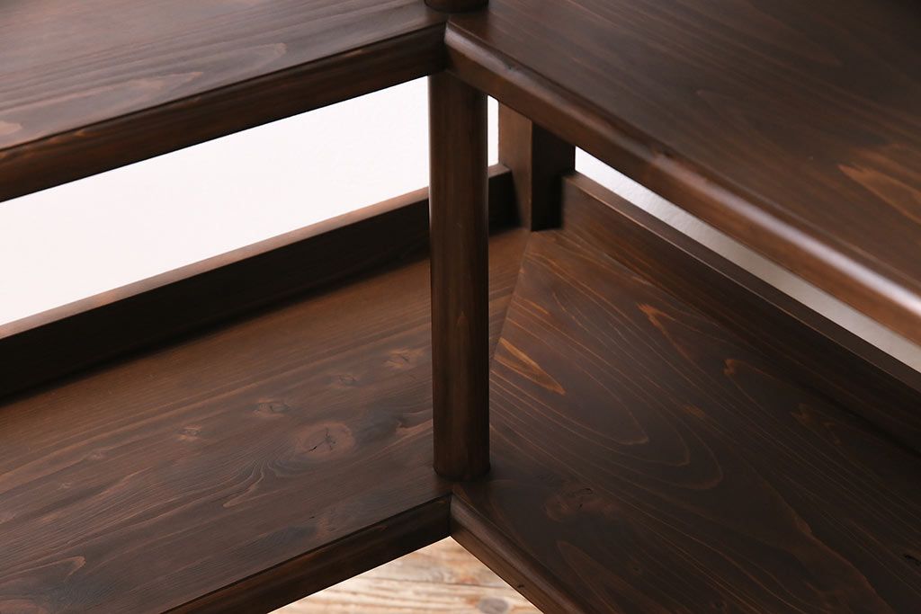 オープンラック・シェルフ > L字型飾り棚を新規製作!他店商品を参考にデザイン。タモ材、ヒノキ材、ヒバ材を使用。お手持ちの家具に近しい色味に着色し仕上げ。(コーナーラック、オープンラック)