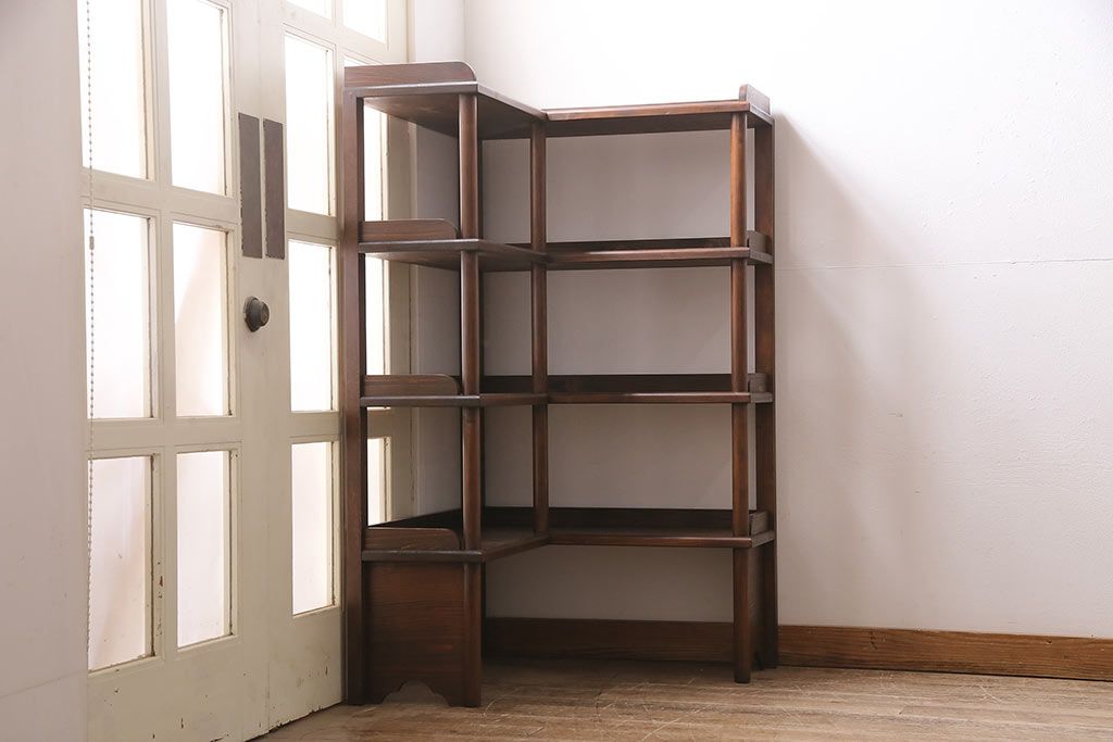 店舗什器 > L字型飾り棚を新規製作!他店商品を参考にデザイン。タモ材、ヒノキ材、ヒバ材を使用。お手持ちの家具に近しい色味に着色し仕上げ。(コーナーラック、オープンラック)