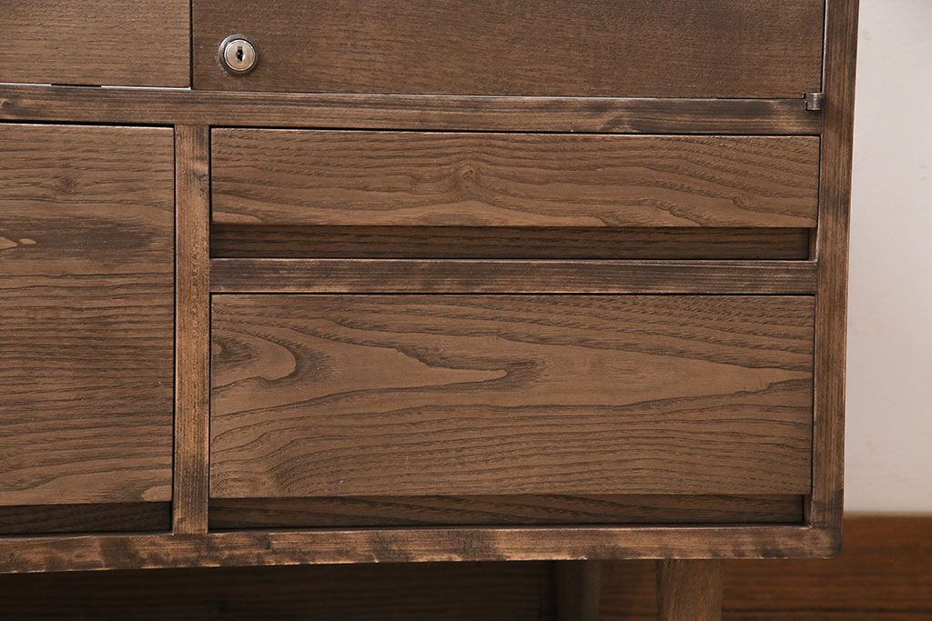 ◆鍵:面付きシリンダー錠。本体に馴染むように、くすんだ色味に加工して取り付け