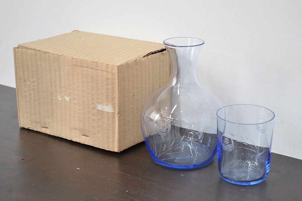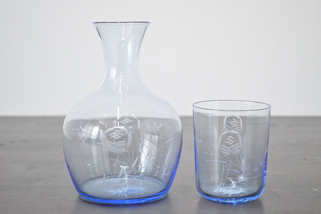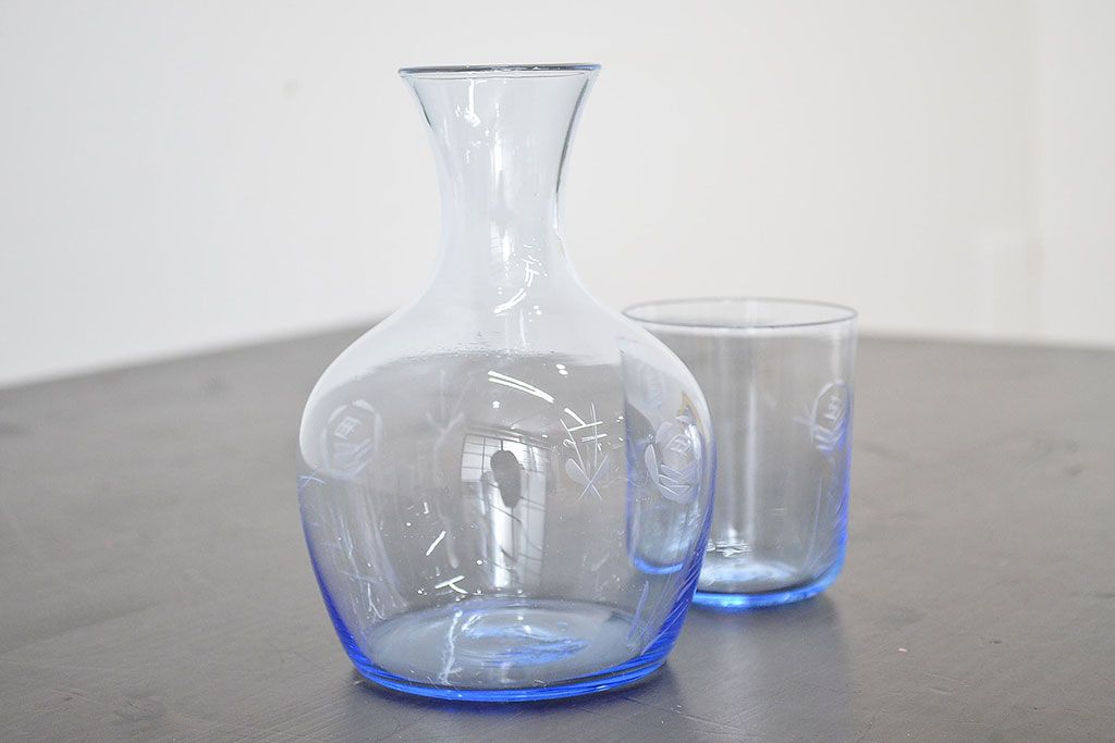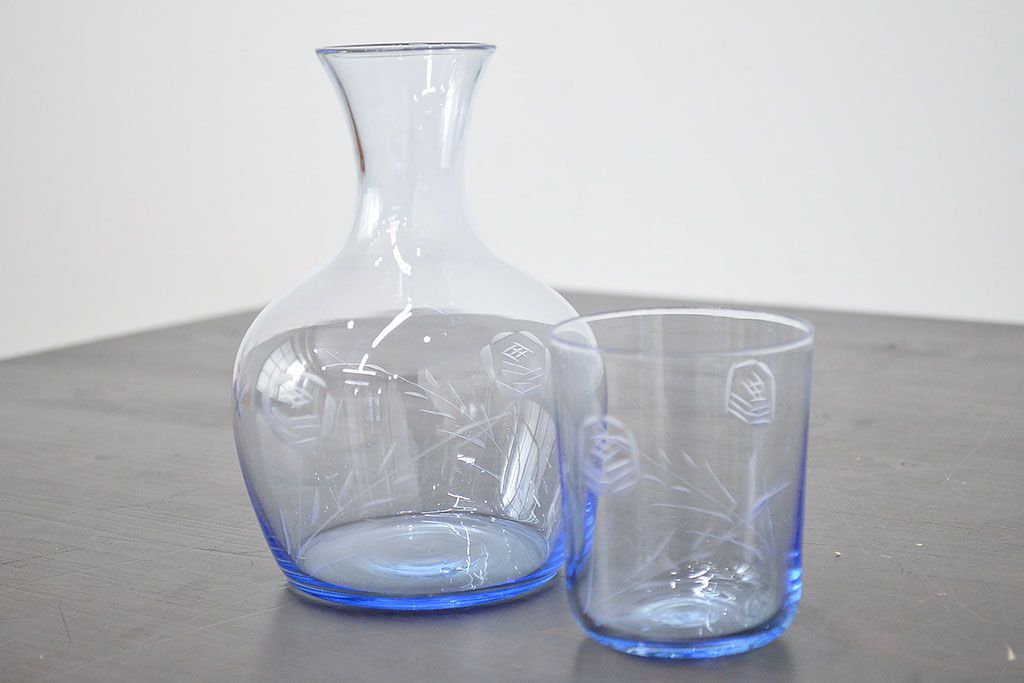 ラフジュ工房> 骨董・美術品> 骨董-ガラス食器 > 昭和レトロ 花柄 切子 水注(水次、グラス、コップ)(R-046820)