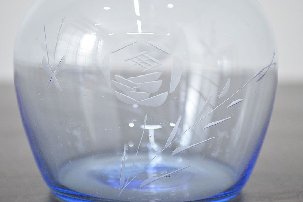 昭和レトロ 花柄 切子 水注(水次、グラス、コップ)(R-046820)