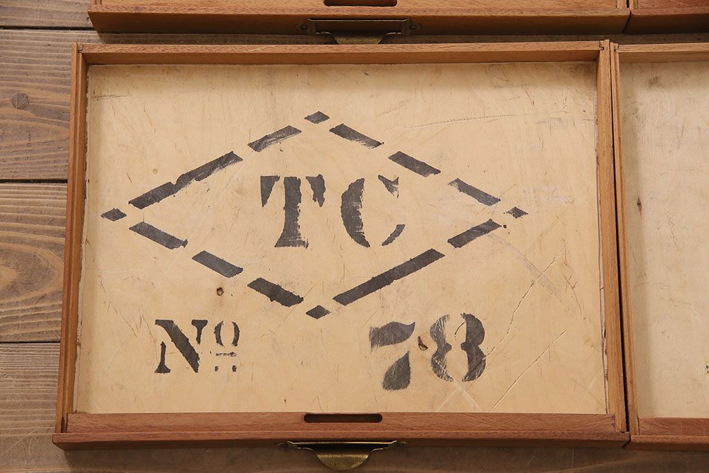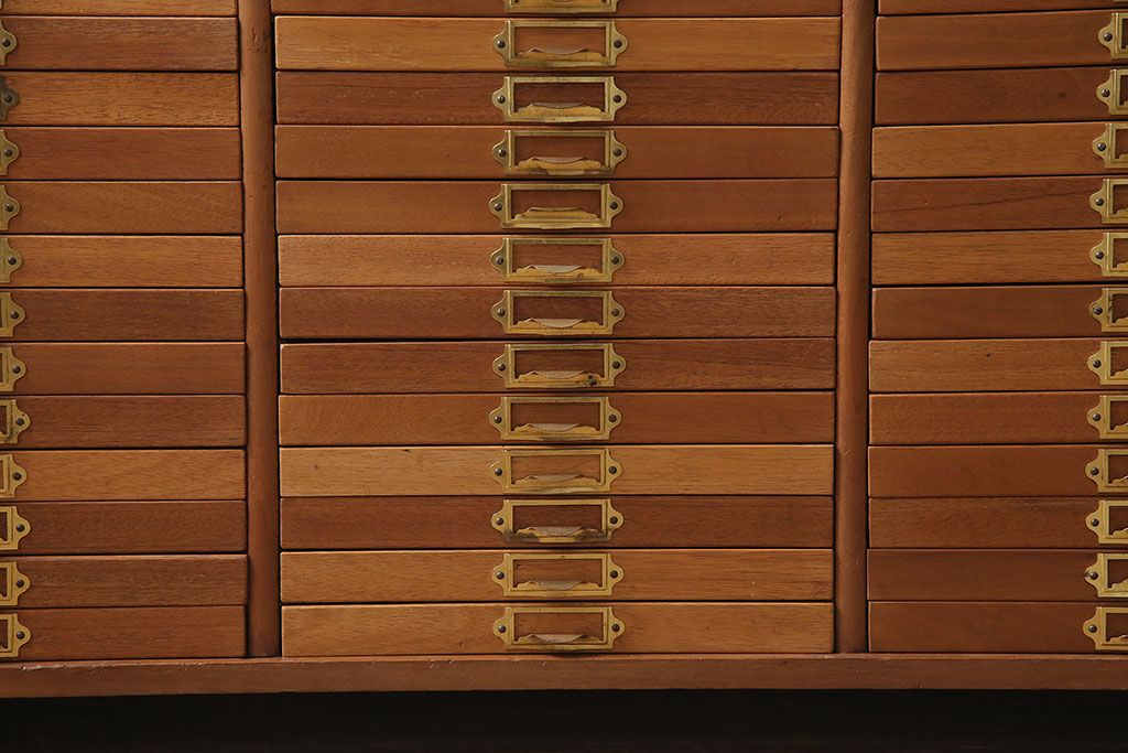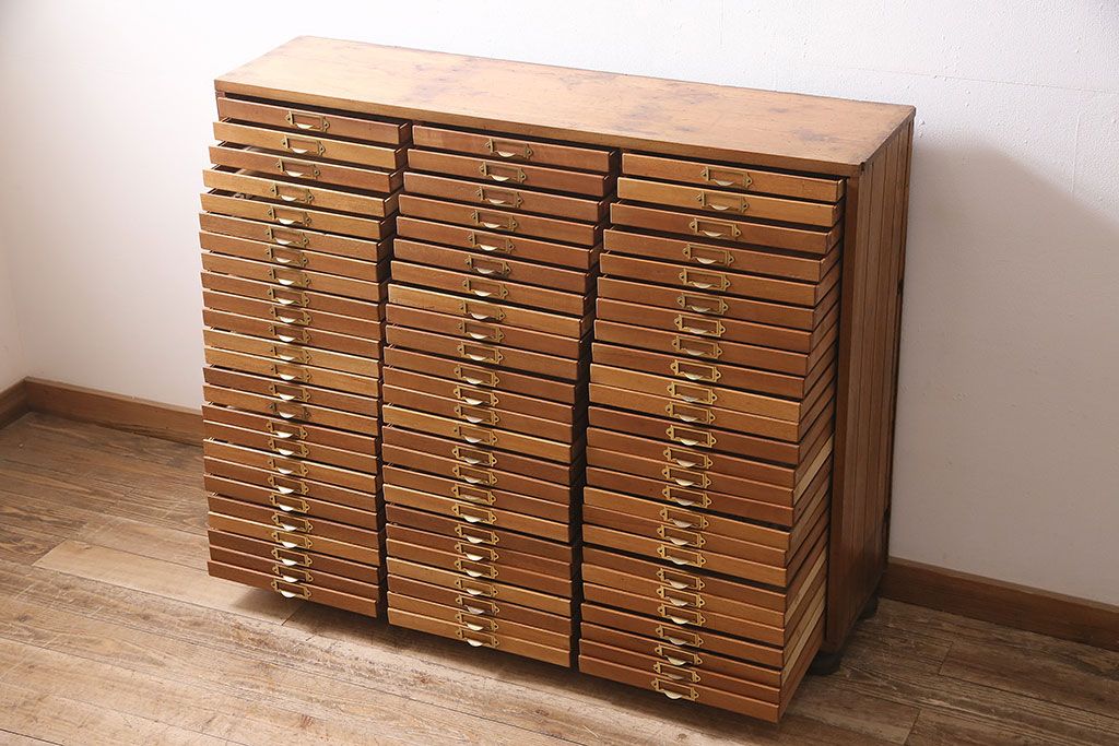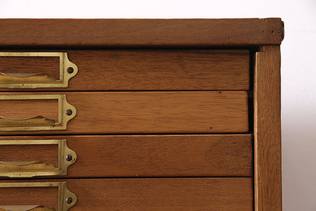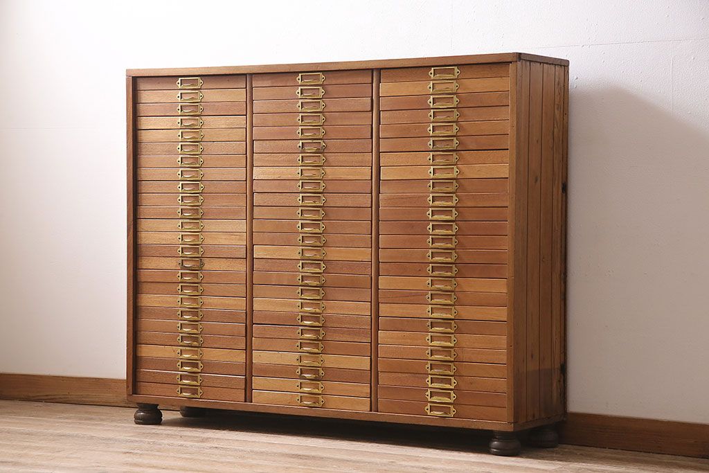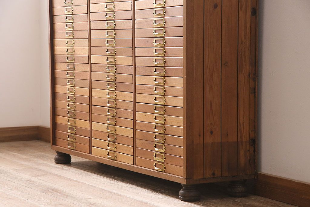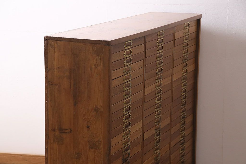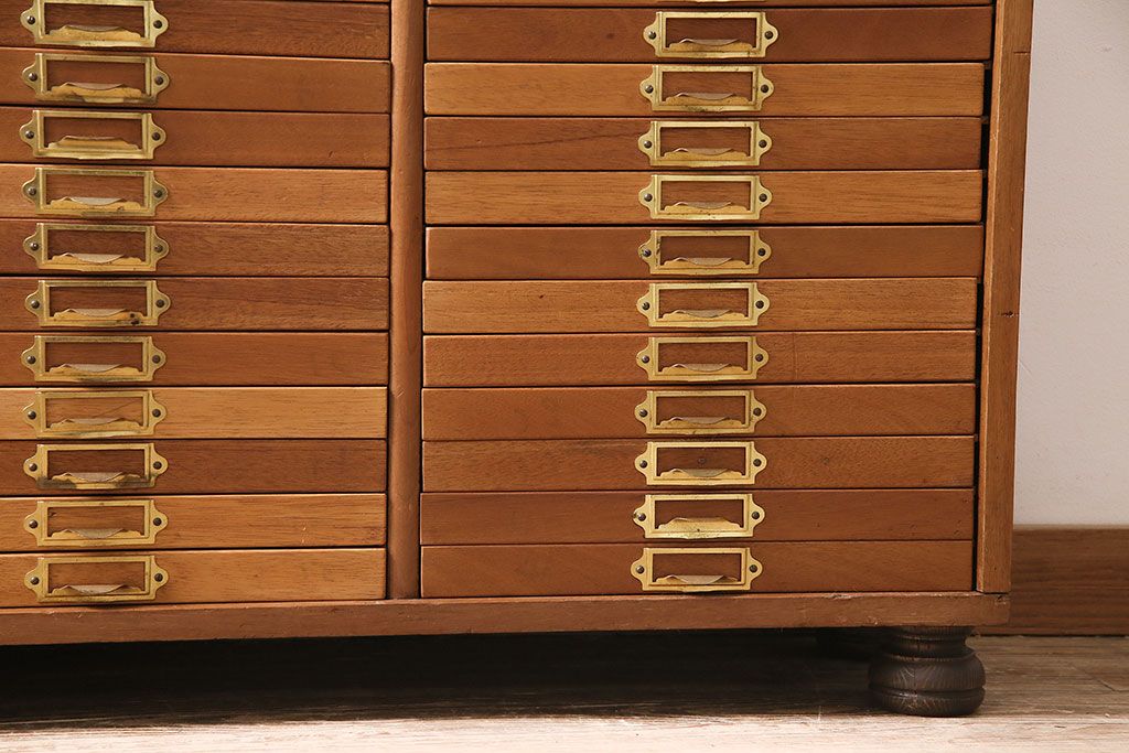 チェスト・引き出し > ヴィンテージ家具 イギリスビンテージ 前面チーク材 ネームプレート付き 引き出しが75杯も付いたチェスト(小物収納、書類収納)(R-046897)