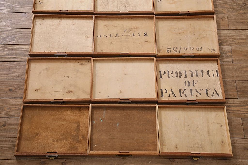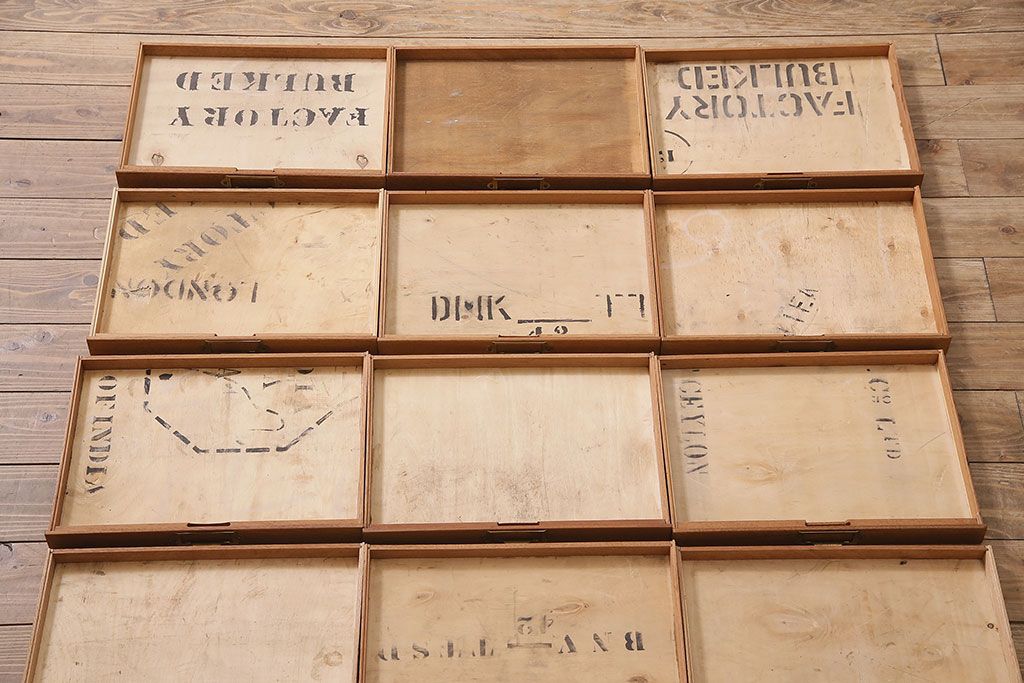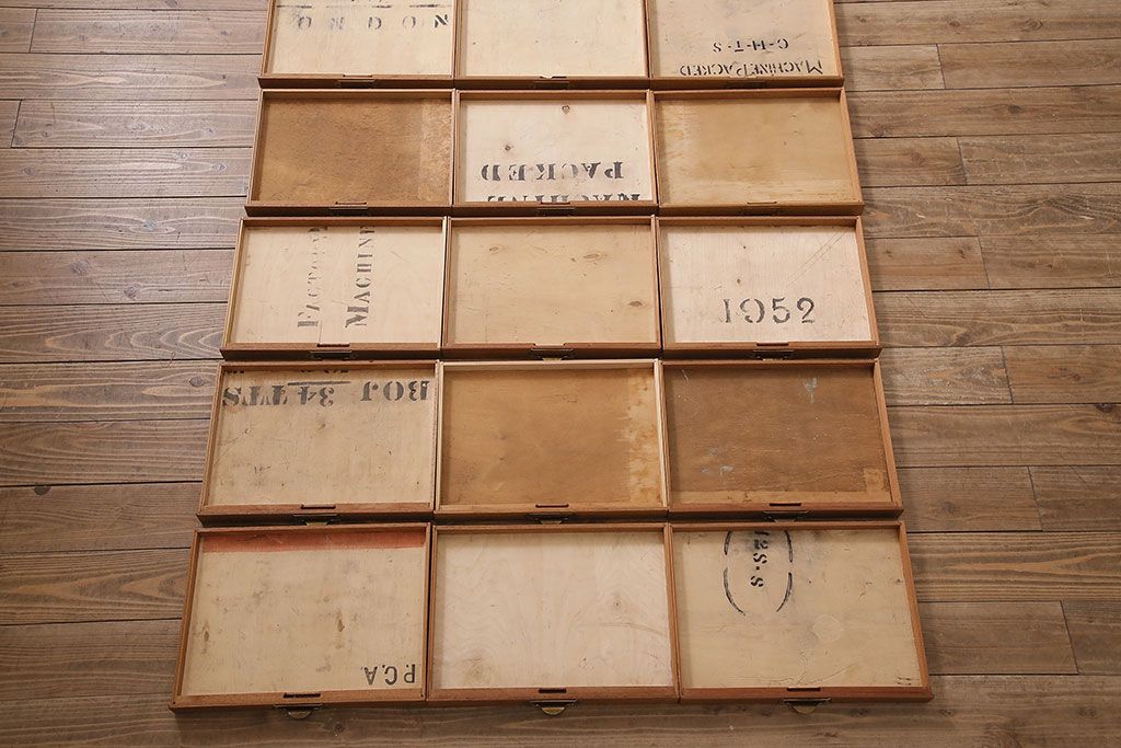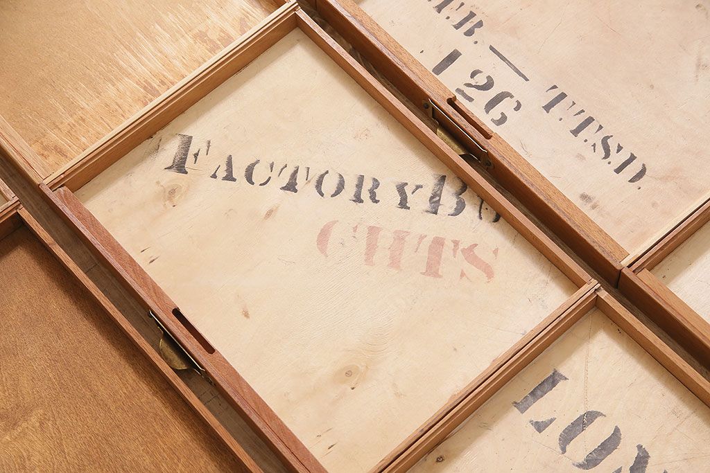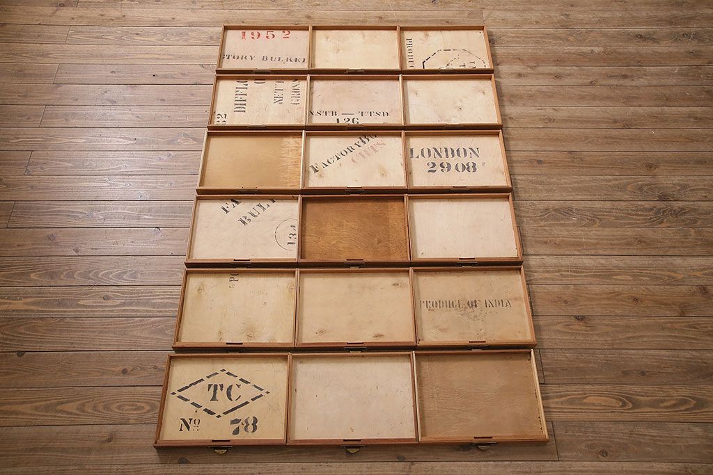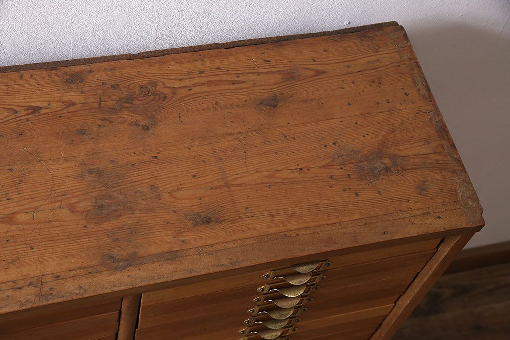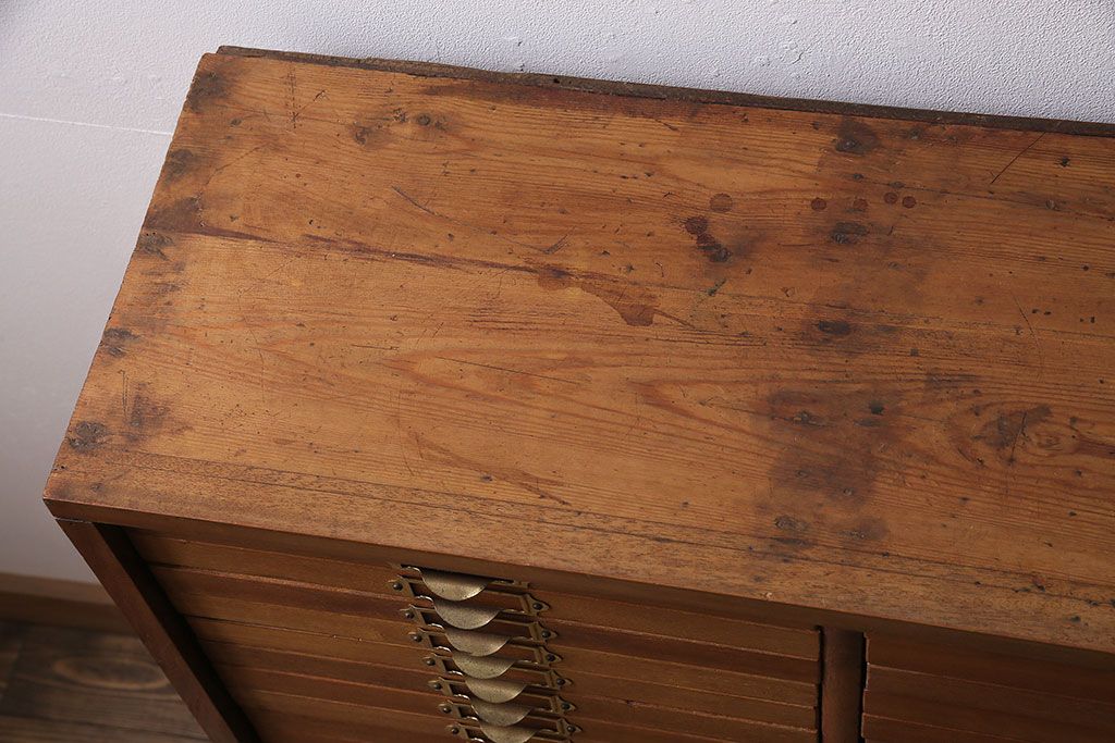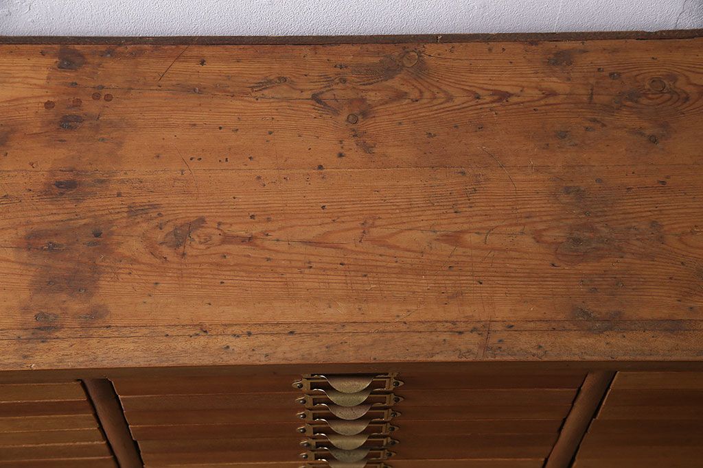 チェスト・引き出し > ヴィンテージ家具 イギリスビンテージ 前面チーク材 ネームプレート付き 引き出しが75杯も付いたチェスト(小物収納、書類収納)(R-046897)