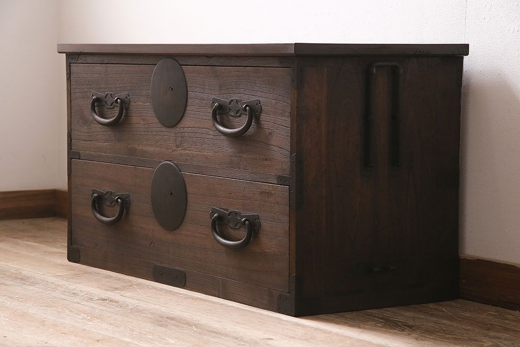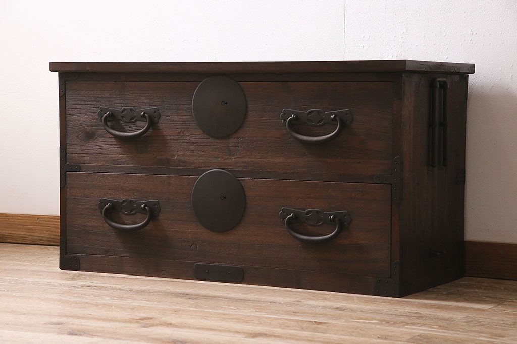 キャビネット・戸棚> テレビ台・ローボード > アンティーク家具 大正期 天板リメイク 前面桐材 シンプルで味のある時代箪笥ローボード(チェスト、引き出し、テレビ台)(R-046899)