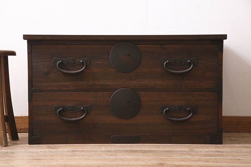 アンティーク家具 大正期 天板リメイク 前面桐材 シンプルで味のある時代箪笥ローボード(チェスト、引き出し、テレビ台)(R-046899)