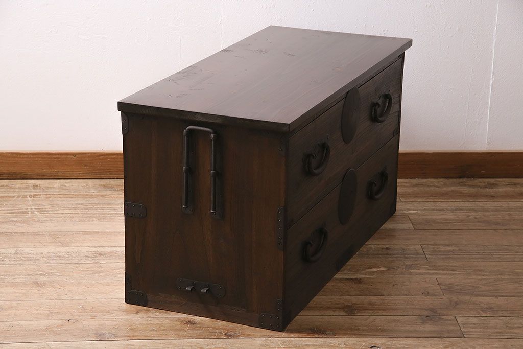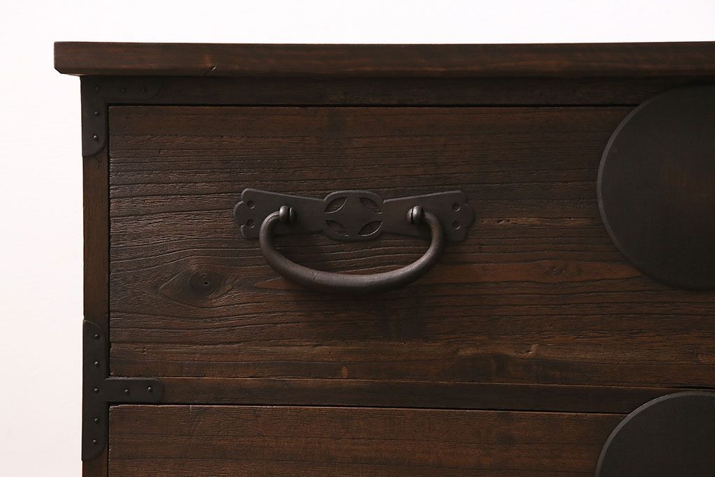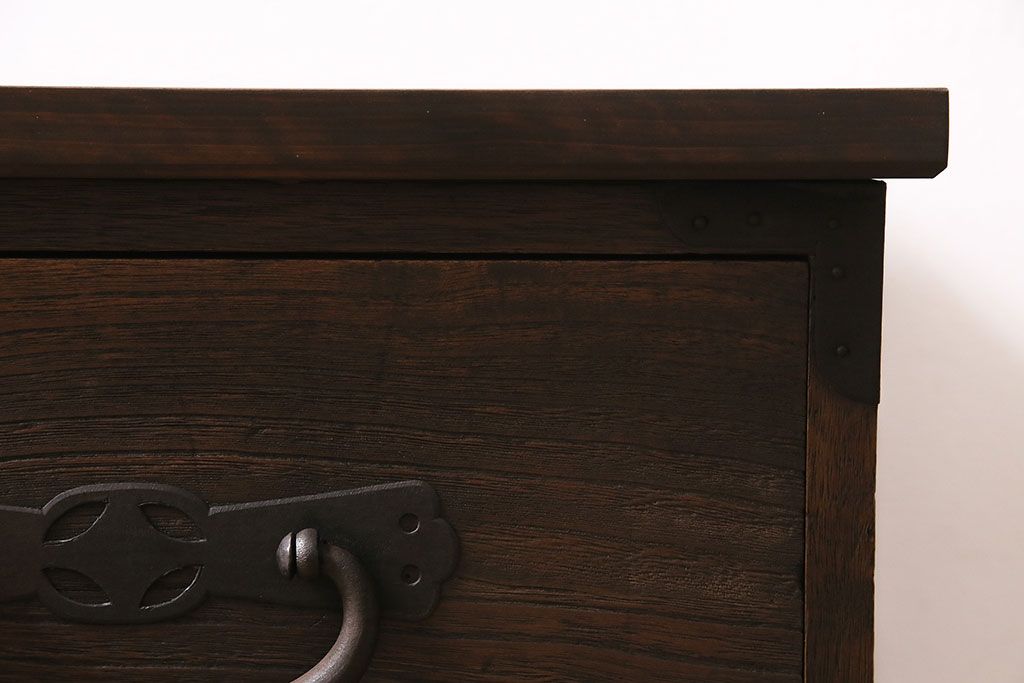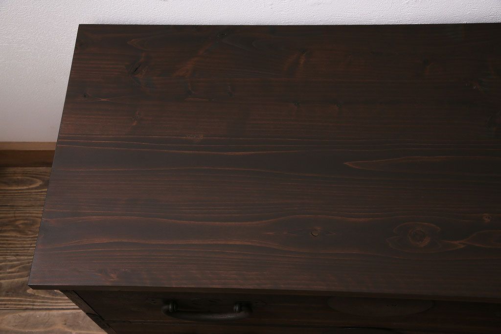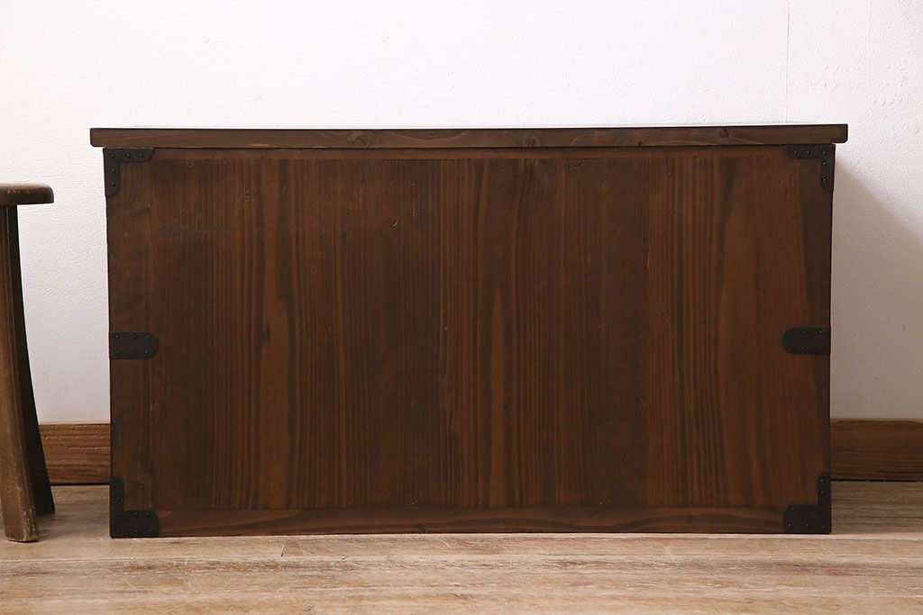和箪笥 > アンティーク家具 大正期 天板リメイク 前面桐材 シンプルで味のある時代箪笥ローボード(チェスト、引き出し、テレビ台)(R-046899)