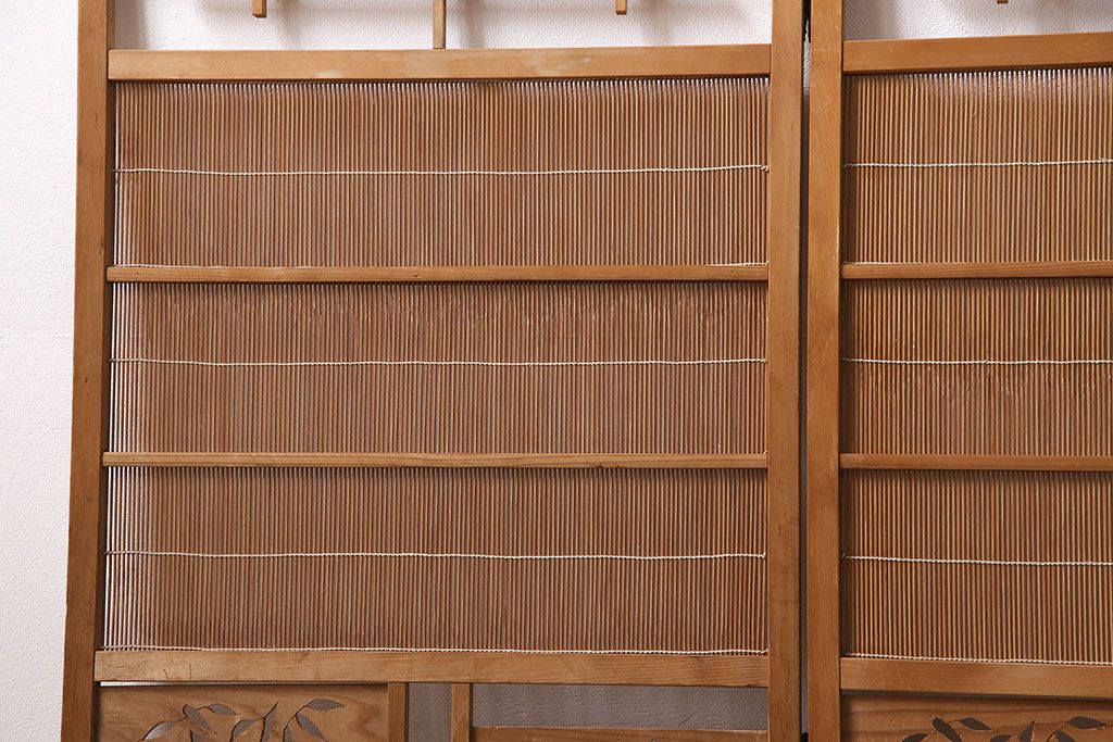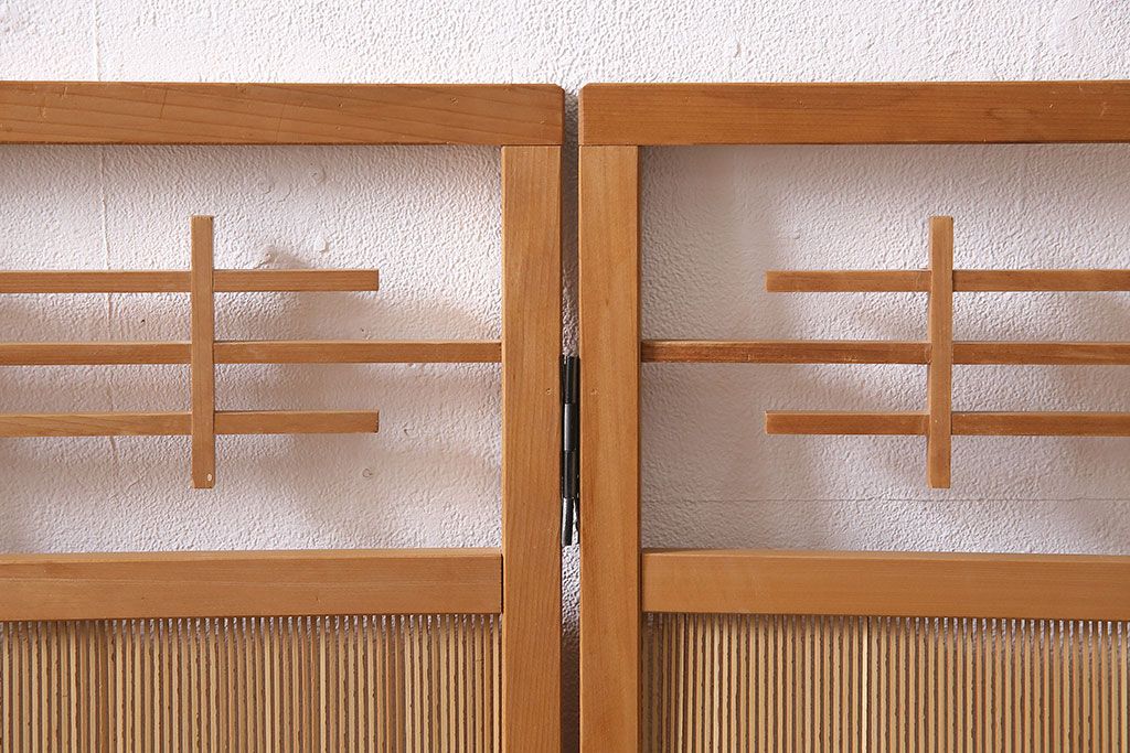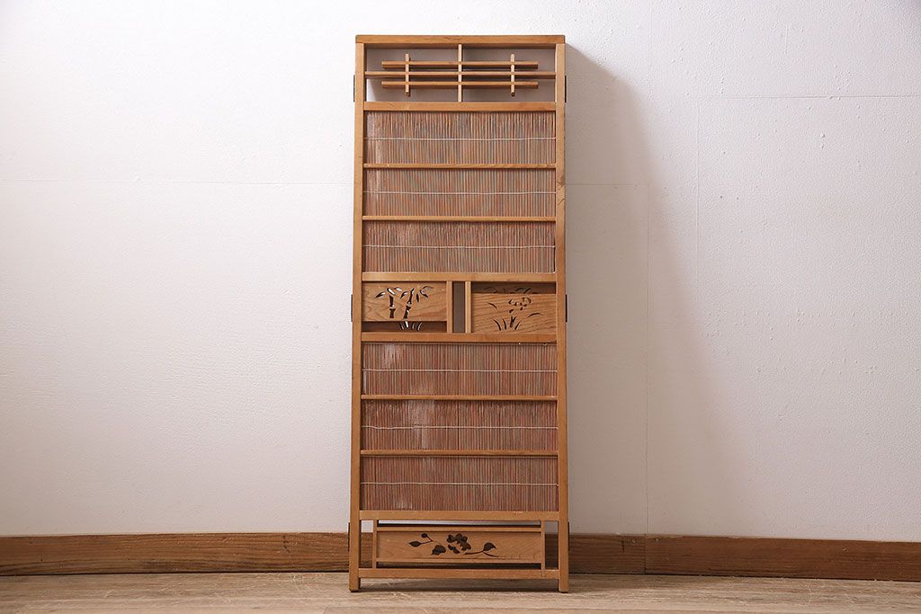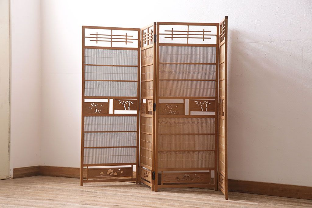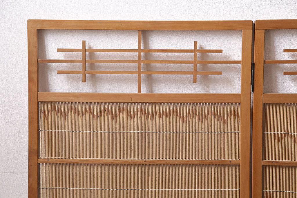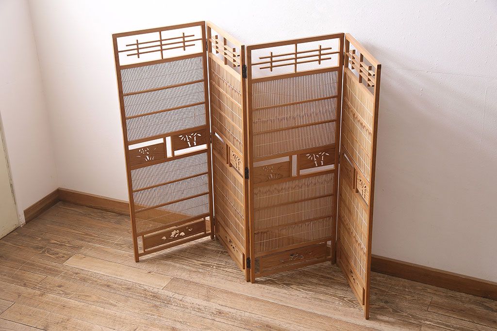 ヴィンテージ家具 昭和中期 民芸家具 和の風情を演出する四連折り畳み式パーテーション(衝立、仕切り、ビンテージ)(R-046903)