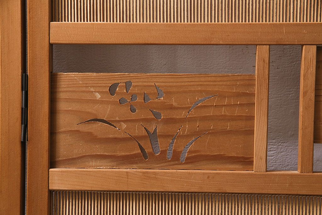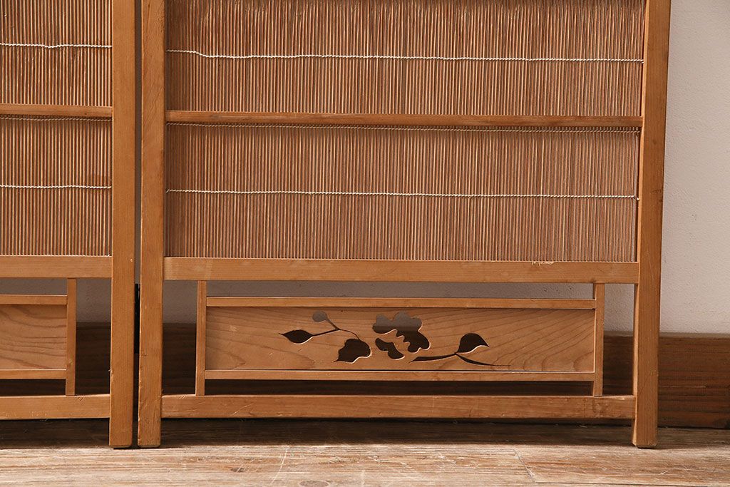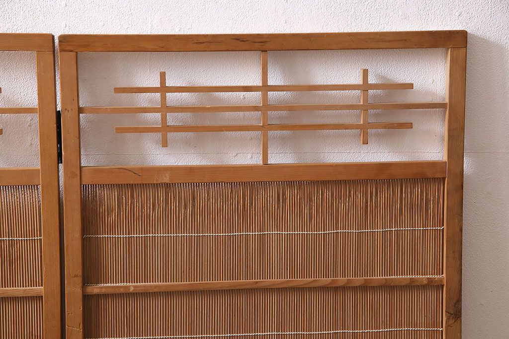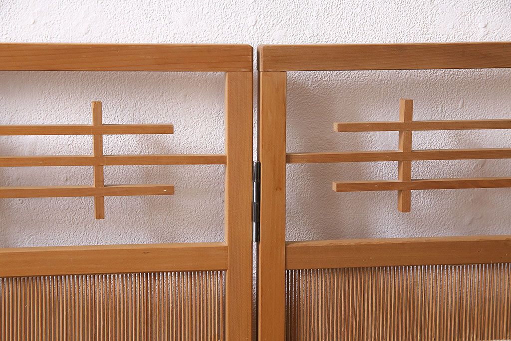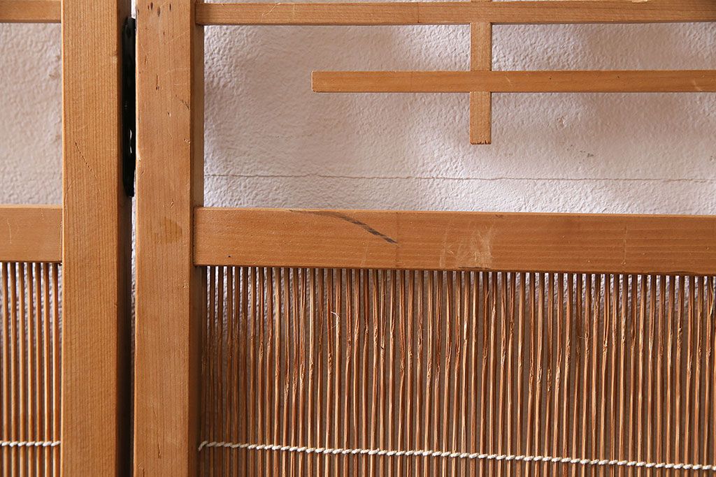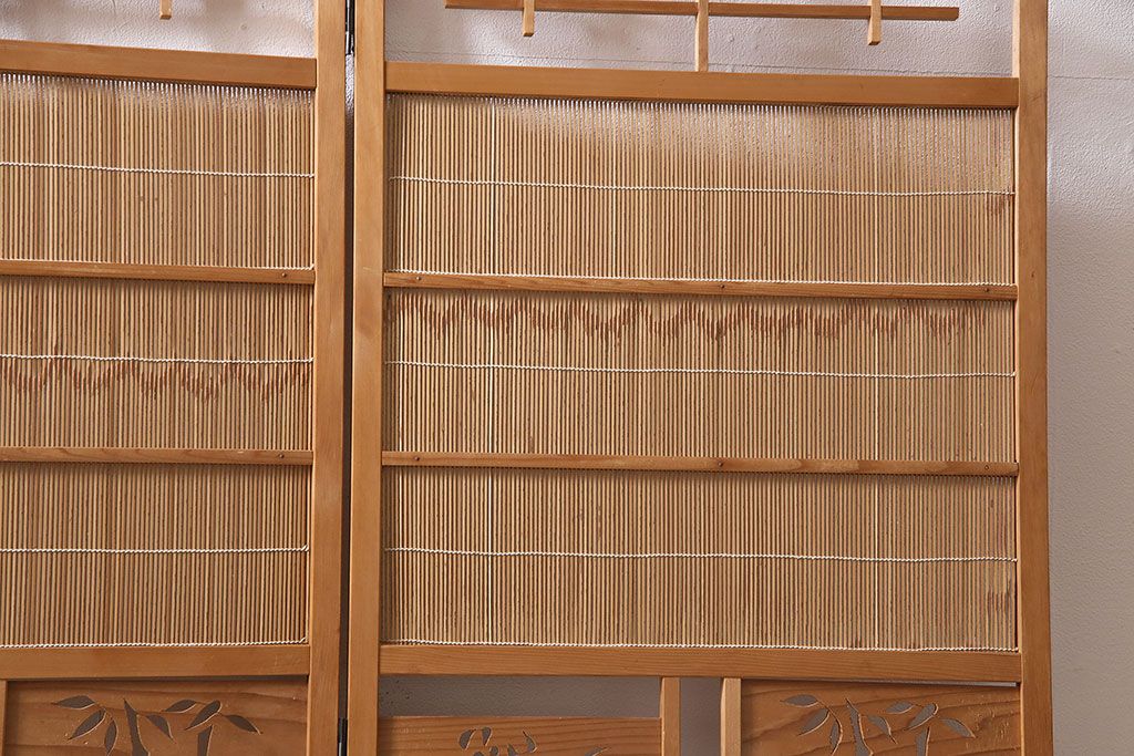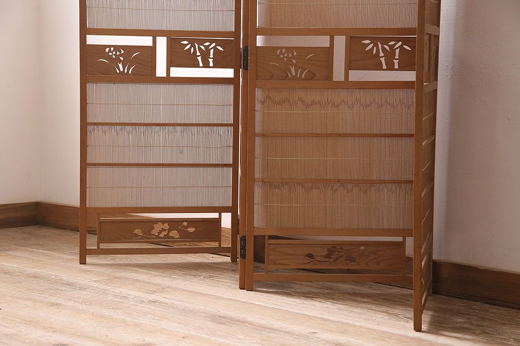ヴィンテージ家具 昭和中期 民芸家具 和の風情を演出する四連折り畳み式パーテーション(衝立、仕切り、ビンテージ)(R-046903)
