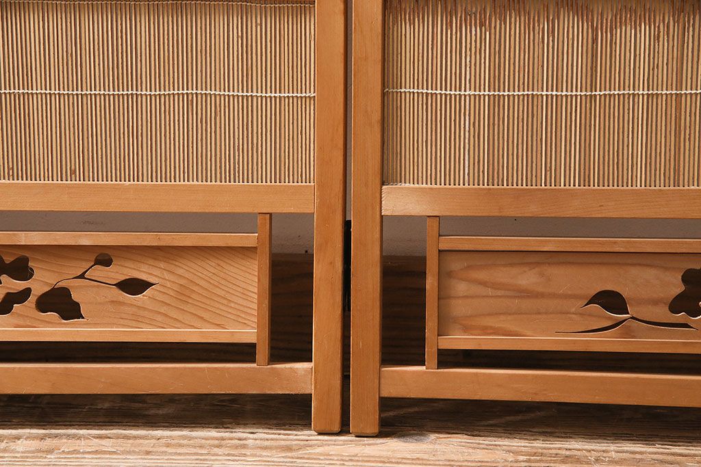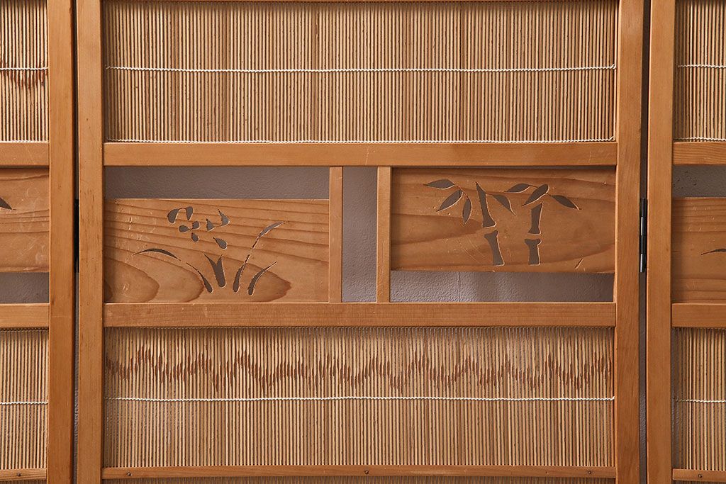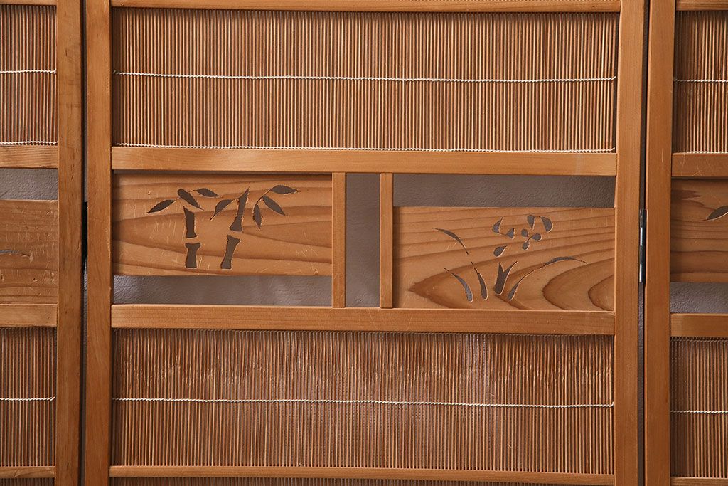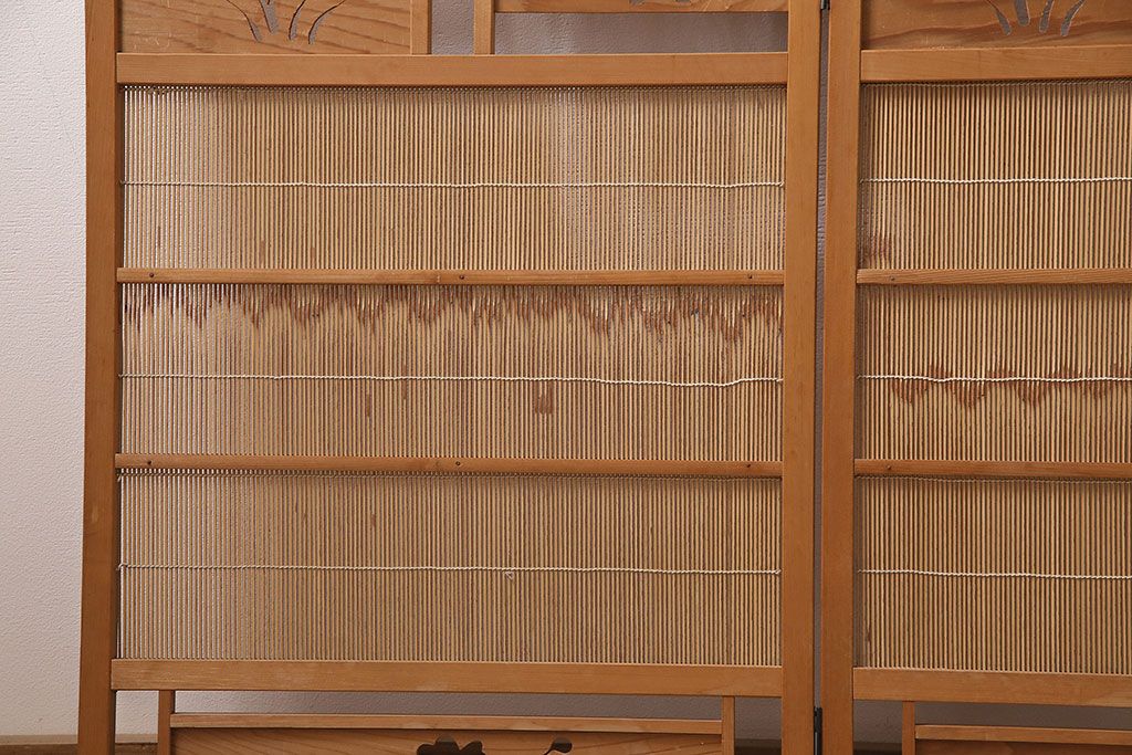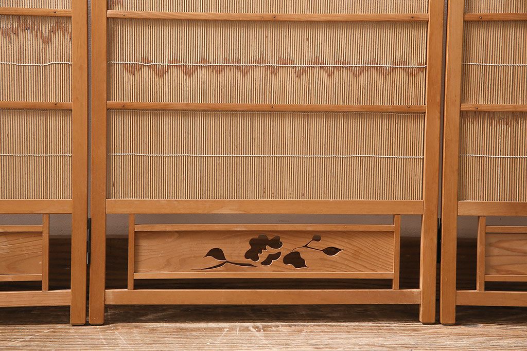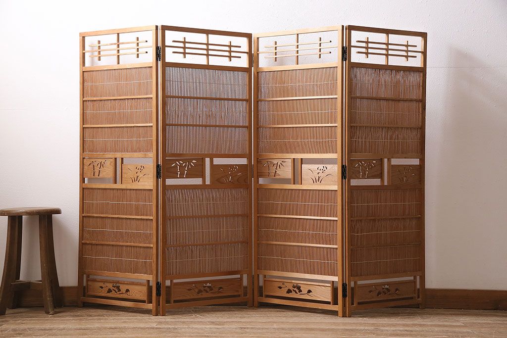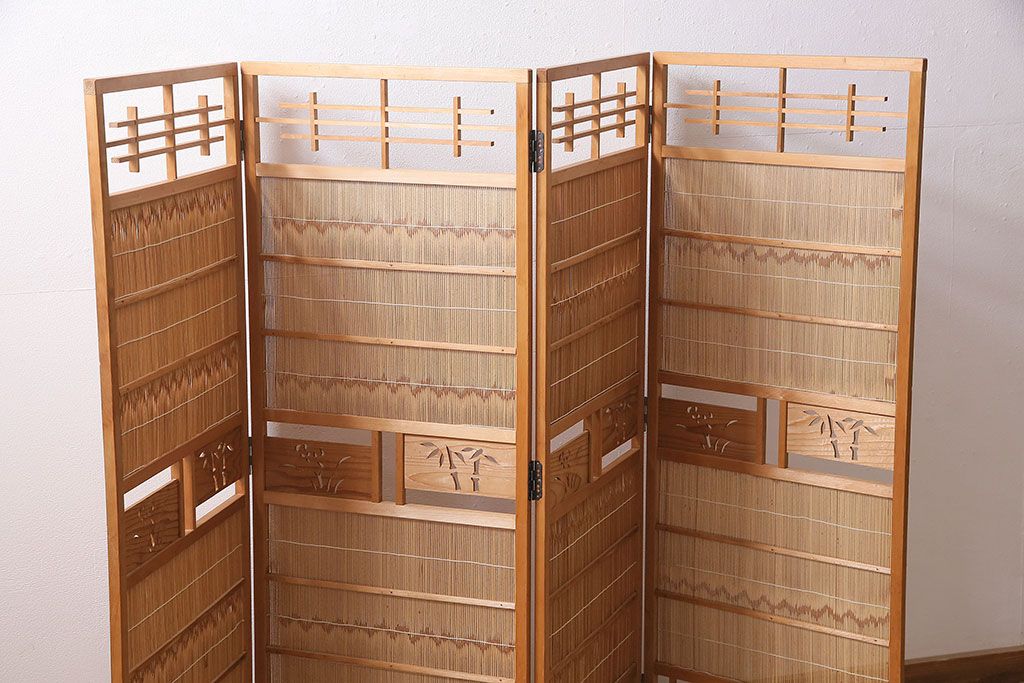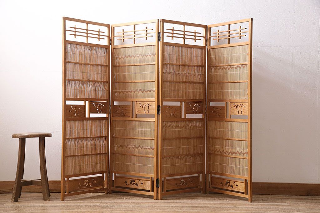 民芸家具 > ヴィンテージ家具 昭和中期 民芸家具 和の風情を演出する四連折り畳み式パーテーション(衝立、仕切り、ビンテージ)(R-046903)