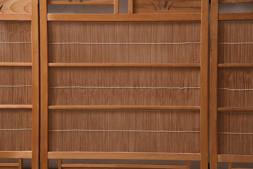 衝立・パーテーション > ヴィンテージ家具 昭和中期 民芸家具 和の風情を演出する四連折り畳み式パーテーション(衝立、仕切り、ビンテージ)(R-046903)