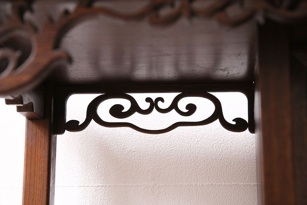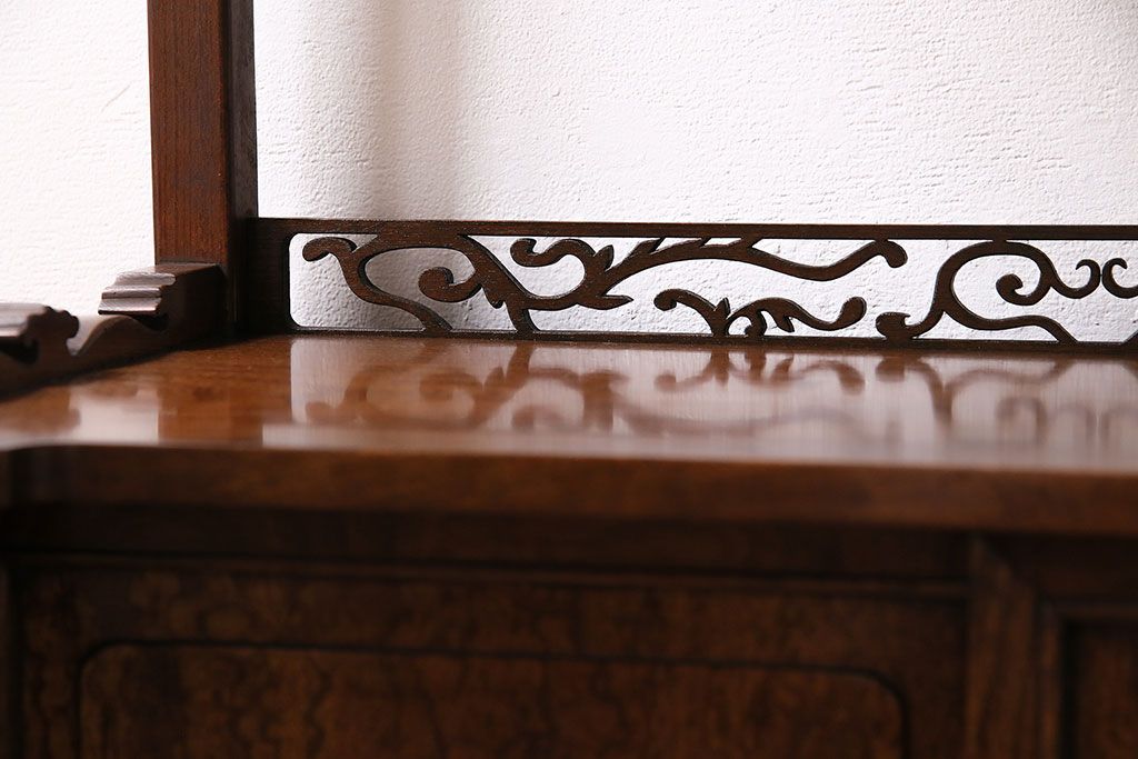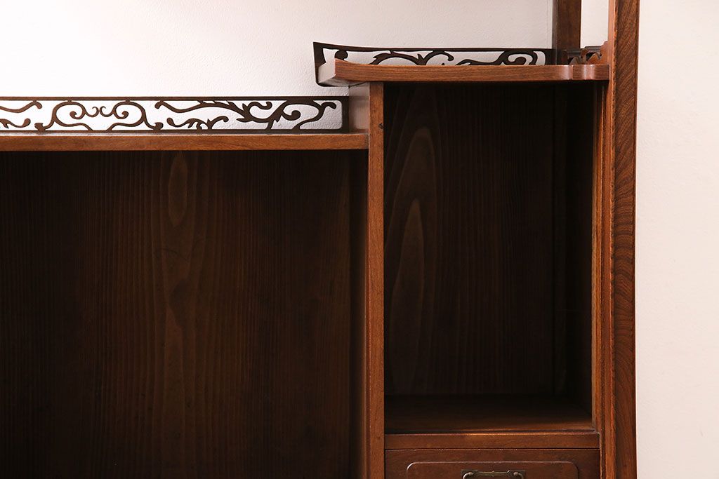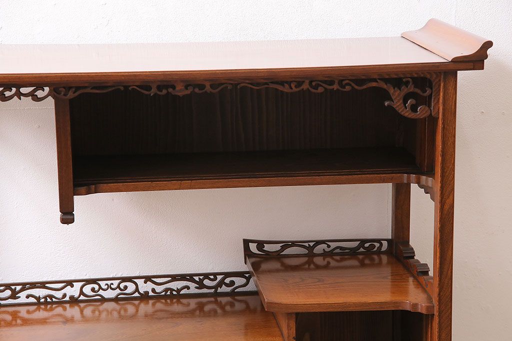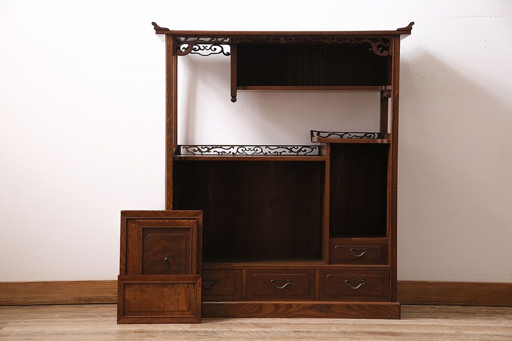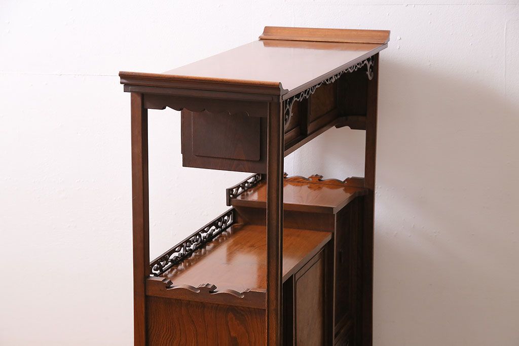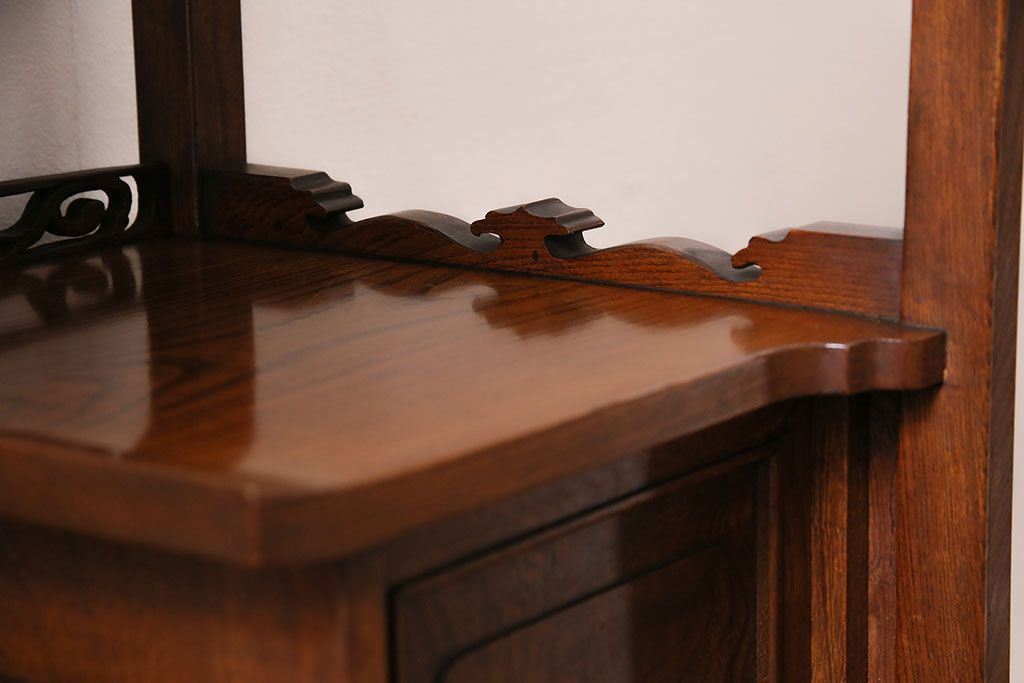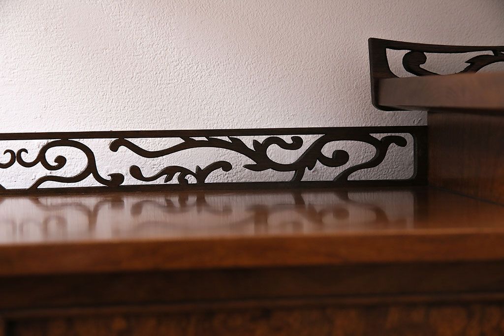 指物造りの飾り棚をリペア&カスタム!透かし彫りの再現製作。新材に現状に近しい色味に着色し仕上げ。(茶箪笥、茶棚、収納棚)