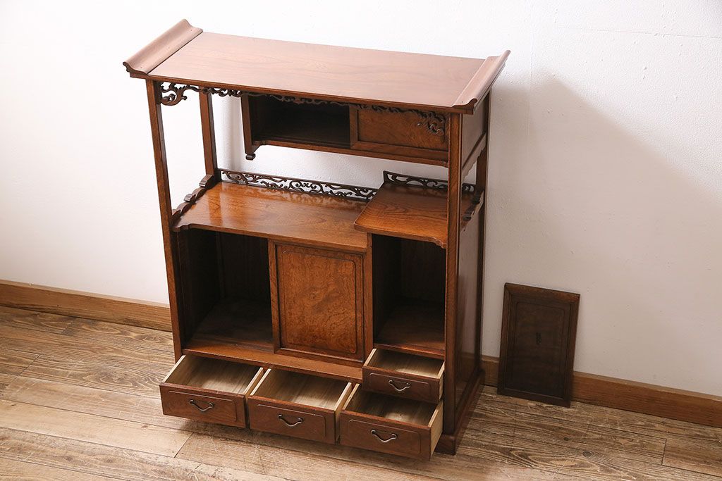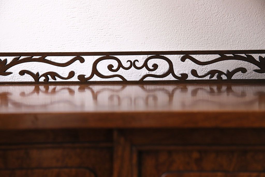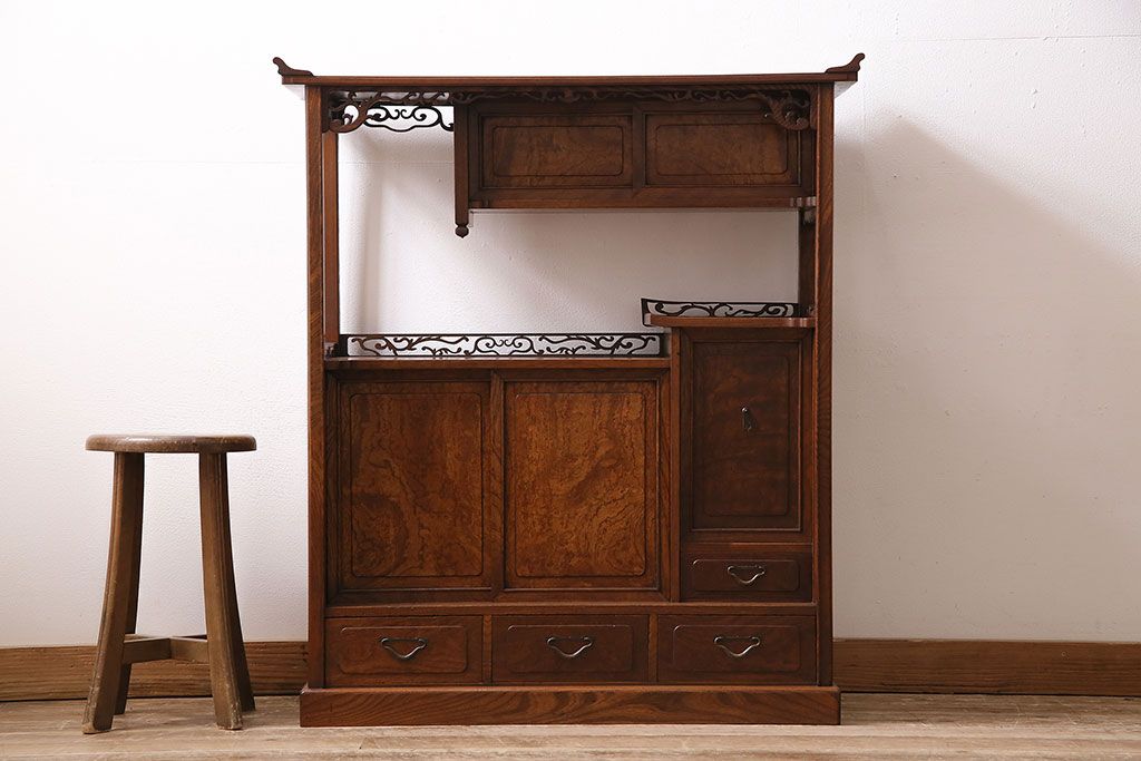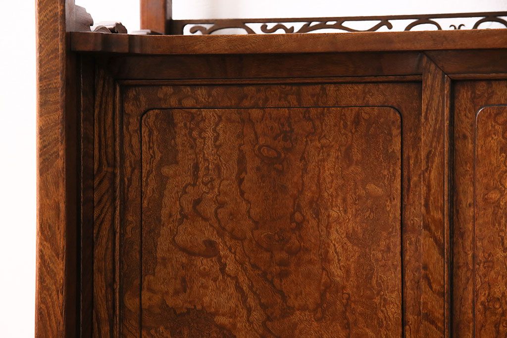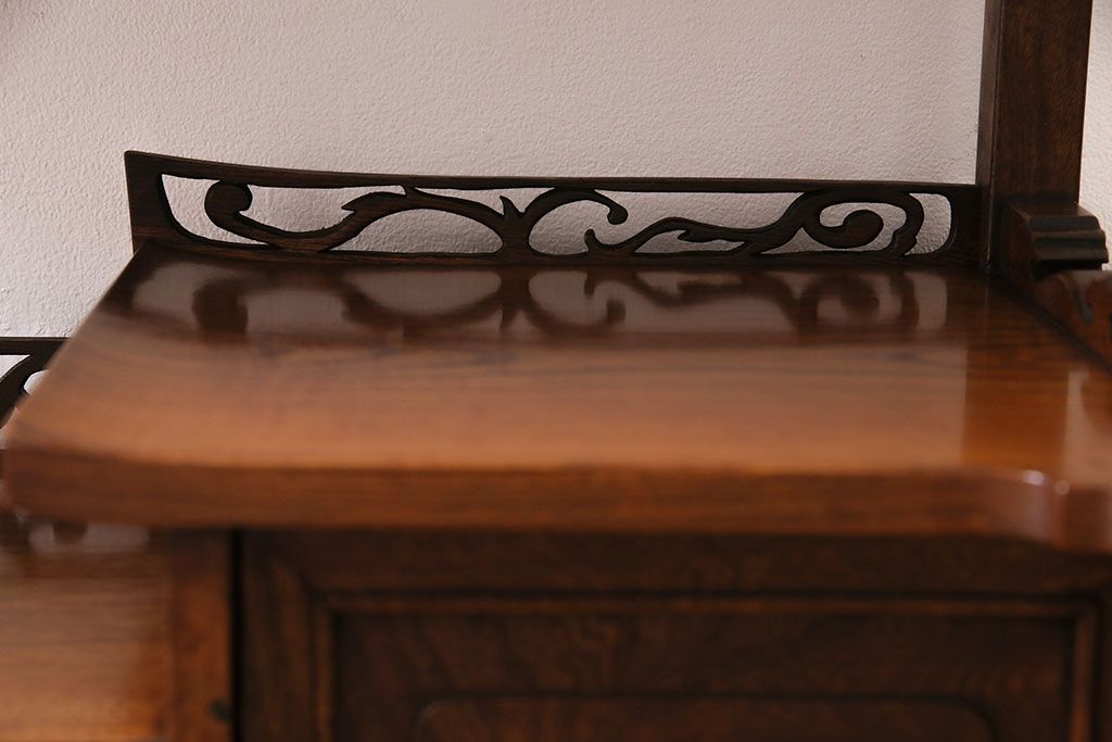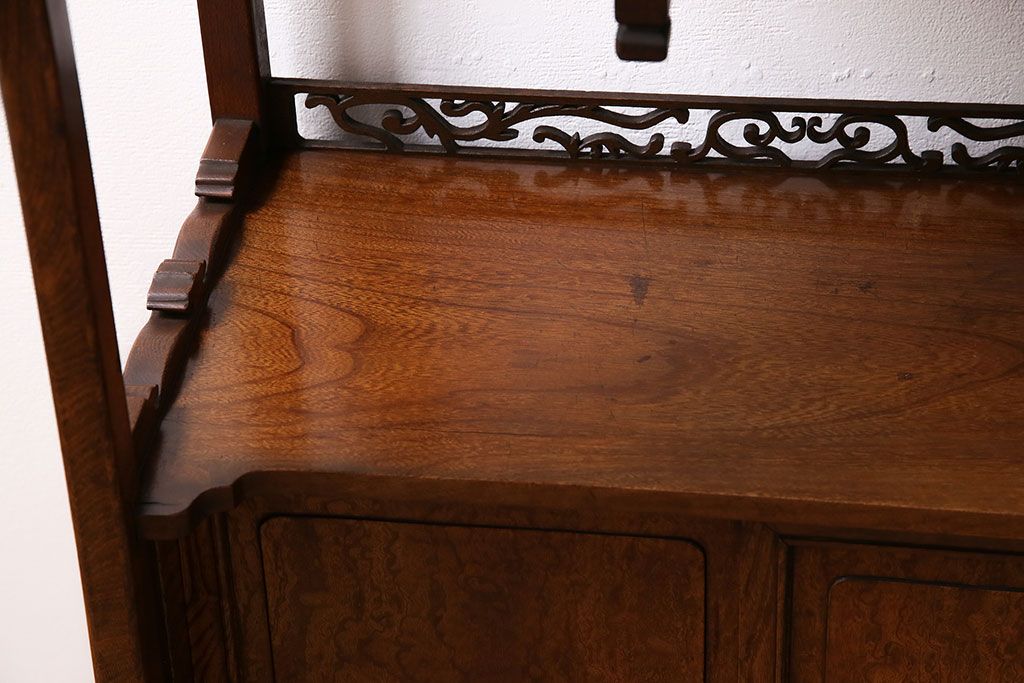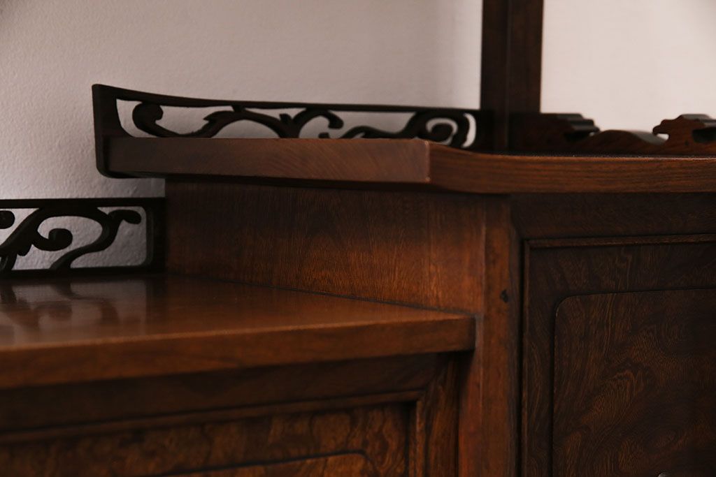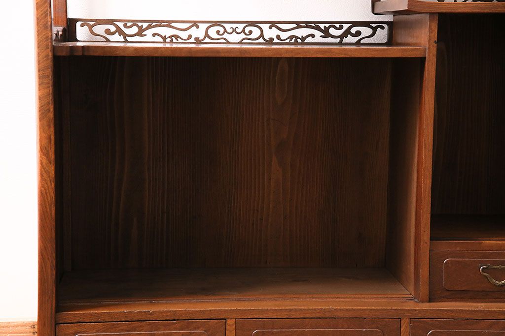 指物造りの飾り棚をリペア&カスタム!透かし彫りの再現製作。新材に現状に近しい色味に着色し仕上げ。(茶箪笥、茶棚、収納棚)