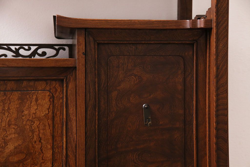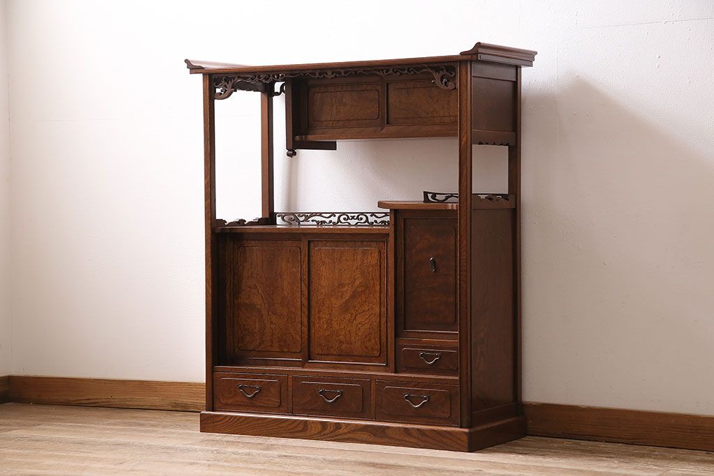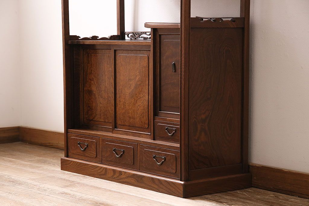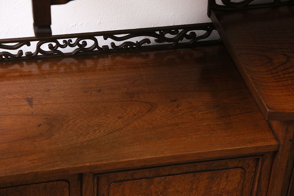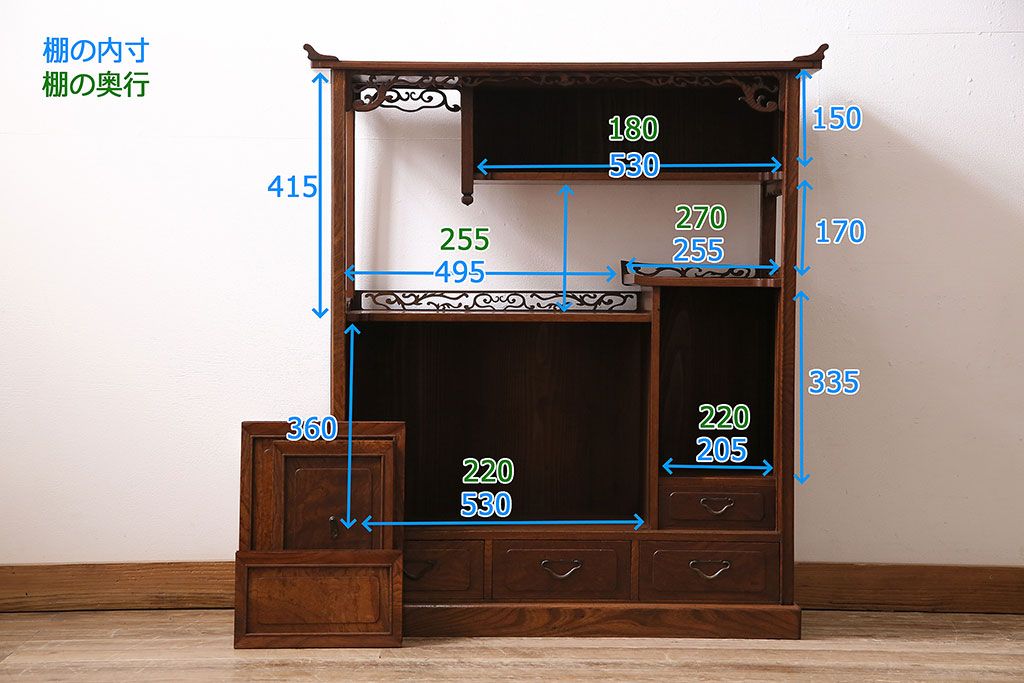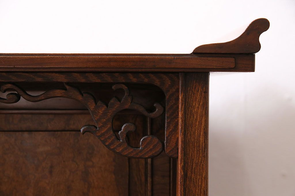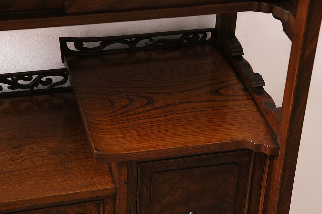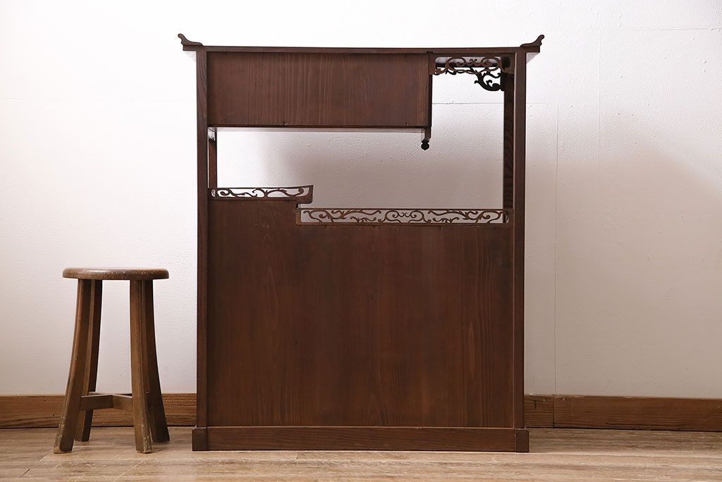 指物造りの飾り棚をリペア&カスタム!透かし彫りの再現製作。新材に現状に近しい色味に着色し仕上げ。(茶箪笥、茶棚、収納棚)