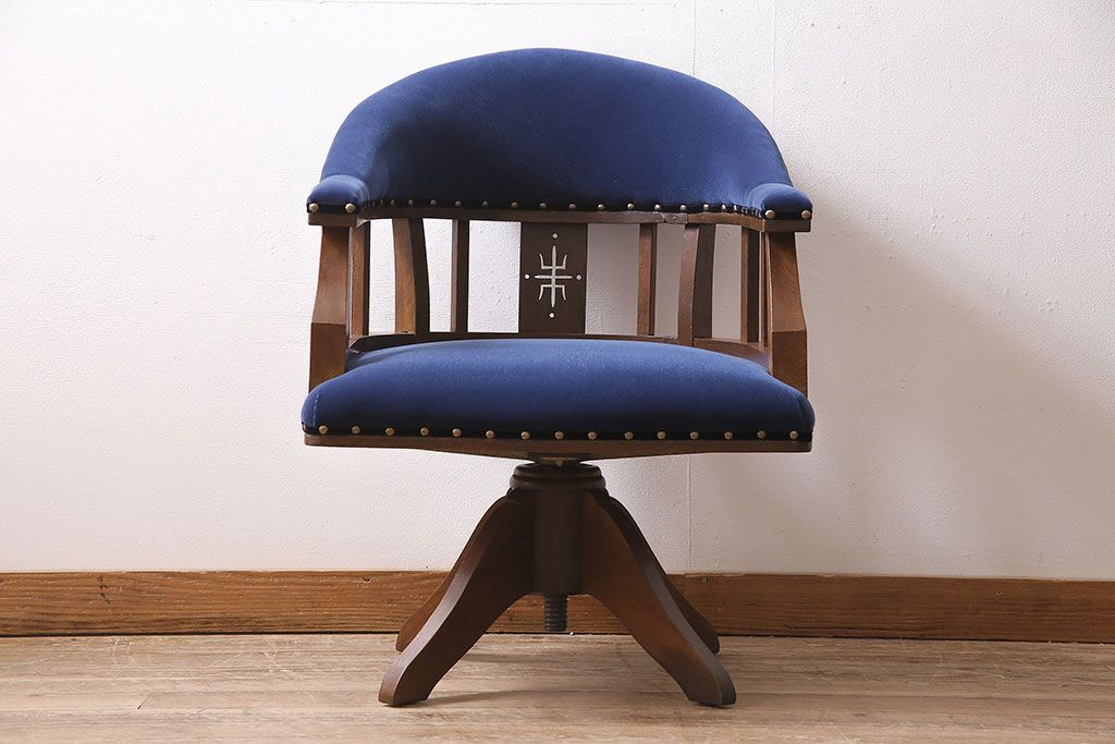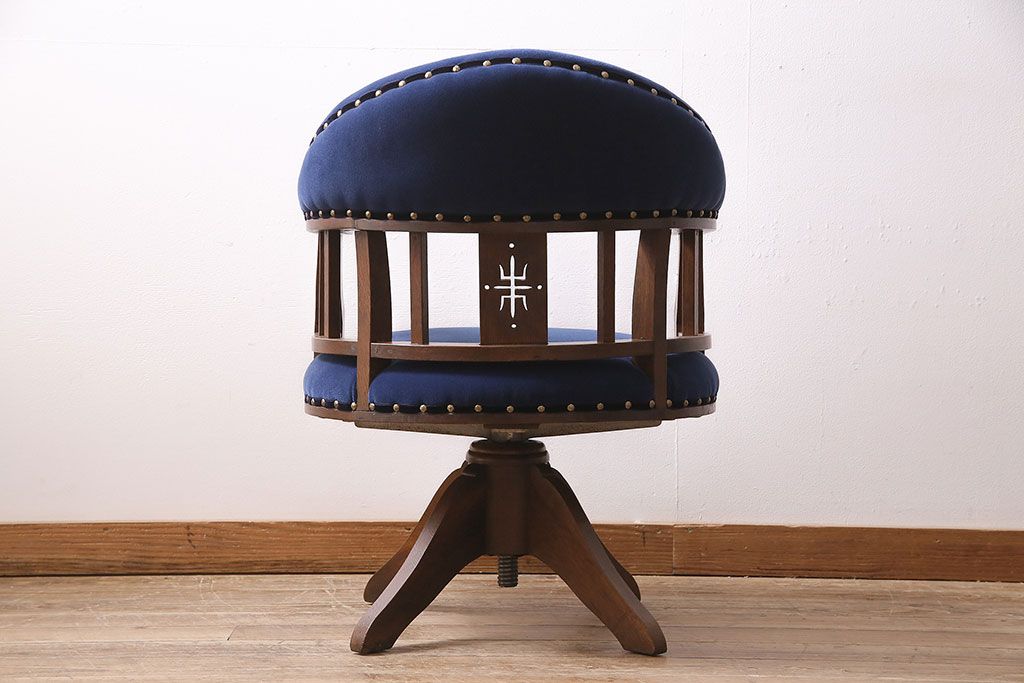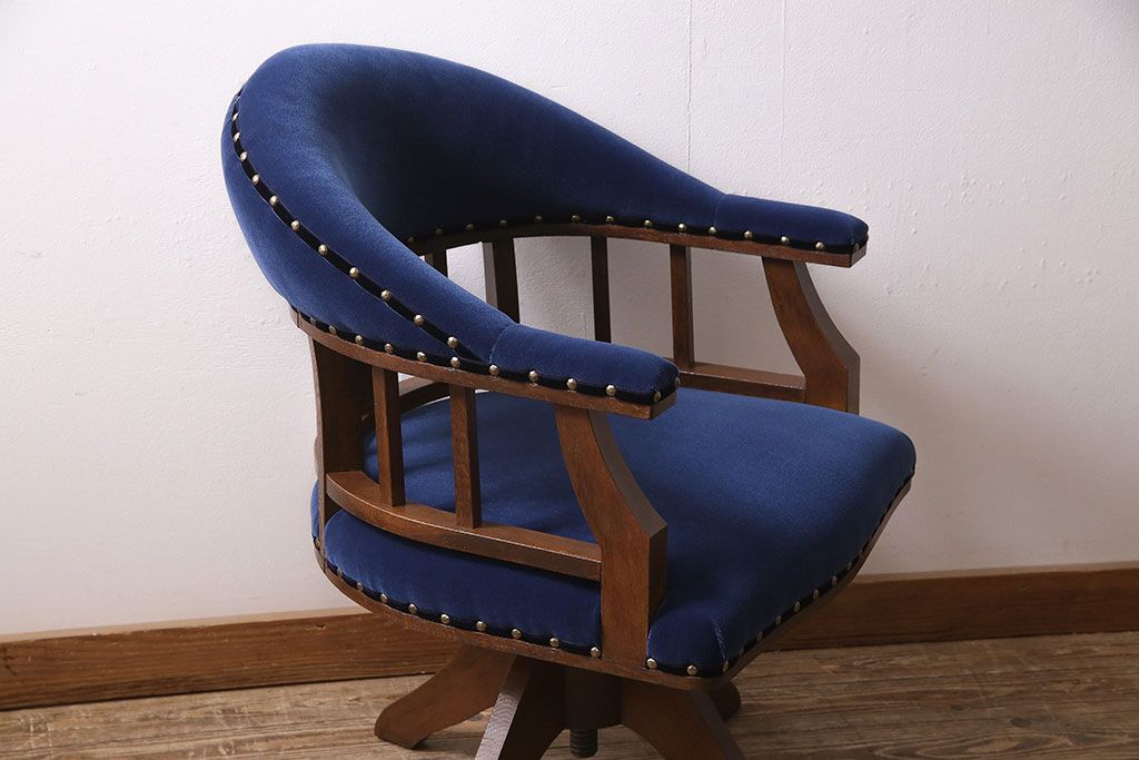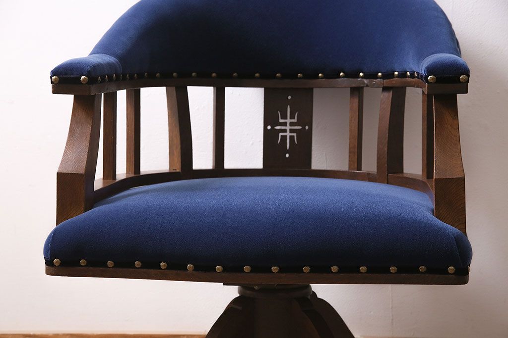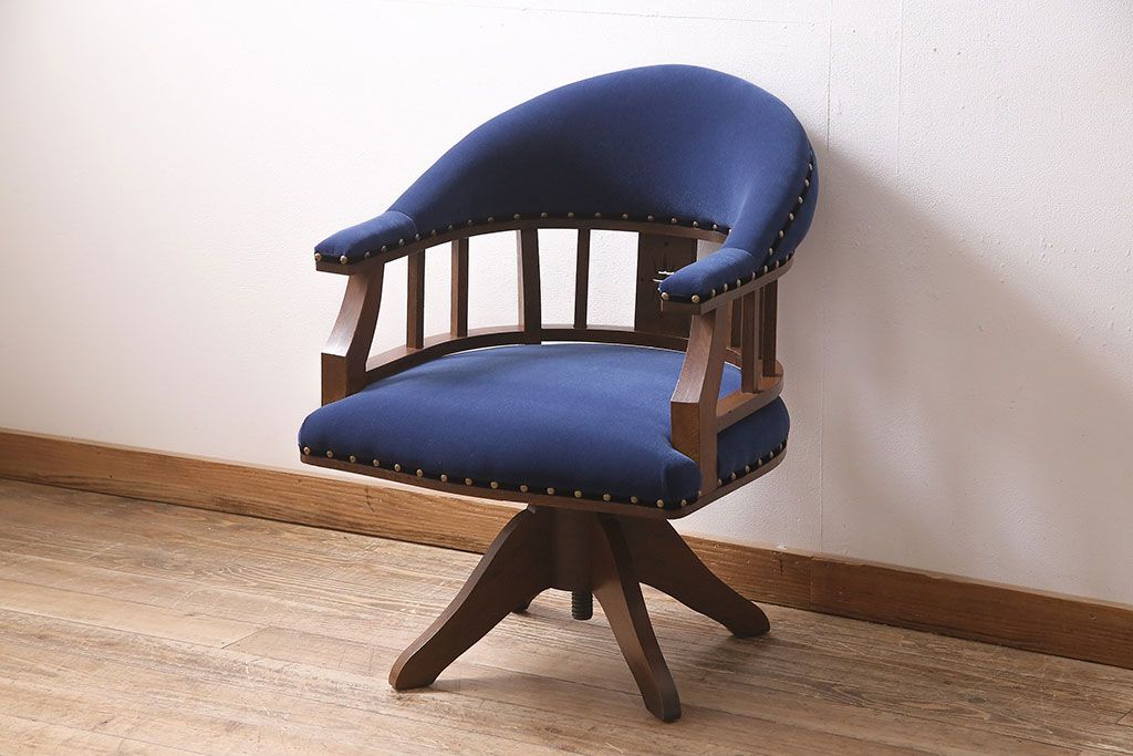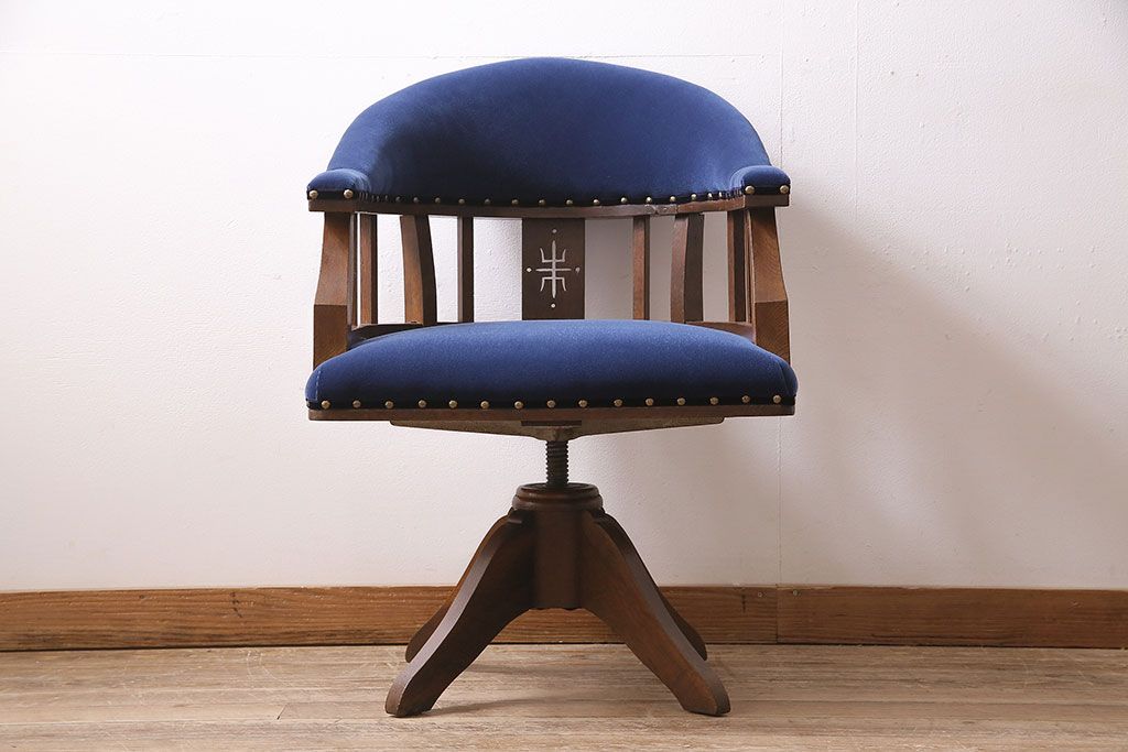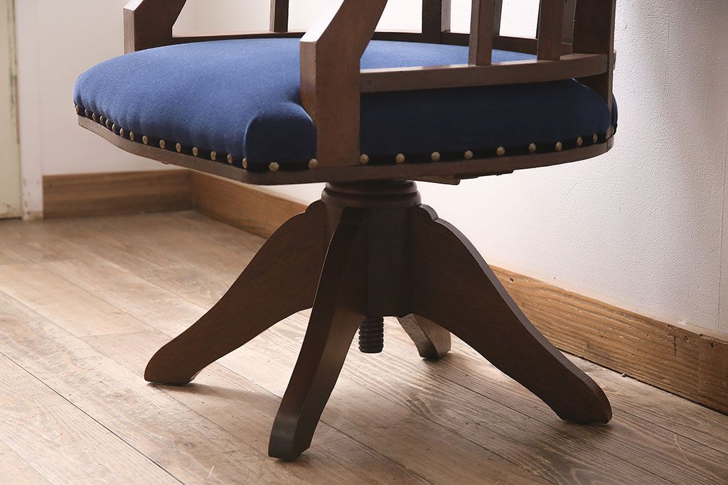 椅子・ベンチ> 回転椅子 > アンティーク家具 昭和初期 ナラ材 大正ロマン 大人の雰囲気漂う回転チェア(ドクターチェア、アームチェア、回転椅子)(R-046918)