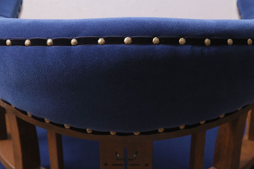 座面生地とクッション(座面内スポンジ)は当店にて張り替えておりますので、しっかりとしております。