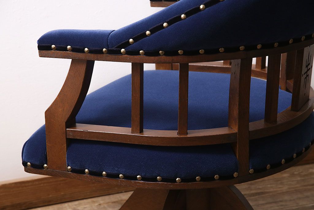 椅子・ベンチ> アームチェア > アンティーク家具 昭和初期 ナラ材 大正ロマン 大人の雰囲気漂う回転チェア(ドクターチェア、アームチェア、回転椅子)(R-046918)