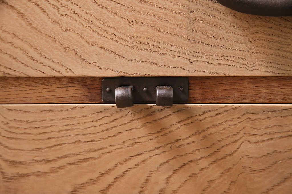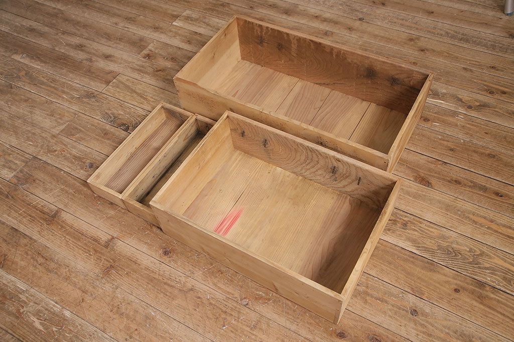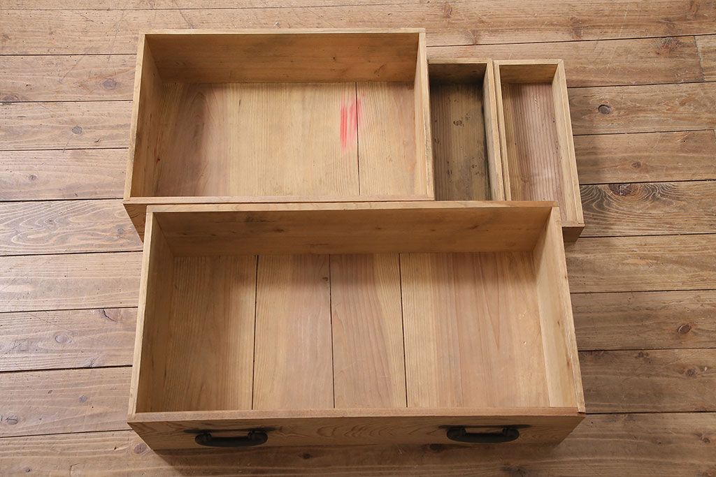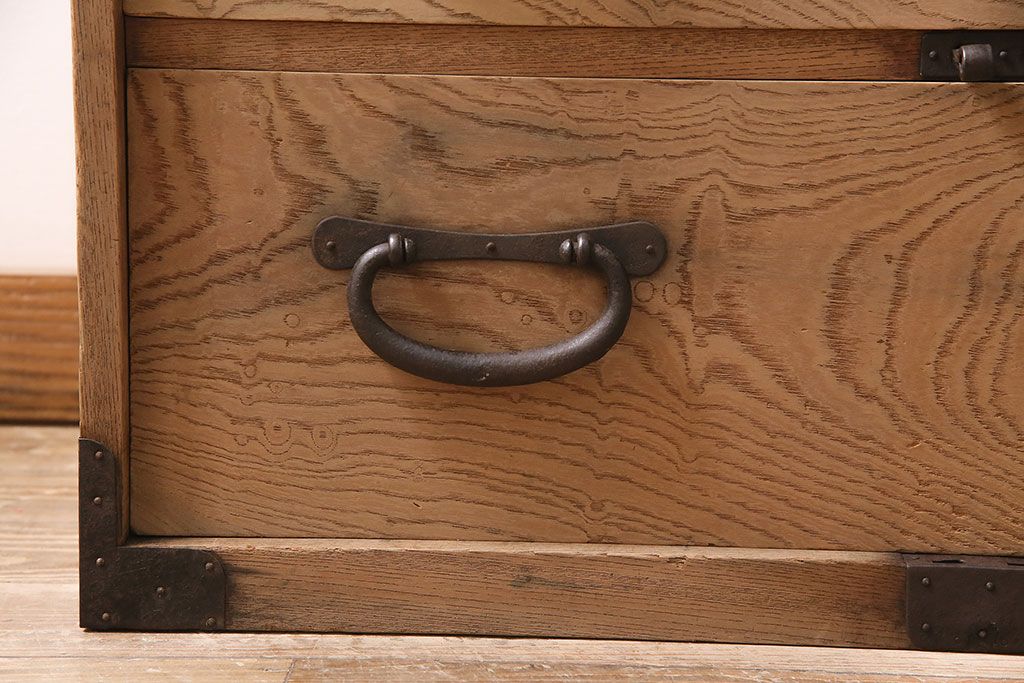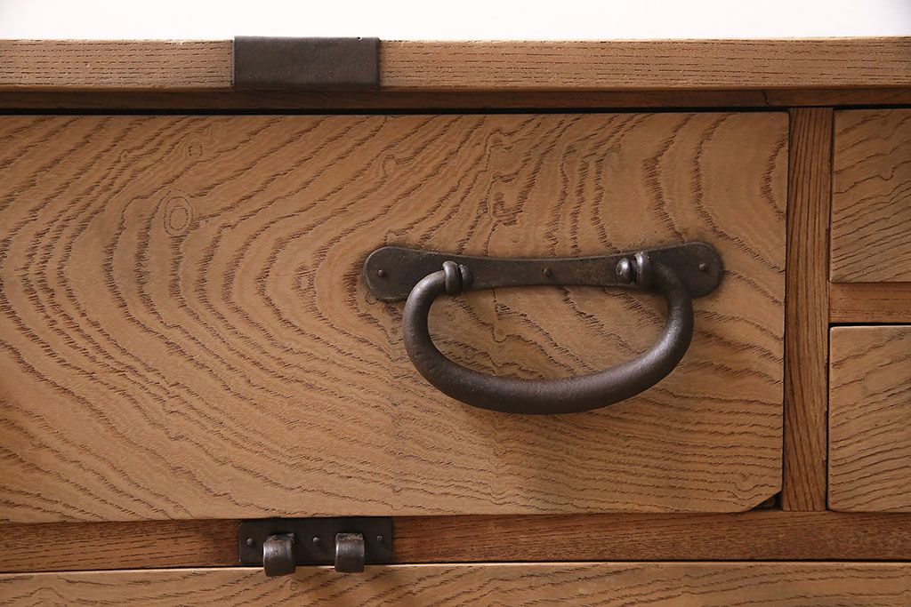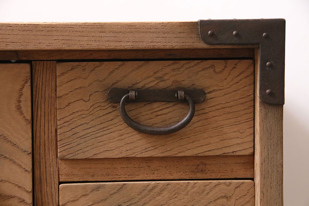 ラフジュ工房> ストリップド(剥離)家具 > アンティーク家具 明治大正期 ストリップド(剥離) 三方ケヤキ材 厚手素材 古い木肌が味わいを感じさせる小タンス(引き出し、テレビ台、リビングボード)(R-046912)