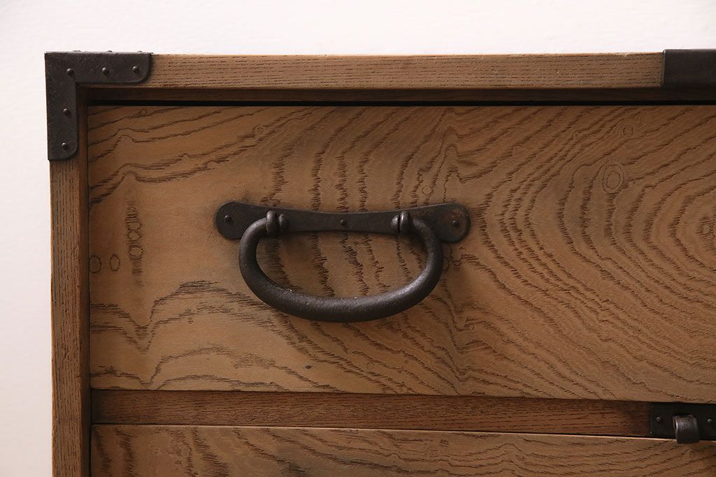 ラフジュ工房> 和箪笥> 小箪笥 > アンティーク家具 明治大正期 ストリップド(剥離) 三方ケヤキ材 厚手素材 古い木肌が味わいを感じさせる小タンス(引き出し、テレビ台、リビングボード)(R-046912)