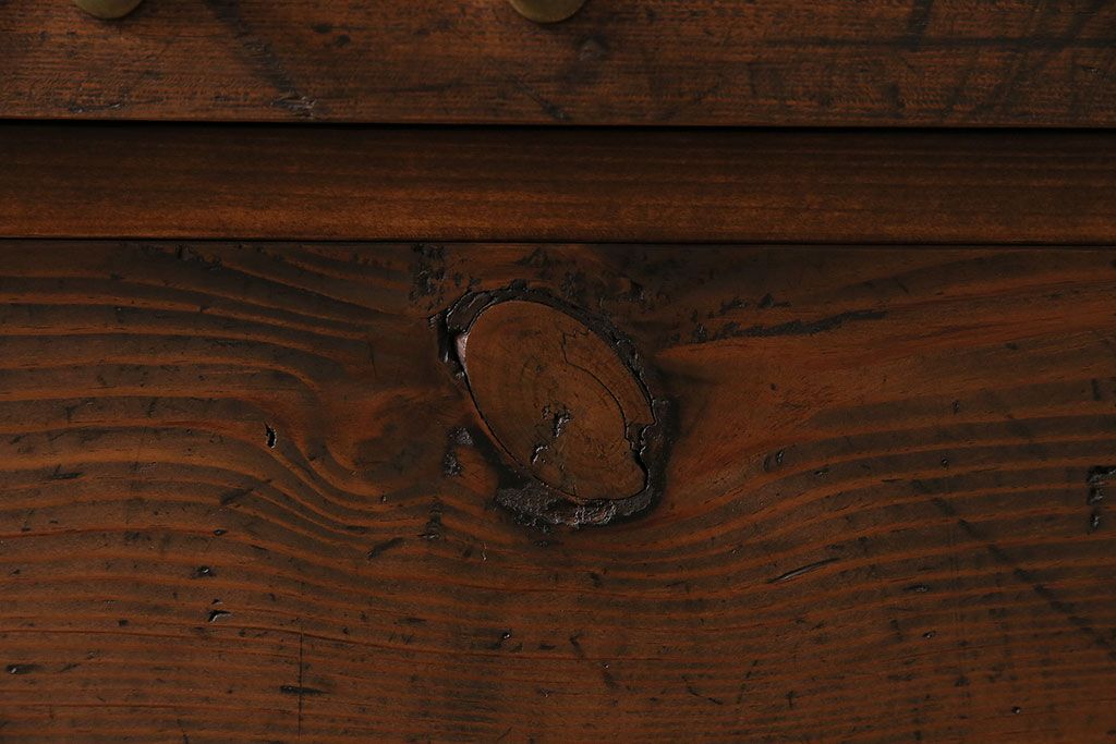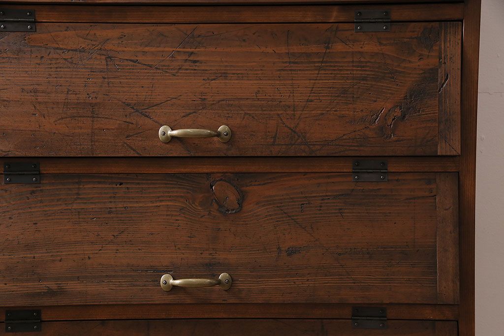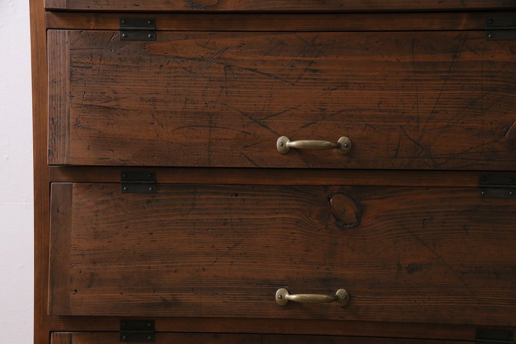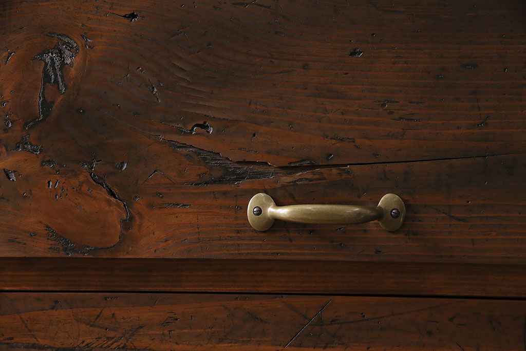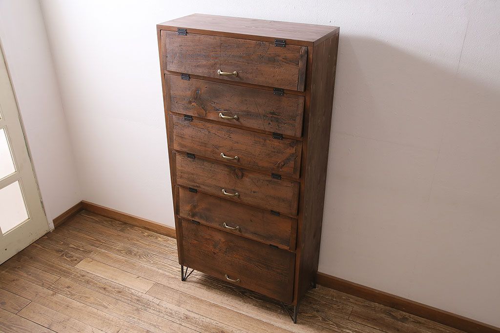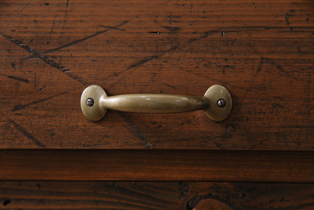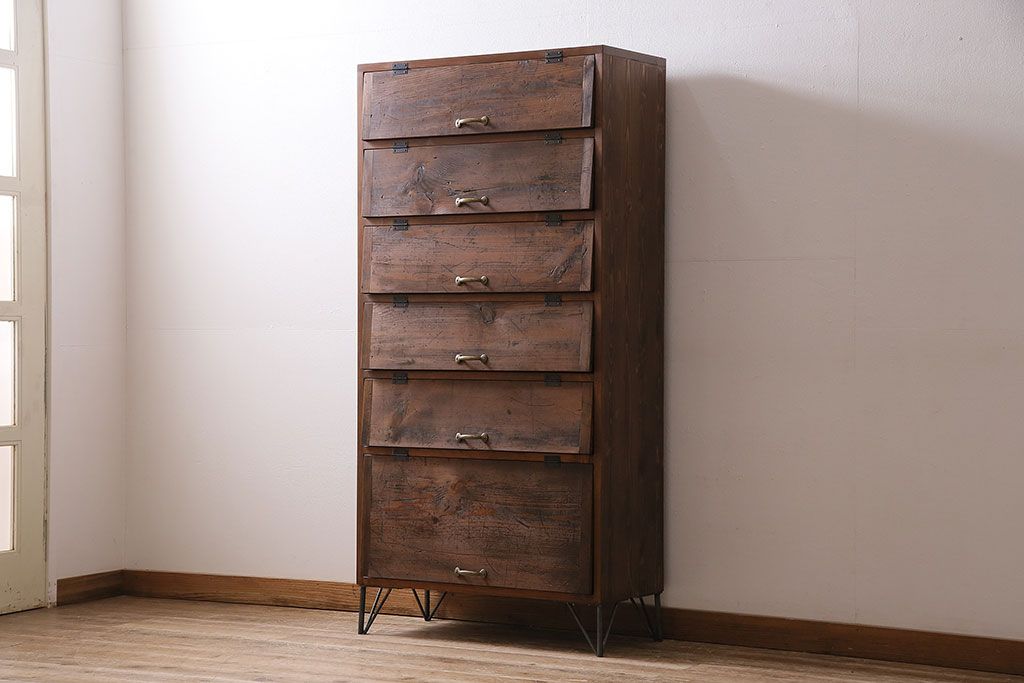 フルオーダー家具実績 > パタパタ扉の下駄箱を新規製作!本体はヒノキ無垢材、前板は古材を使用。鉄脚と取っ手を取り付け。濃い茶色で着色し仕上げ。(収納棚、戸棚、ロッカー)