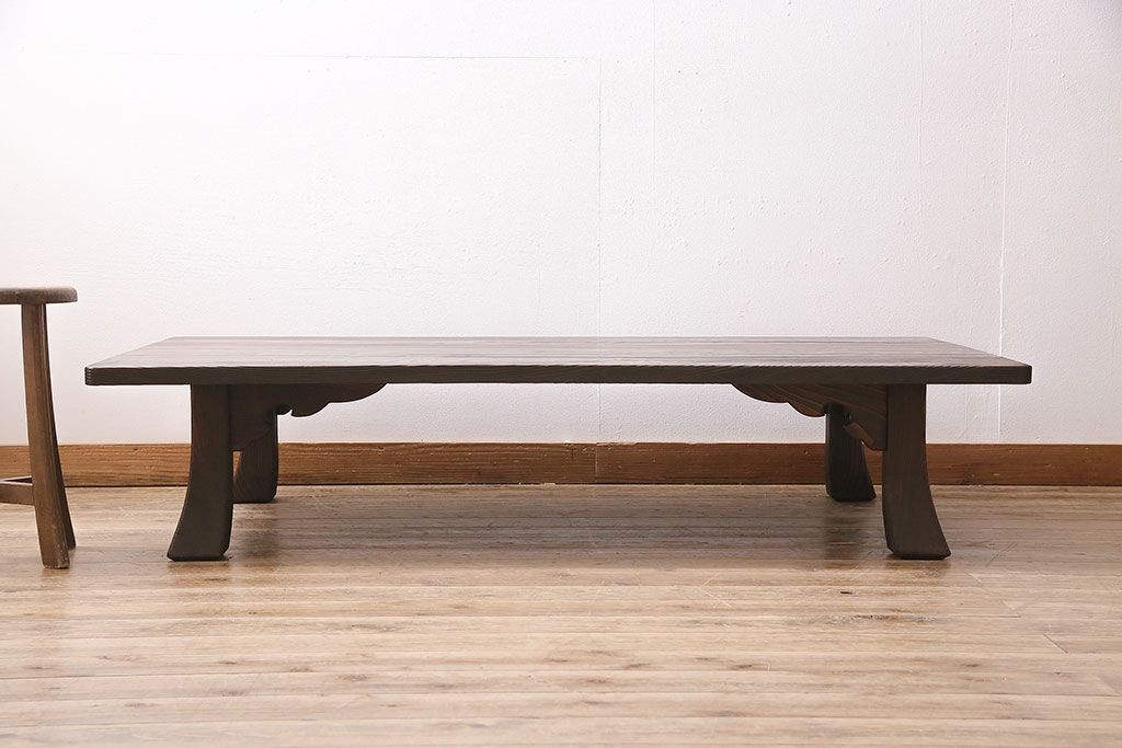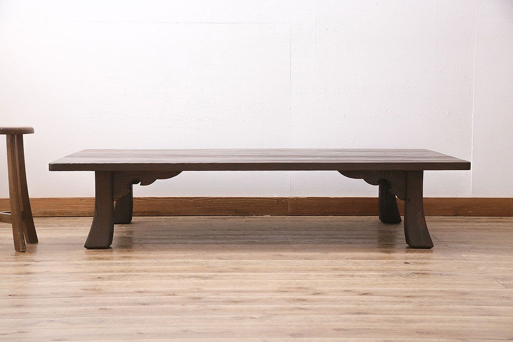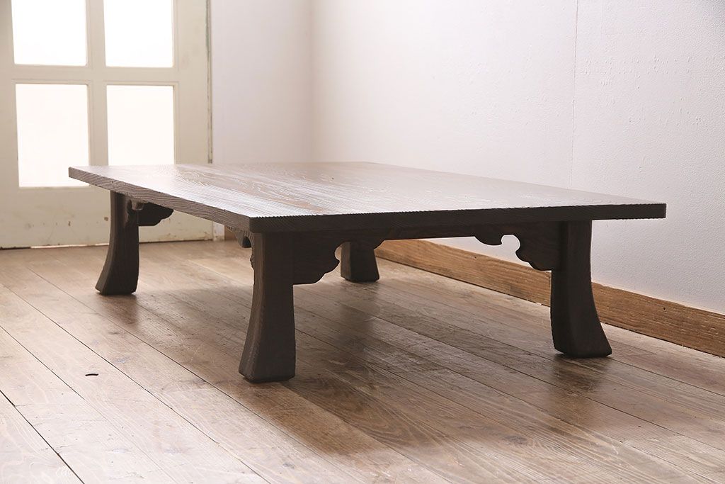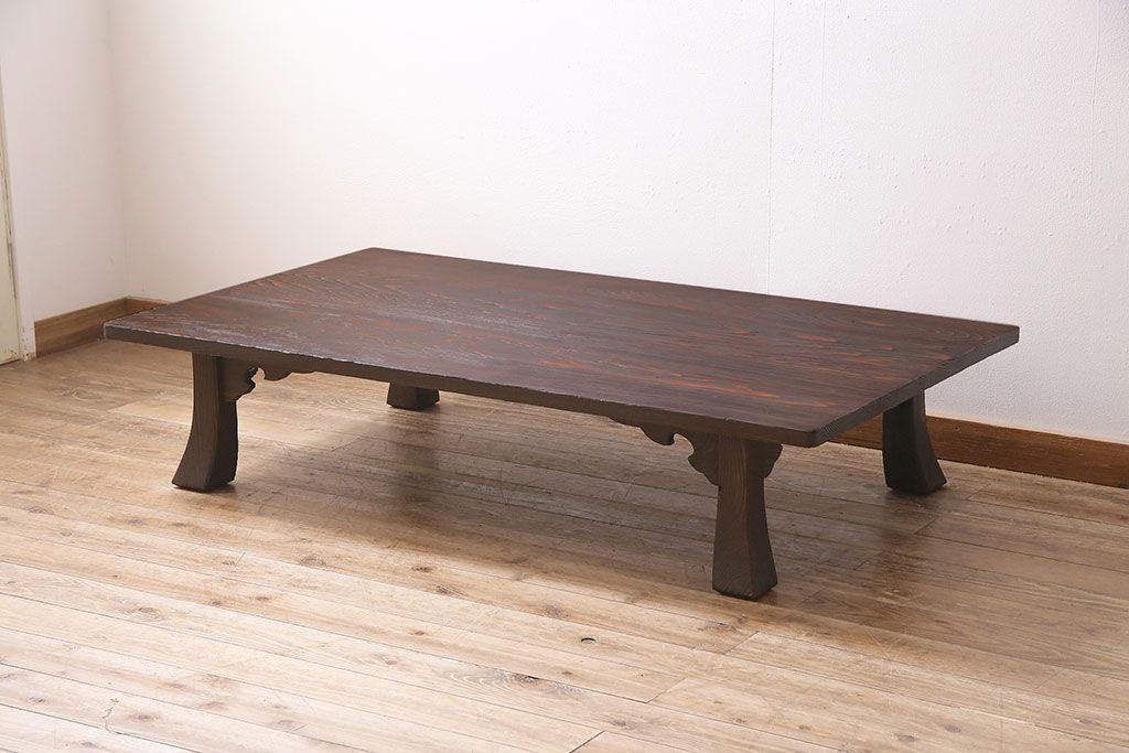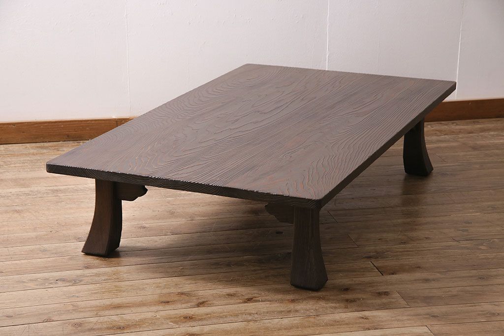 ヴィンテージ家具 昭和後期 民芸家具 高級杉材 木の風合いが楽しめる浮造り仕上げの座卓(ローテーブル、センターテーブル、ビンテージ)(R-046943)
