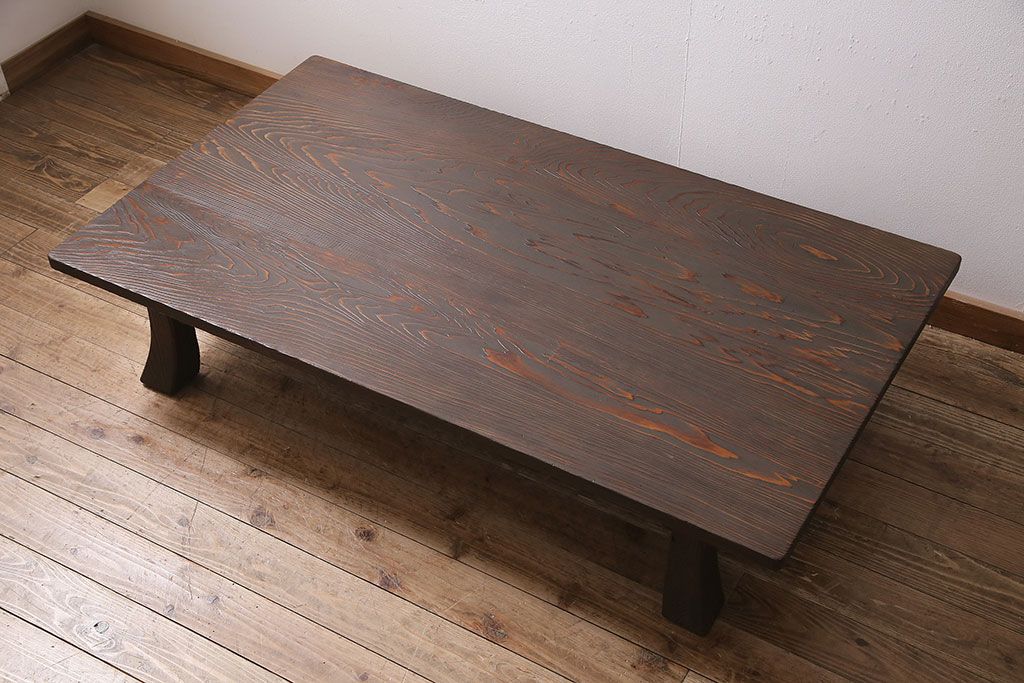 民芸家具 > ヴィンテージ家具 昭和後期 民芸家具 高級杉材 木の風合いが楽しめる浮造り仕上げの座卓(ローテーブル、センターテーブル、ビンテージ)(R-046943)