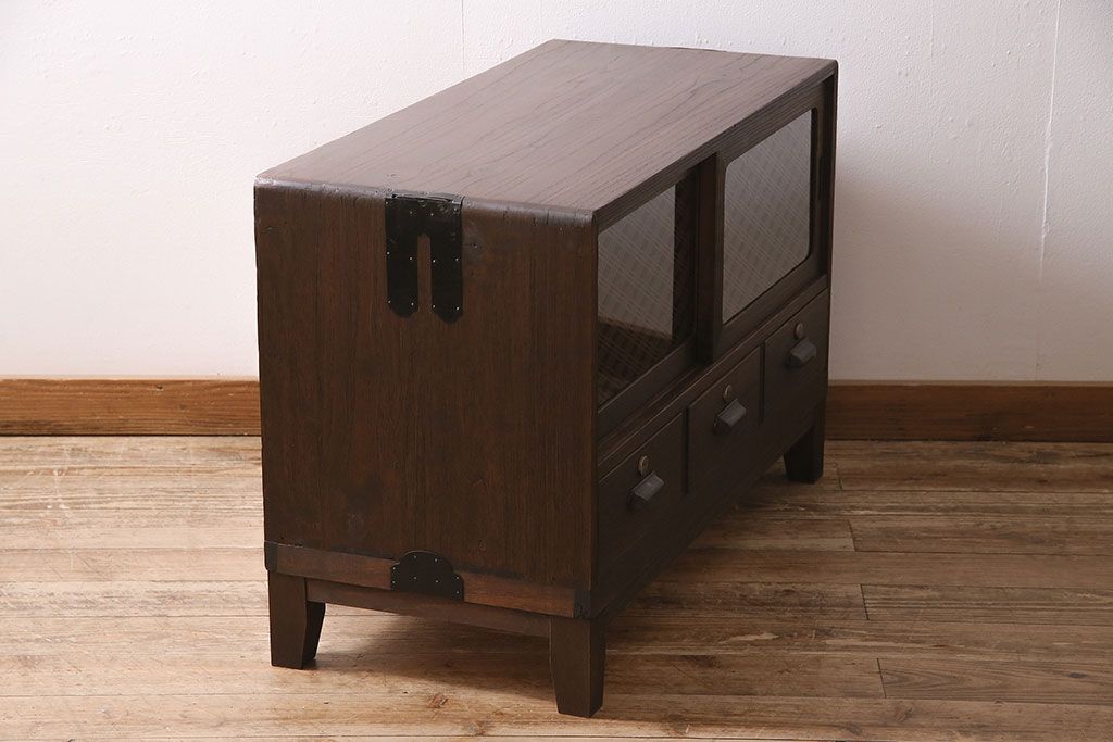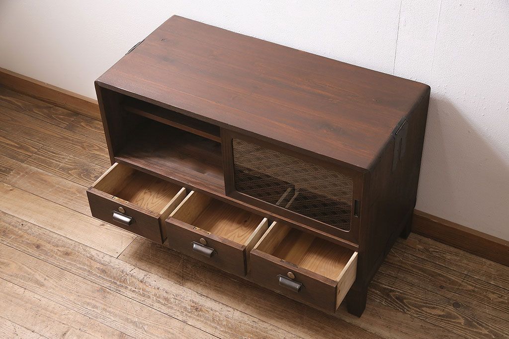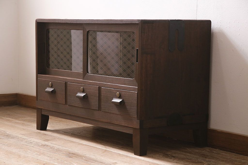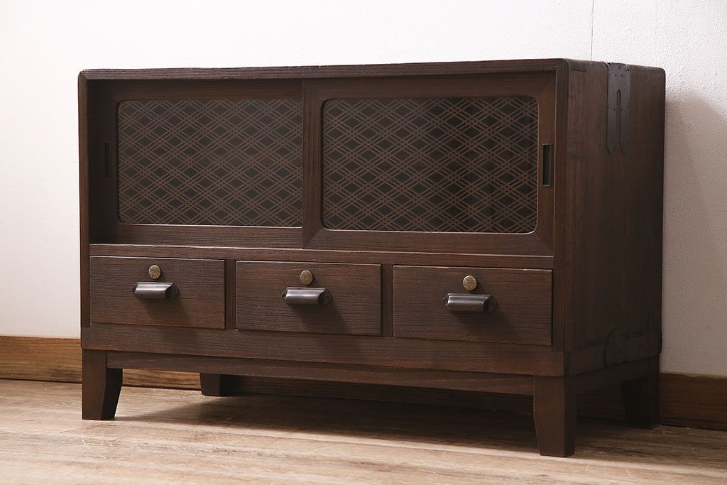 アンティーク家具 昭和中期 桐材 リメイク 脚付き 和の趣を演出する組子入りの箪笥ローボード(収納棚、テレビ台、テレビボード)(R-046941)