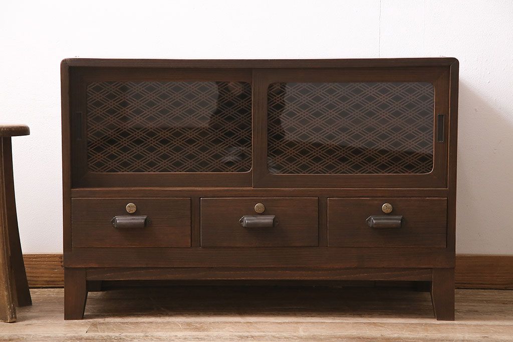 キャビネット・戸棚> テレビ台・ローボード > アンティーク家具 昭和中期 桐材 リメイク 脚付き 和の趣を演出する組子入りの箪笥ローボード(収納棚、テレビ台、テレビボード)(R-046941)