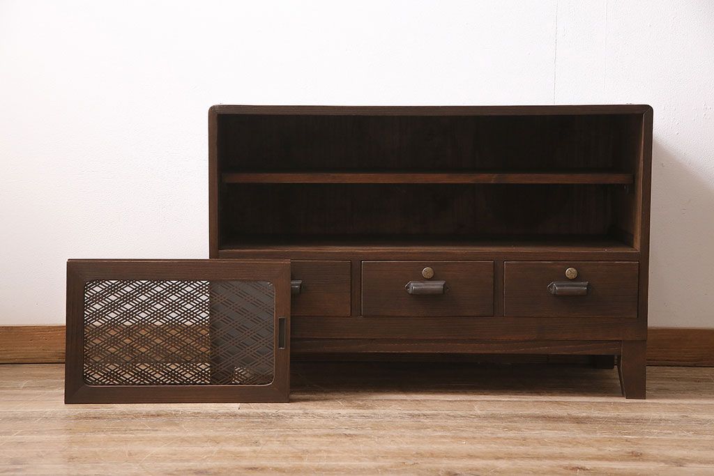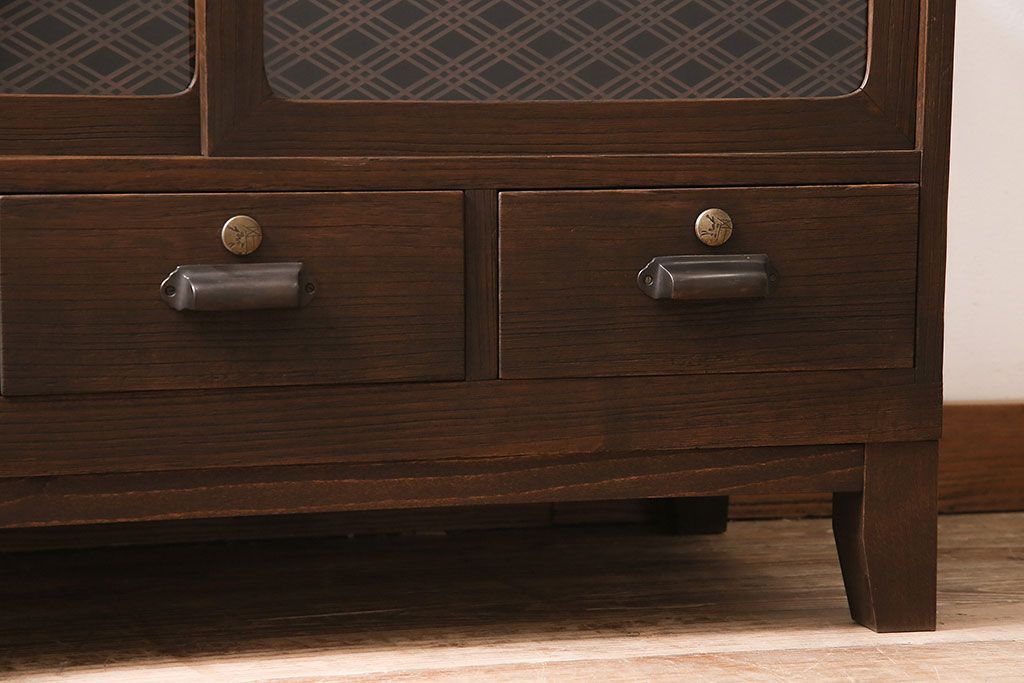 アンティーク家具 昭和中期 桐材 リメイク 脚付き 和の趣を演出する組子入りの箪笥ローボード(収納棚、テレビ台、テレビボード)(R-046941)です。