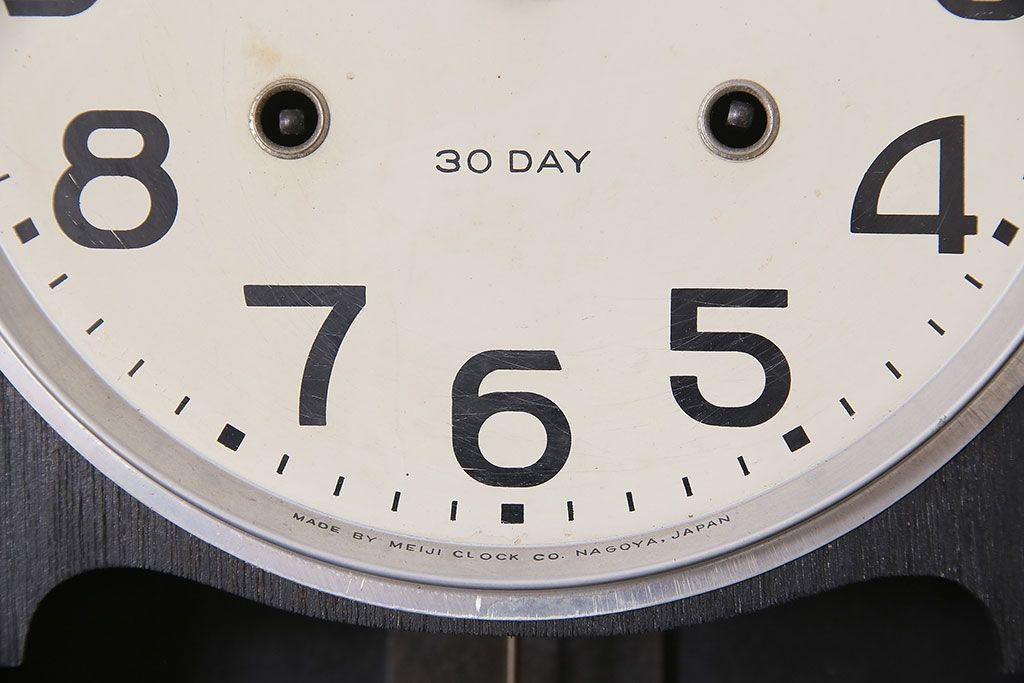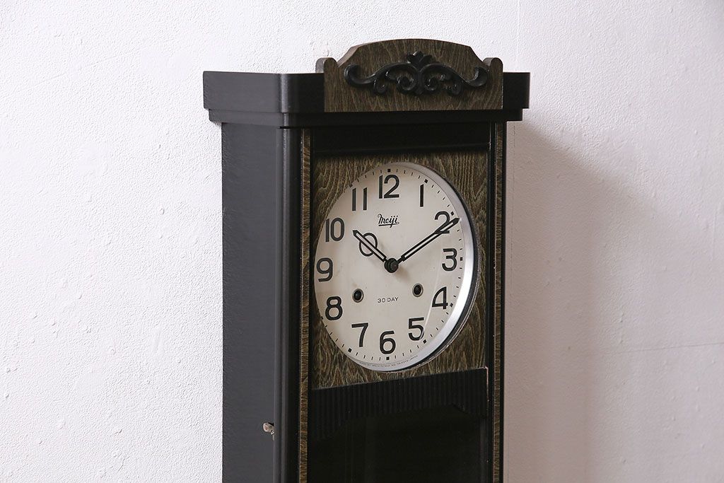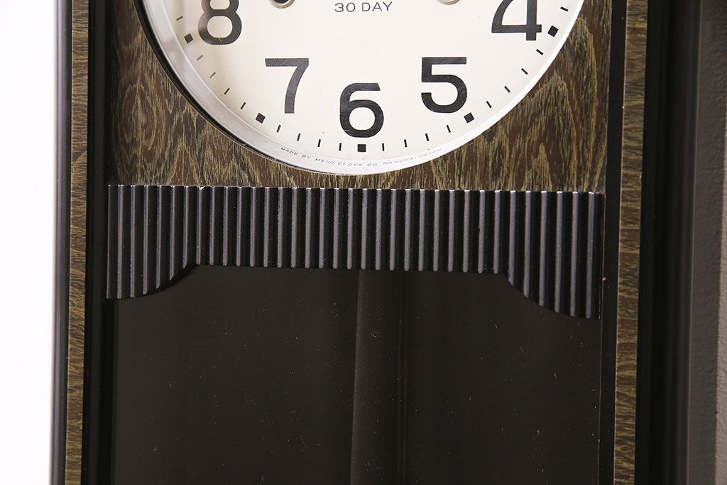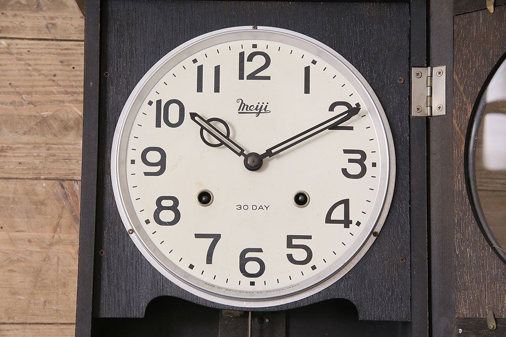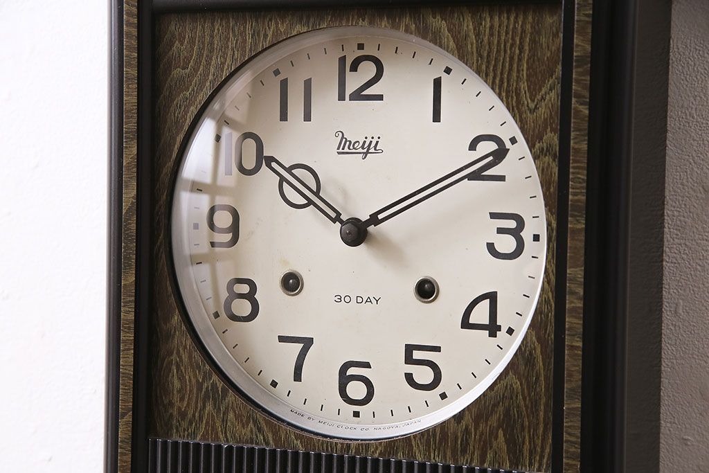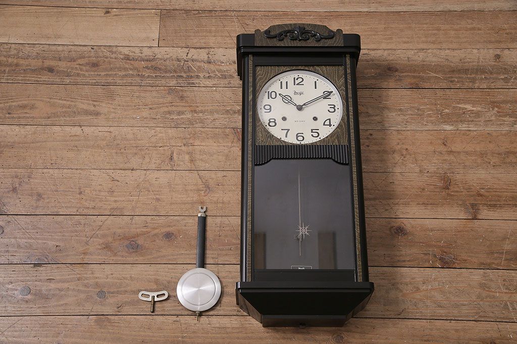 時計> 掛け時計 > アンティーク時計 昭和中期 Meiji(明治時計社) ゼンマイ式 30DAY 懐かしい雰囲気が魅力の掛け時計(柱時計、振り子時計)(R-046917)