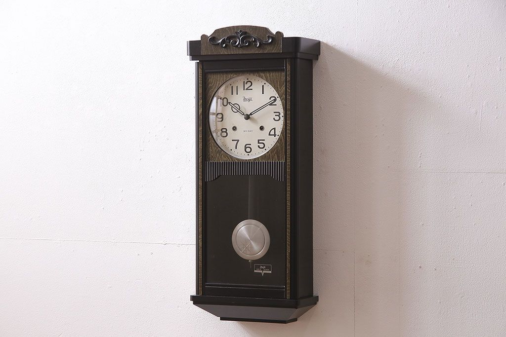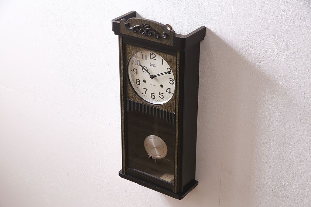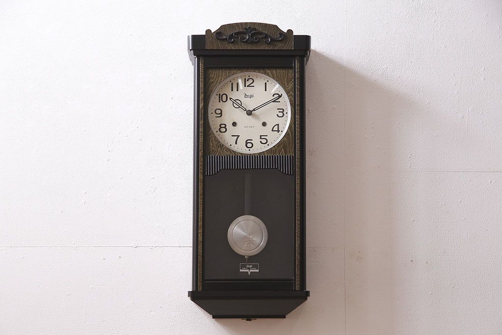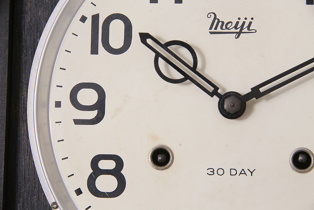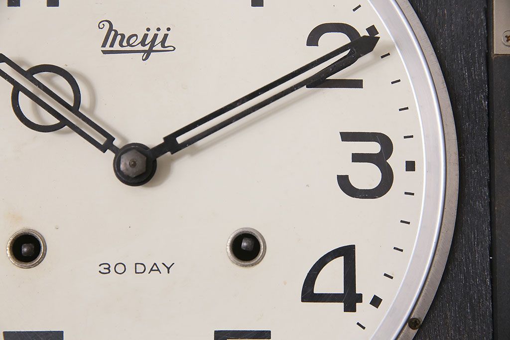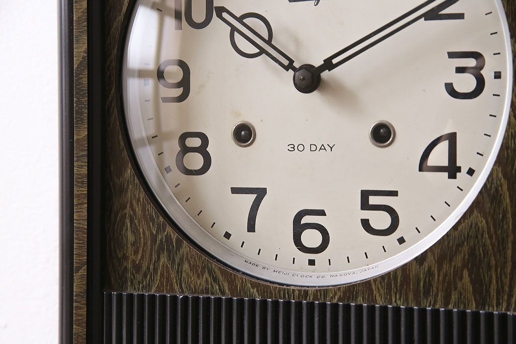 時計> 掛け時計 > アンティーク時計 昭和中期 Meiji(明治時計社) ゼンマイ式 30DAY 懐かしい雰囲気が魅力の掛け時計(柱時計、振り子時計)(R-046917)
