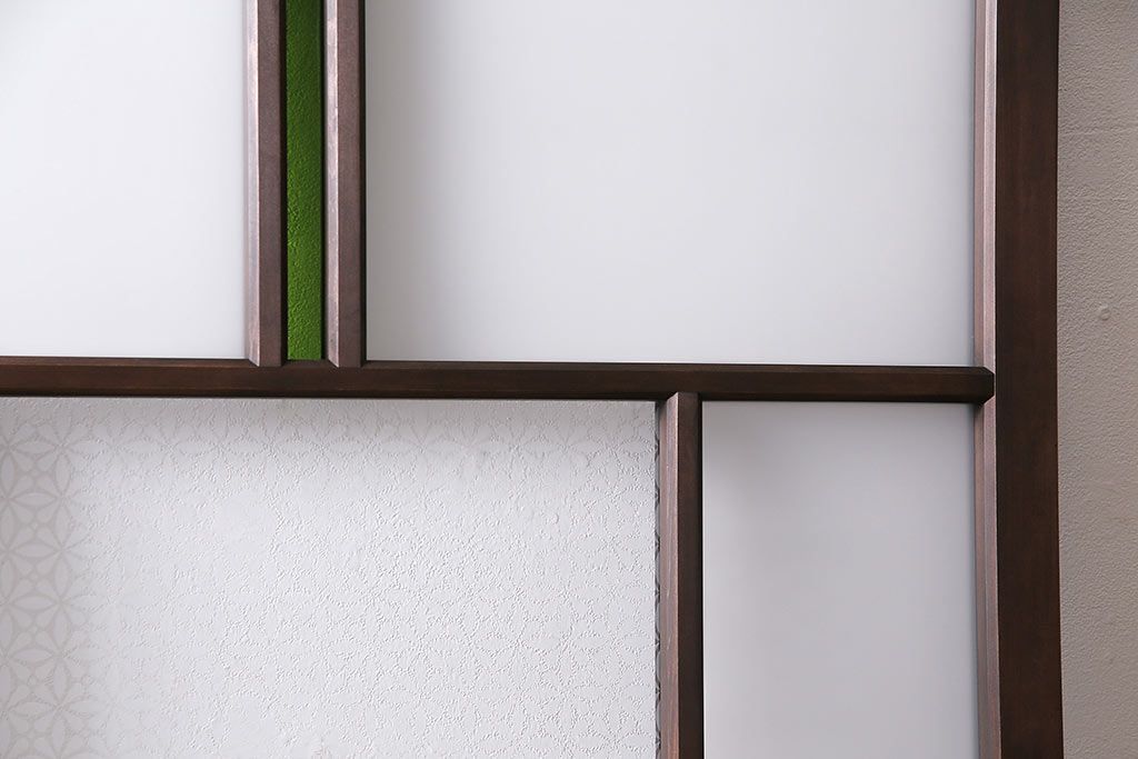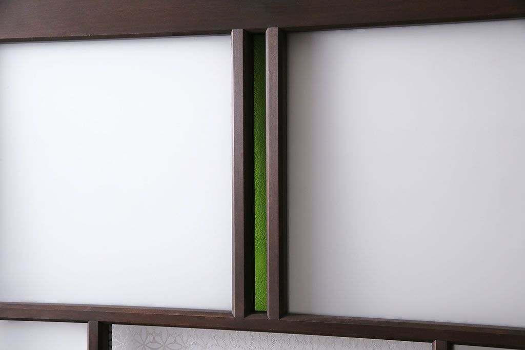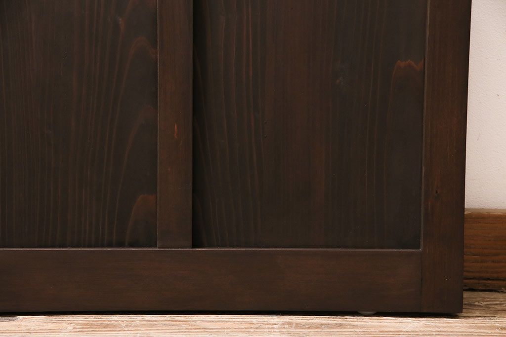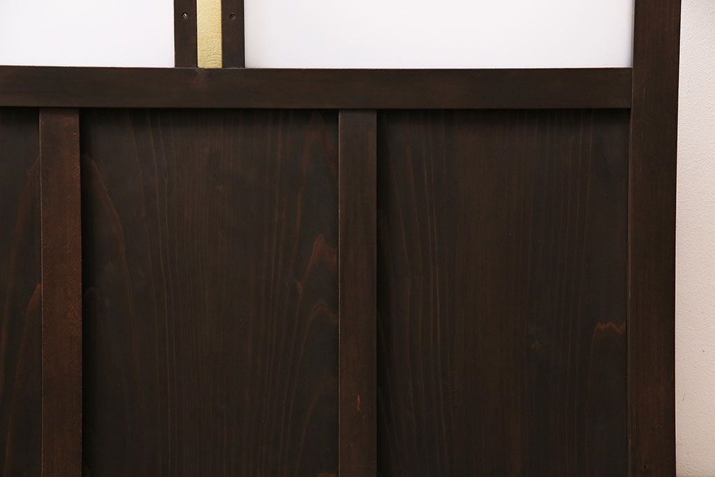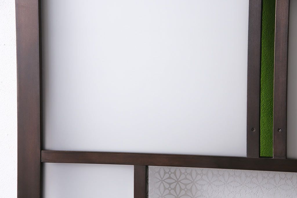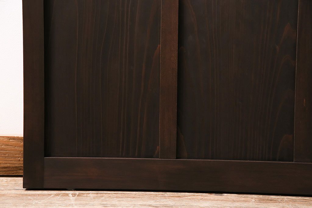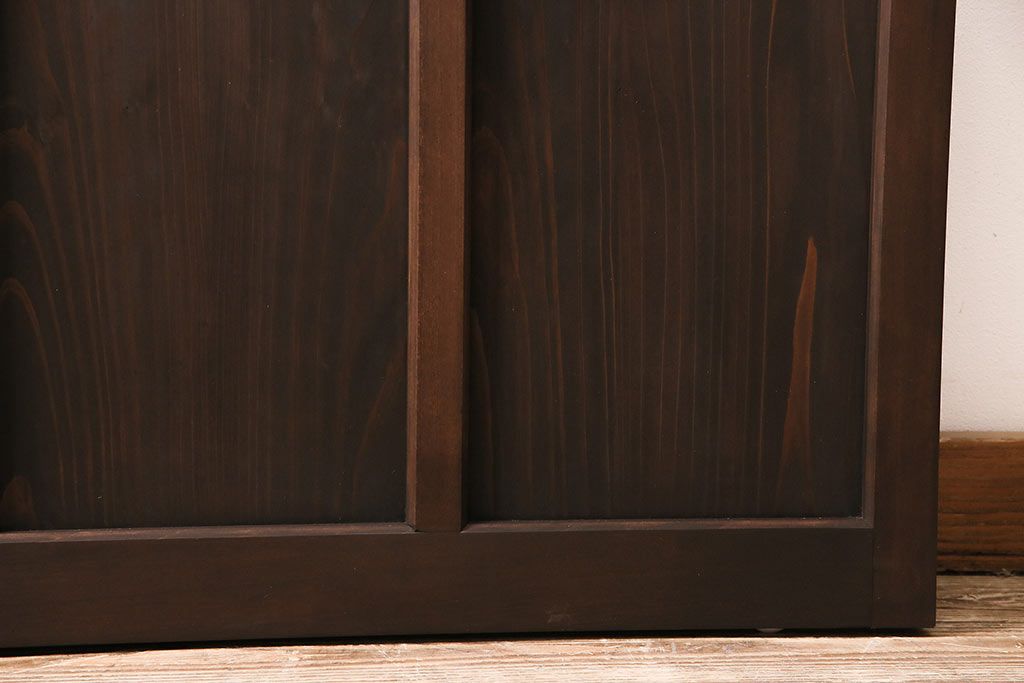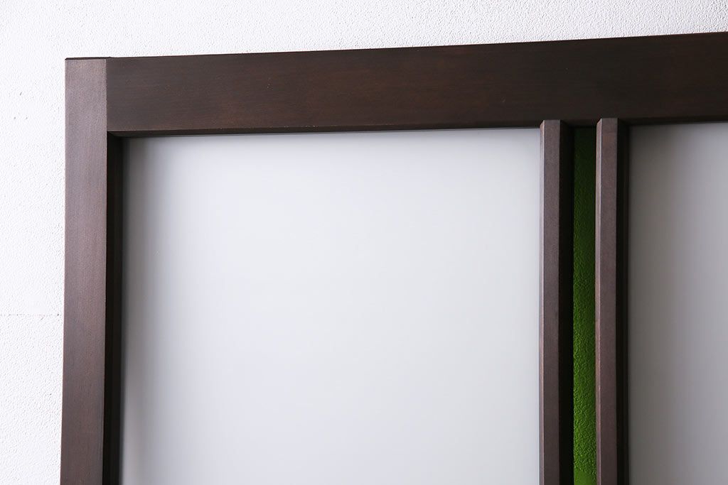大正ロマンなガラス戸を新規製作!色ガラス、花菱模様ガラス、すりガラスを組み入れ。濃い茶色で着色し仕上げ。(引き戸、建具)